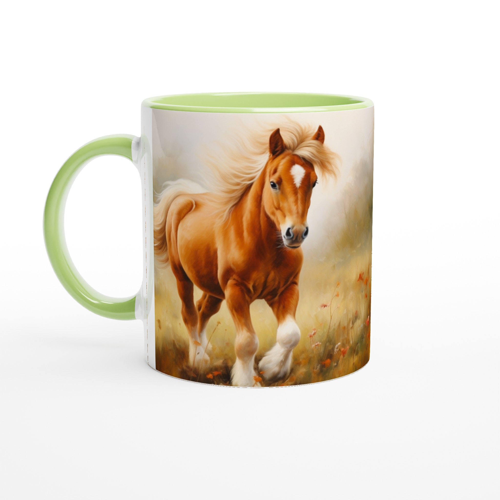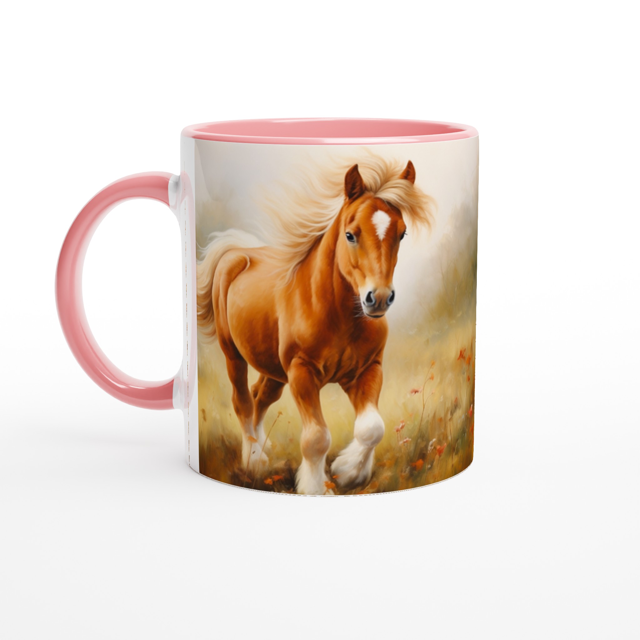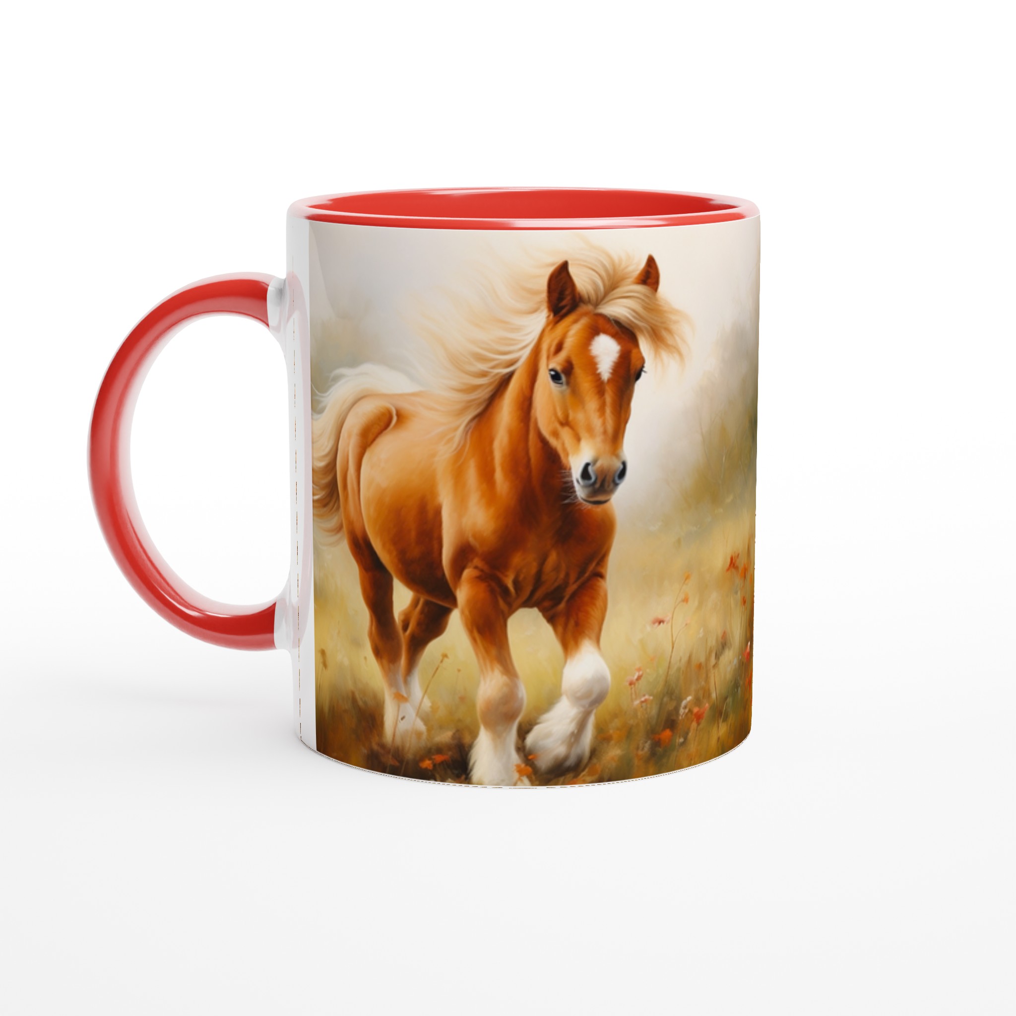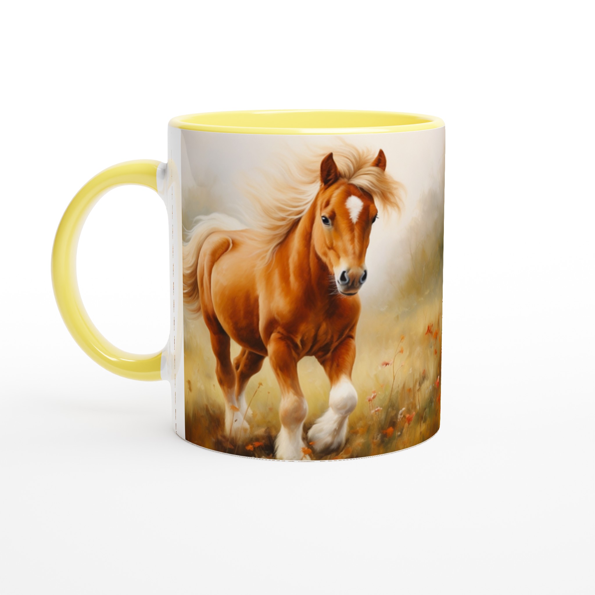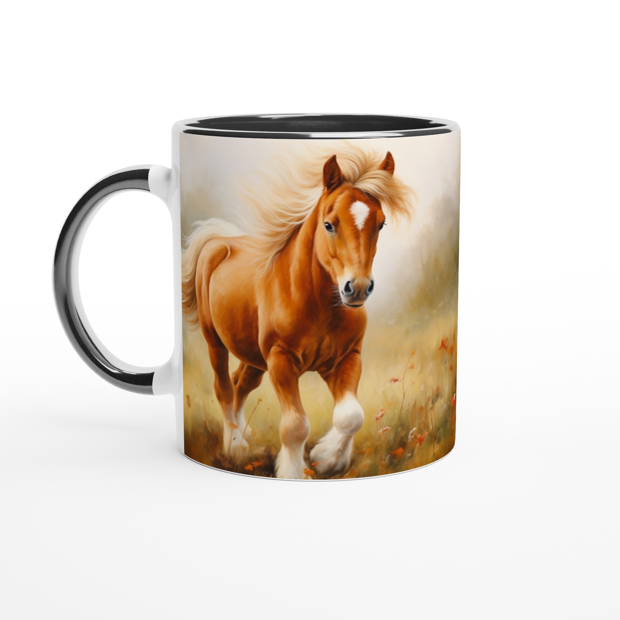 Fånga den fria andan med vår Keramisk mugg – vardagsfavoriten för alla tillfällen, utsmyckad med en majestätisk vildhäst som galopperar genom ett drömskt landskap. Denna mugg förvandlar varje sipp till en flykt till naturen, med sin varma färgpalett och konstnärliga penseldrag som ger en känsla av lugn och styrka.