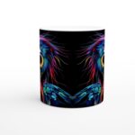 Lyft din fikastund till nya konstnärliga höjder med vår ”Neon Heron” keramikmugg! Denna mugg är inte bara en behållare för din favoritdryck, utan ett verkligt konstverk med två majestätiska hägrar, avbildade i en levande och färgsprakande akvarellstil mot en djup svart bakgrund. De intensivt blå fåglarna med orange och rosa detaljer, omgivna av exploderande färgstänk, skapar en dramatisk och modern känsla som garanterat fångar blickar och sätter färg på din dag.