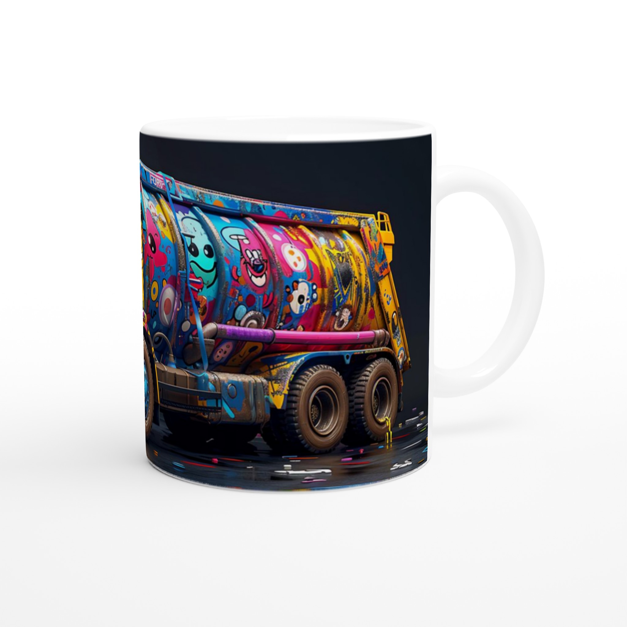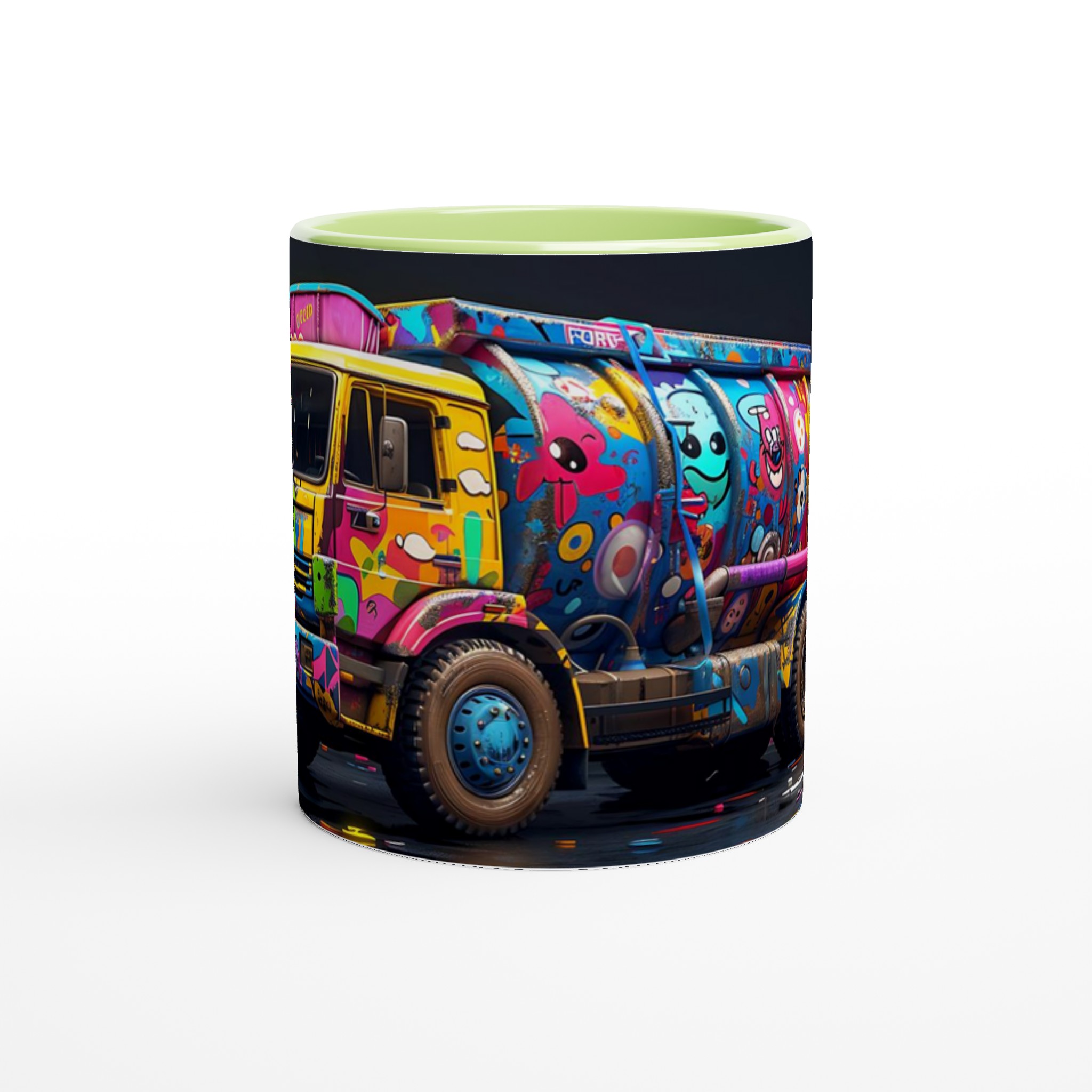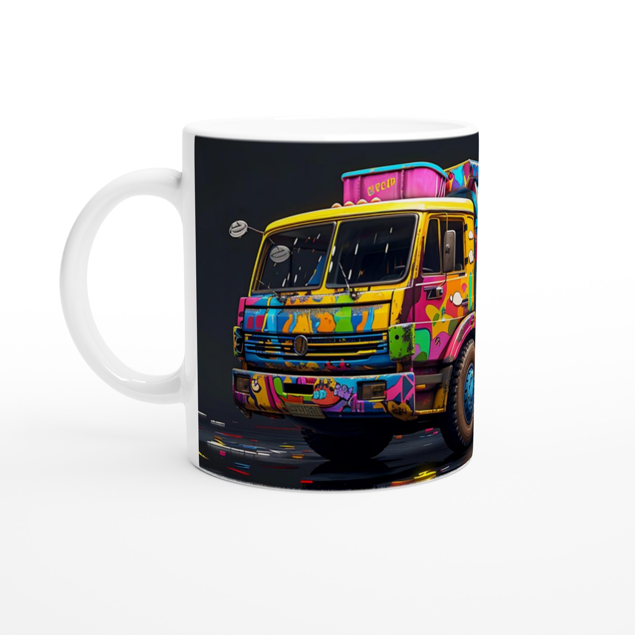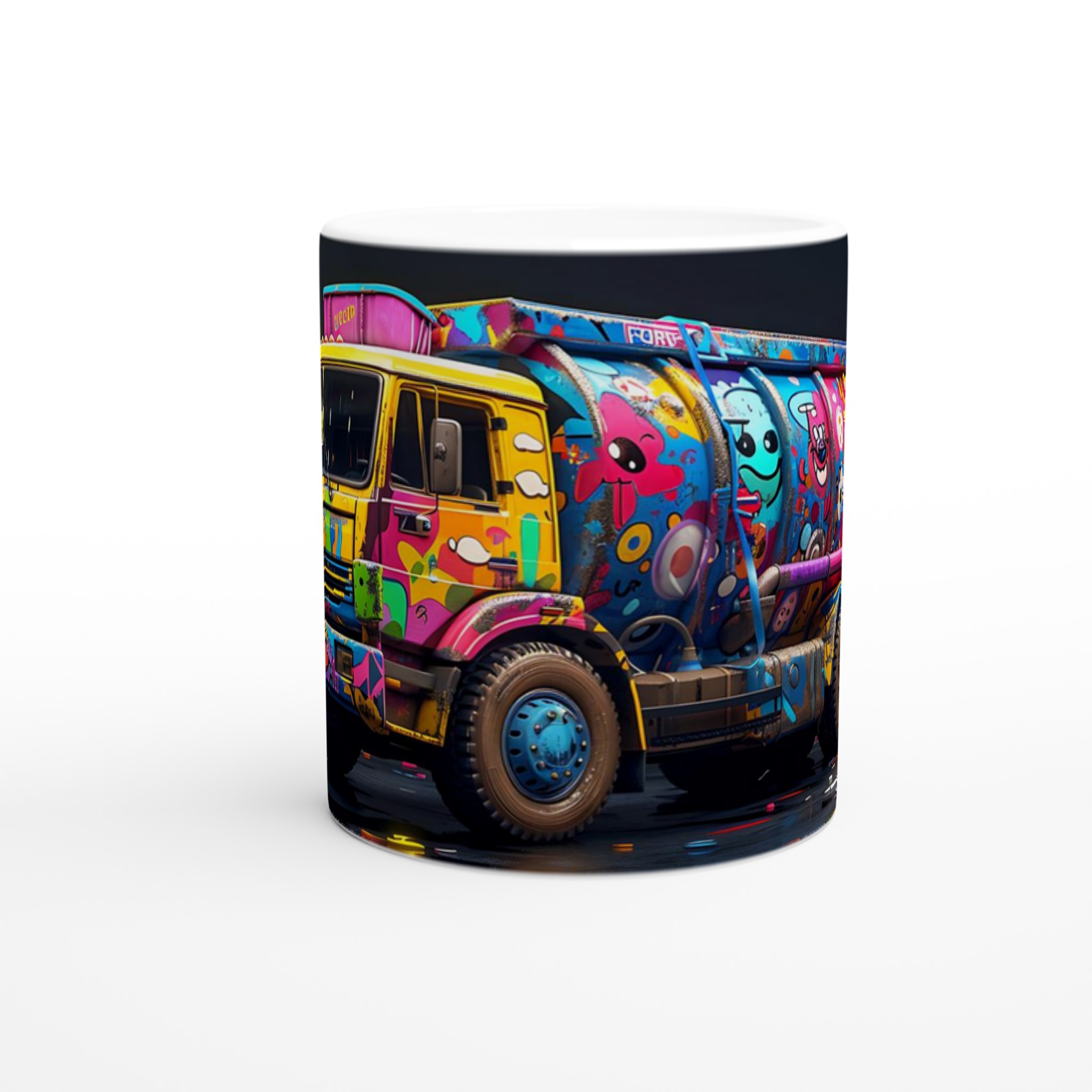 Den blanka vita ytan på denna 11 oz (ca 3,25 dl) mugg är den perfekta duken för det detaljerade och färgstarka ”Pop Art Graffiti Truck”-trycket. Designen framträder med en oslagbar klarhet, vilket gör denna mugg till en sann konversationsstartare och en glädjefylld detalj i ditt hem eller på kontoret. Välj din favorit bland en palett av sju härliga keramiska färger: klassiskt Vit, solig Gul, charmigt Rosa, naturligt Grön, passionerat Röd, elegant Svart eller lugnande Blå för att matcha din personliga stil eller som en perfekt present.