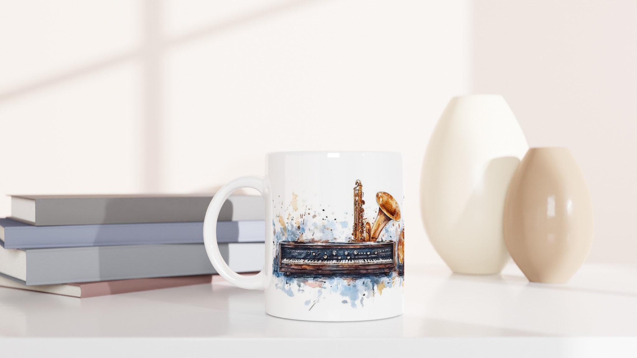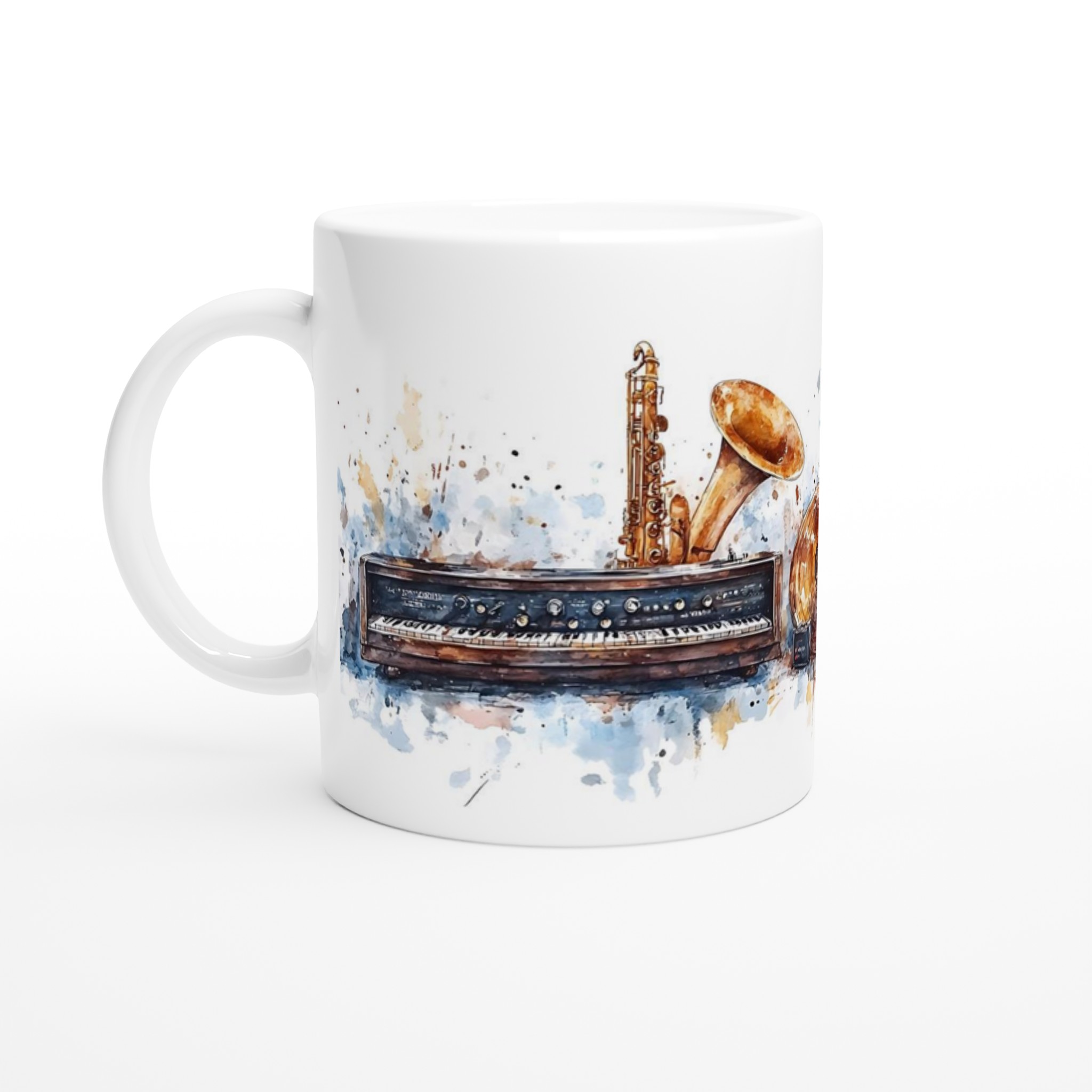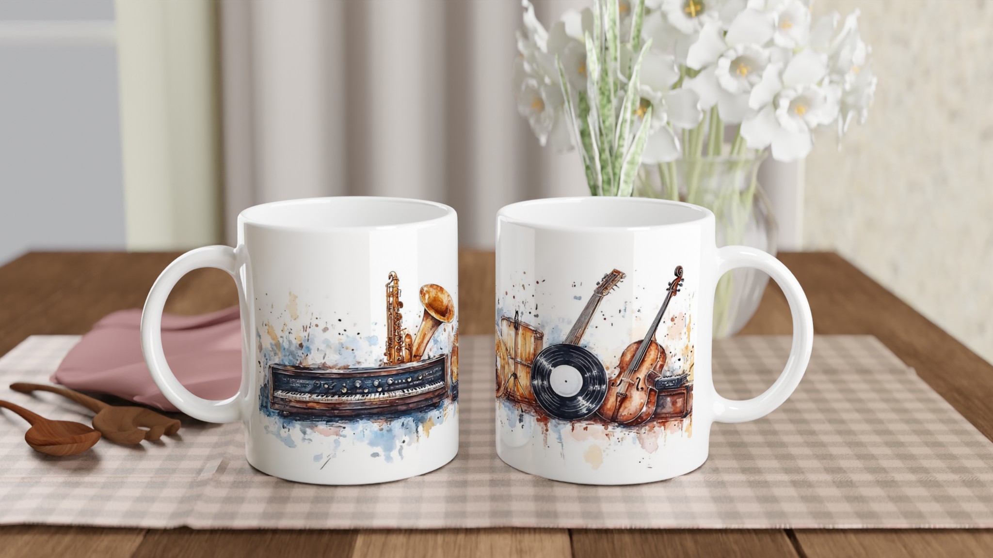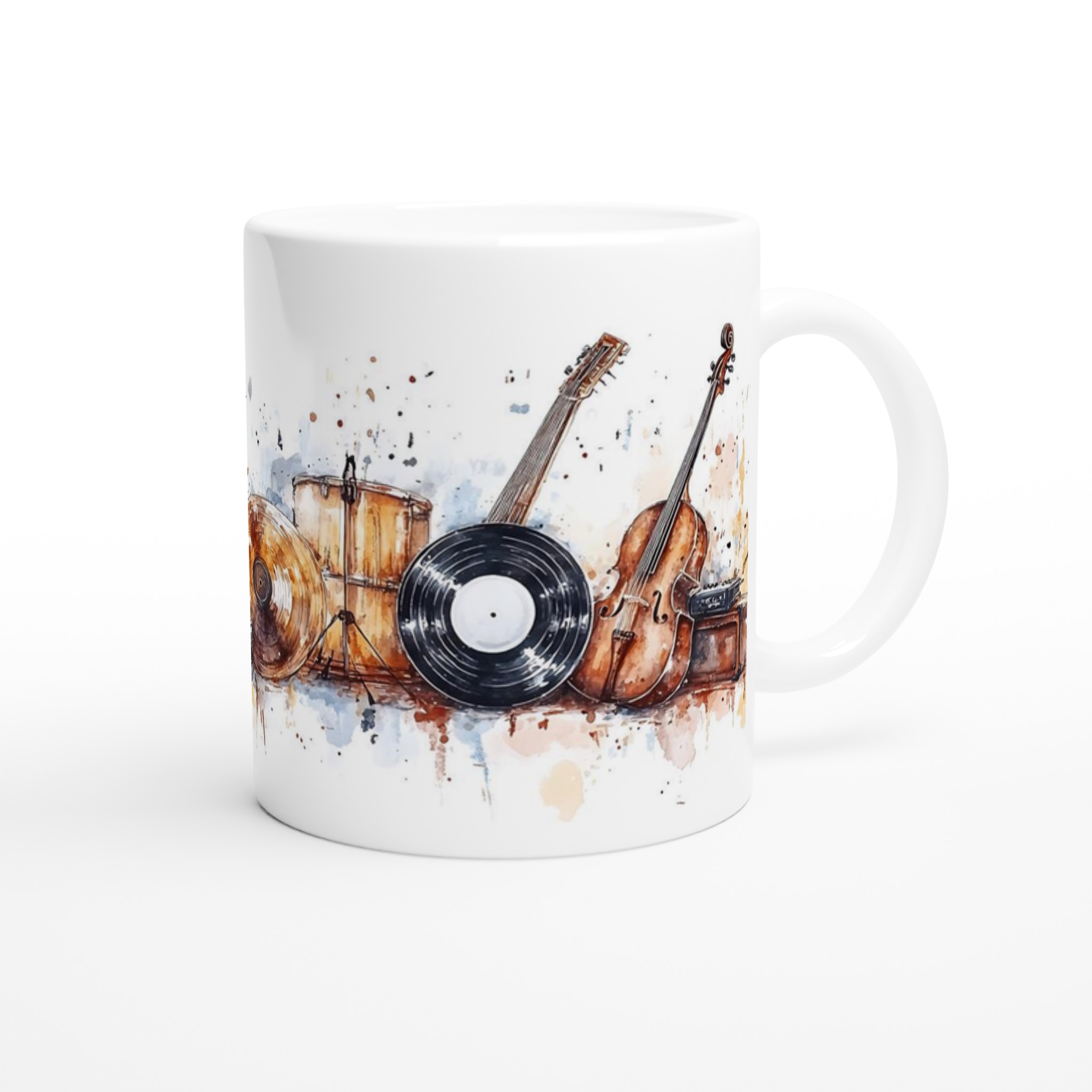 Vakna upp till tonerna av din favoritmusik varje morgon, eller koppla av med en varm dryck till kvällen med denna unika keramiska mugg. Designen, som fångar den dynamiska energin från klassiska instrument i en vacker akvarellstil, förvandlar varje sipp till en symfoni för själen. De varma sepia- och jordfärgerna, förstärkta med stänk av svalt blått, skapar en levande och konstnärlig känsla som hyllar musiken. Denna mugg blir snabbt en vardagsfavorit – vare sig du är en musikälskare, konstentusiast eller bara vill njuta av en mysig stund.