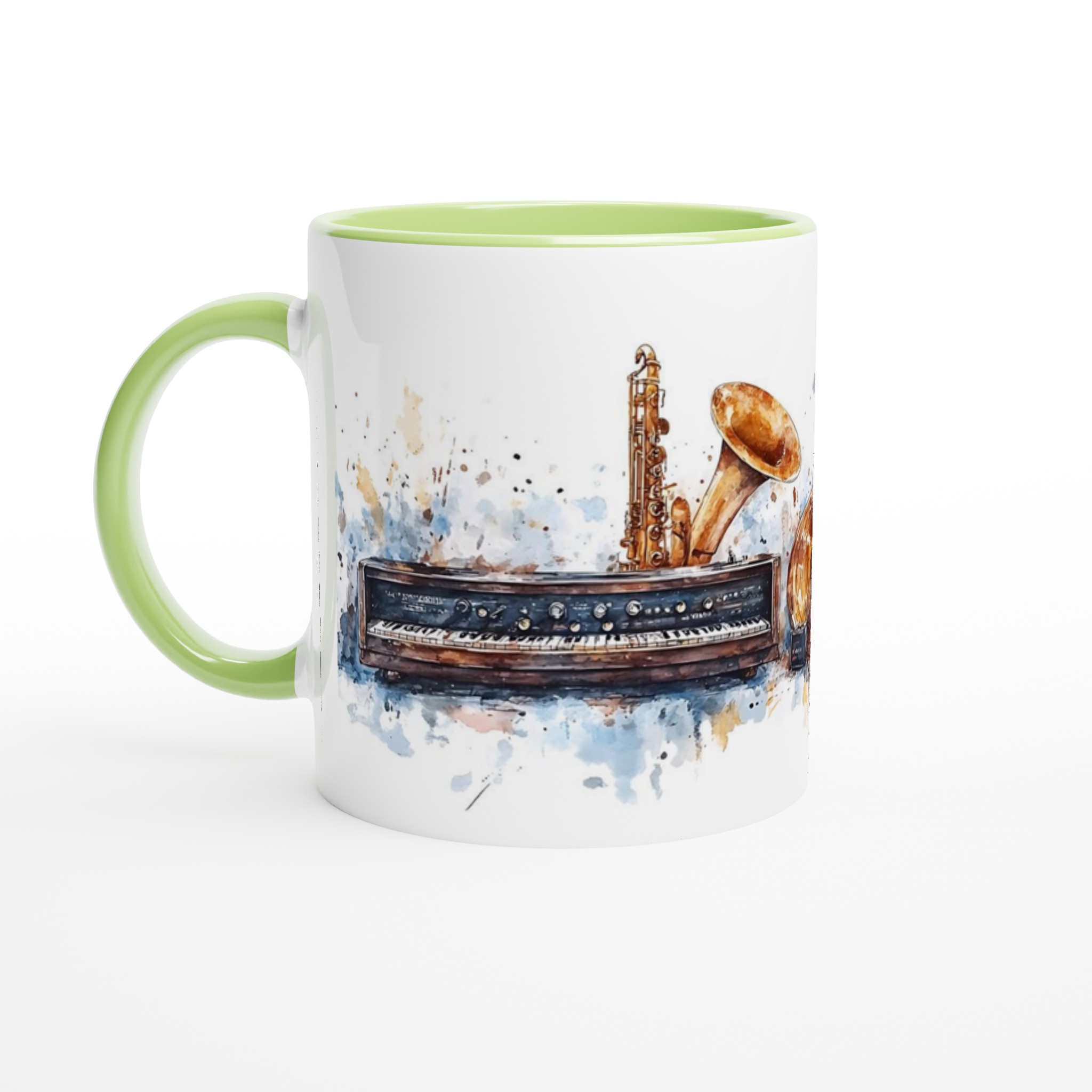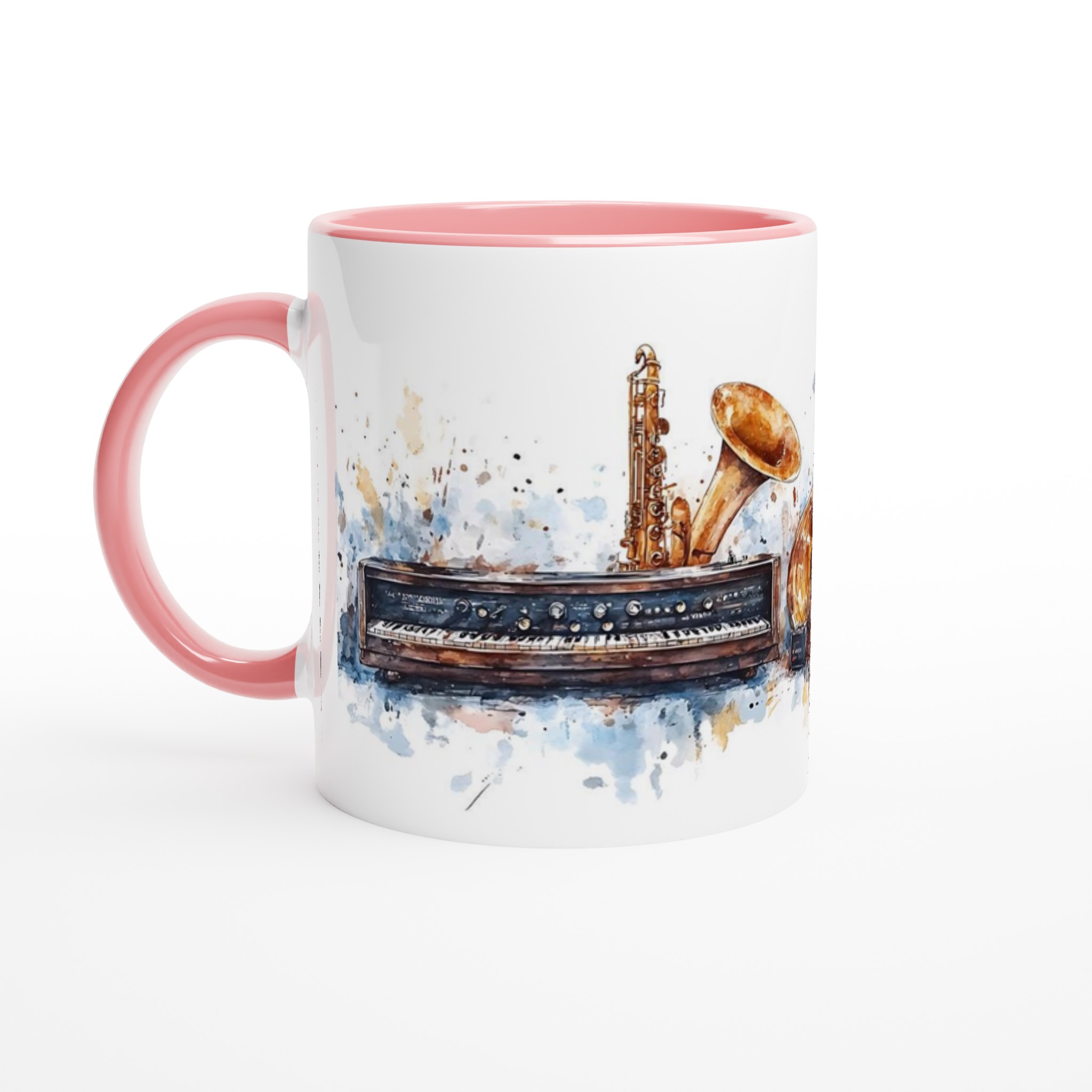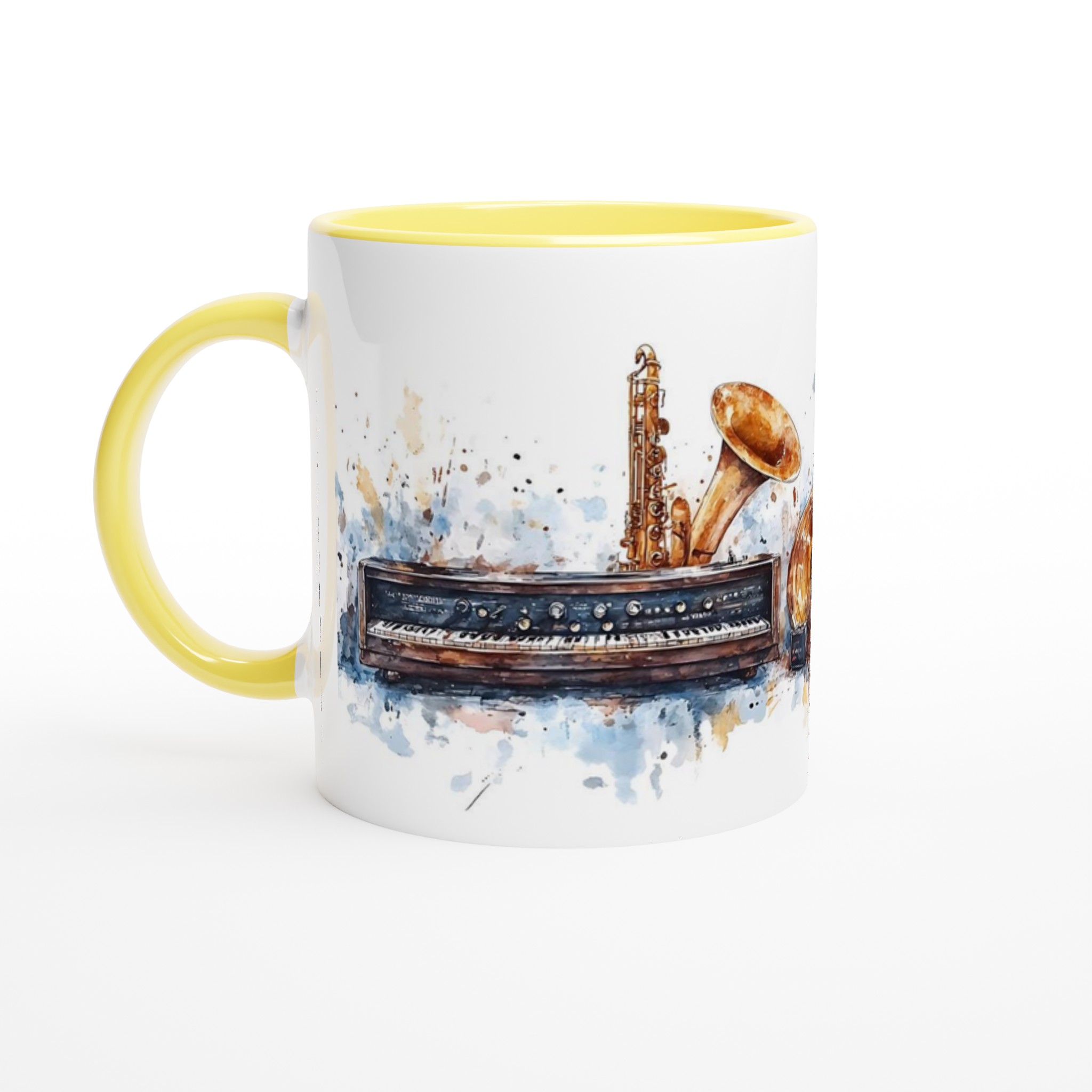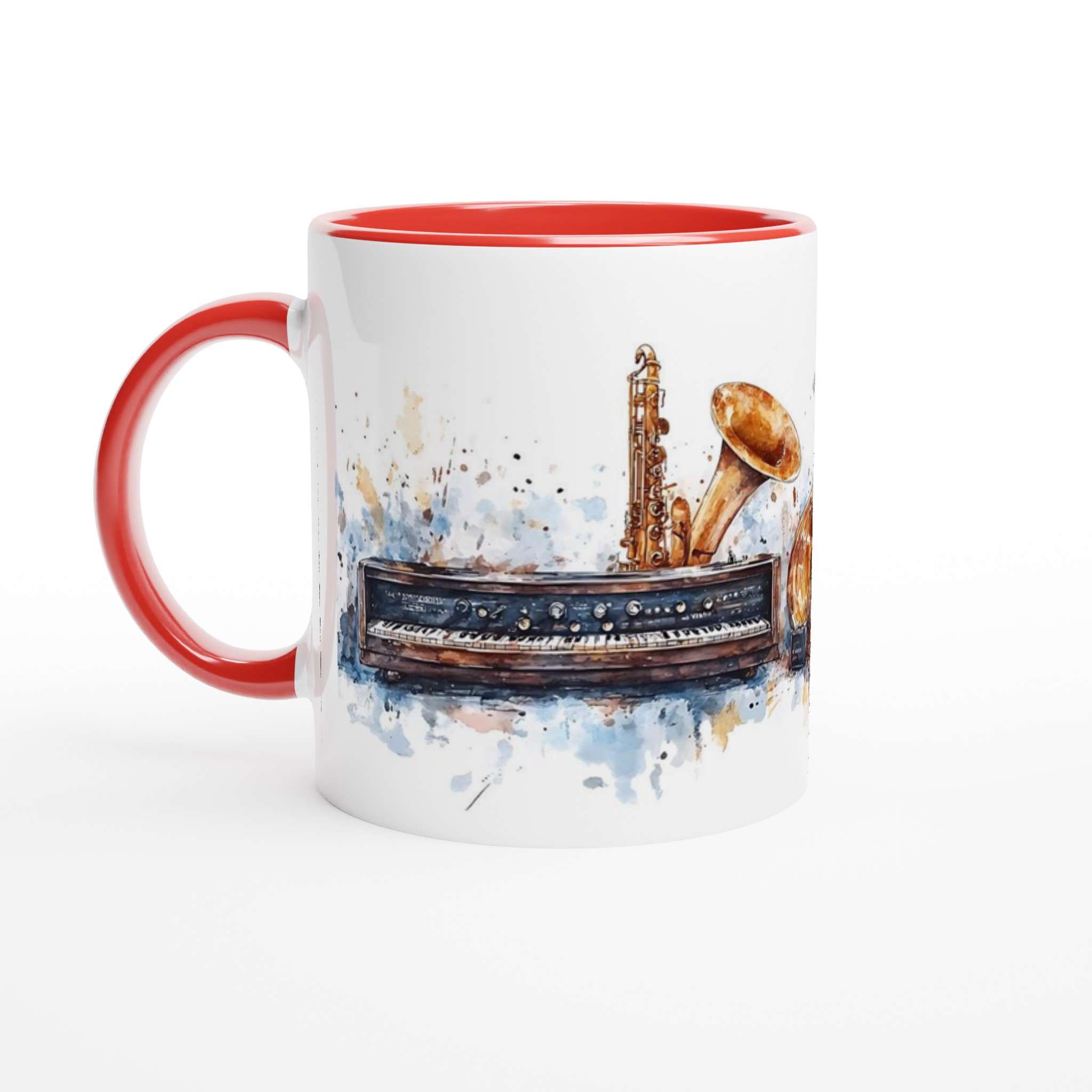 Vakna upp till tonerna av din favoritmusik varje morgon, eller koppla av med en varm dryck till kvällen med denna unika keramiska mugg. Designen, som fångar den dynamiska energin från klassiska instrument i en vacker akvarellstil, förvandlar varje sipp till en symfoni för själen. De varma sepia- och jordfärgerna, förstärkta med stänk av svalt blått, skapar en levande och konstnärlig känsla som hyllar musiken. Denna mugg blir snabbt en vardagsfavorit – vare sig du är en musikälskare, konstentusiast eller bara vill njuta av en mysig stund.
