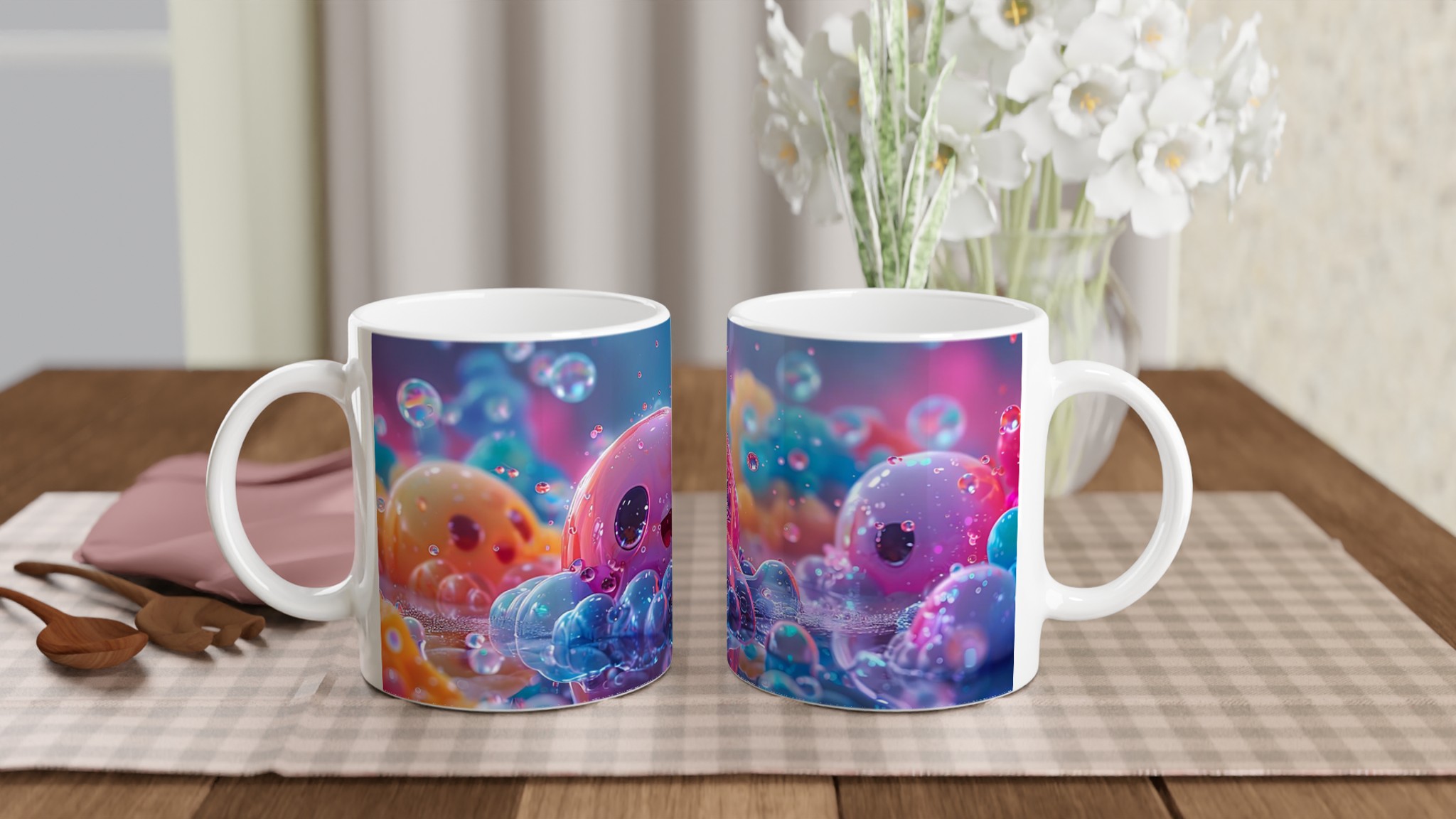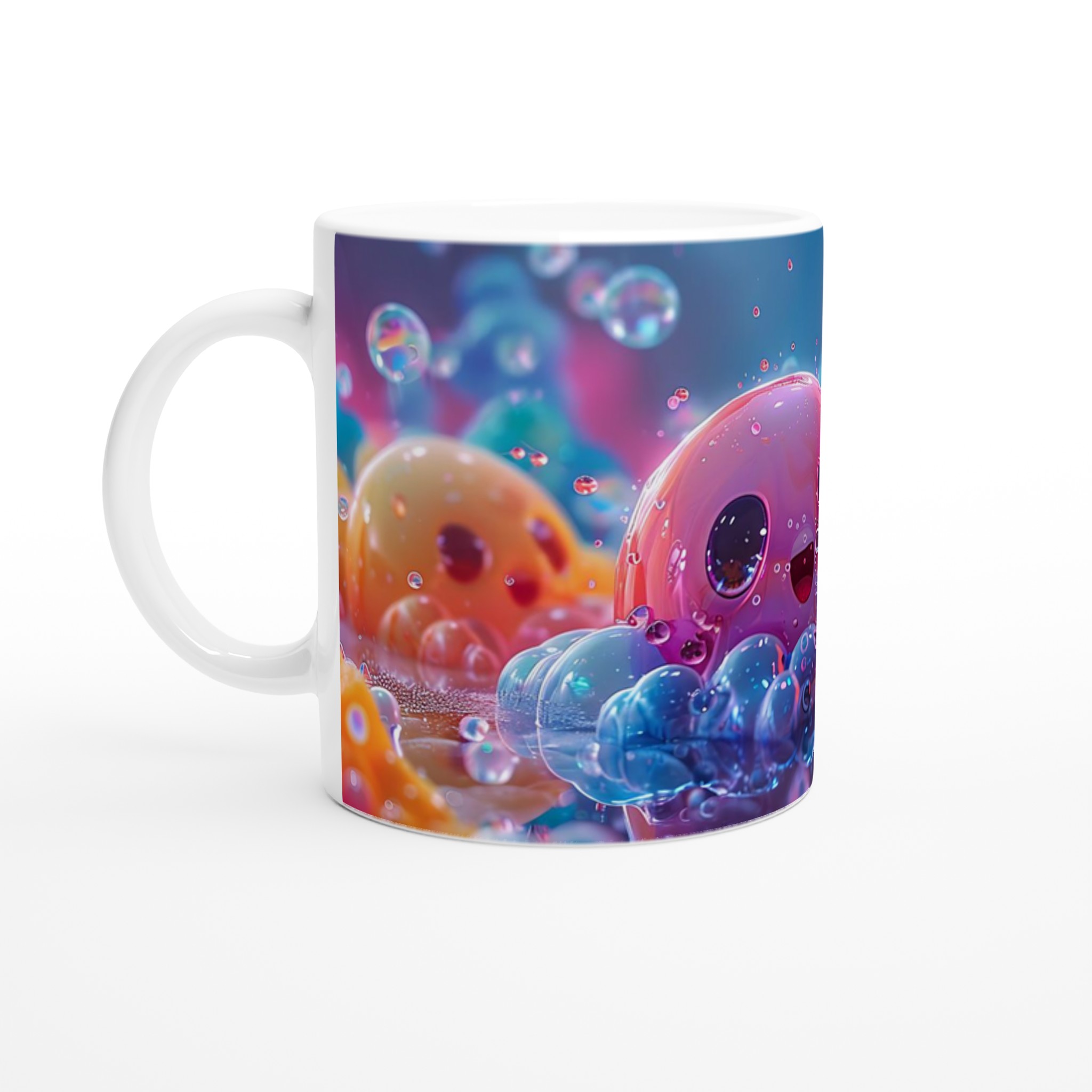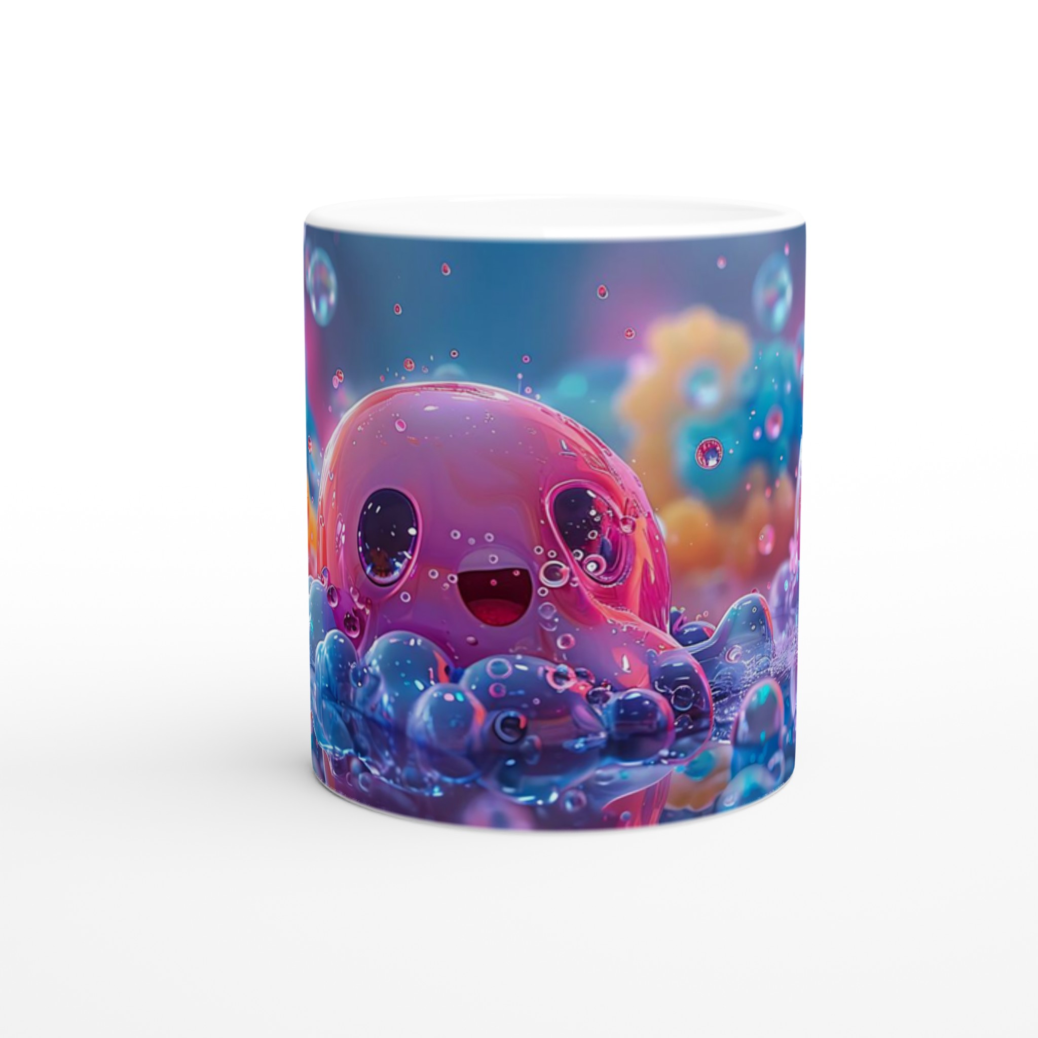 Fyll ditt hem med glädje och färg med vår ”Bläckfiskparty” Keramisk Mugg! Den här muggen är mer än bara en kopp – den är en inbjudan till ett undervattensäventyr, fyllt med gulliga bläckfiskar i bubblande rosa, gult och blått, allt fångat i en festlig explosion av färg. Det är den perfekta vardagsfavoriten för morgonkaffet, kvällens varma choklad eller när du bara vill njuta av en kopp te. Den blanka vita ytan ser till att de livfulla färgerna och de lekfulla motiven framhävs på bästa sätt, och håller sig fina även efter många turer i mikron och diskmaskinen.