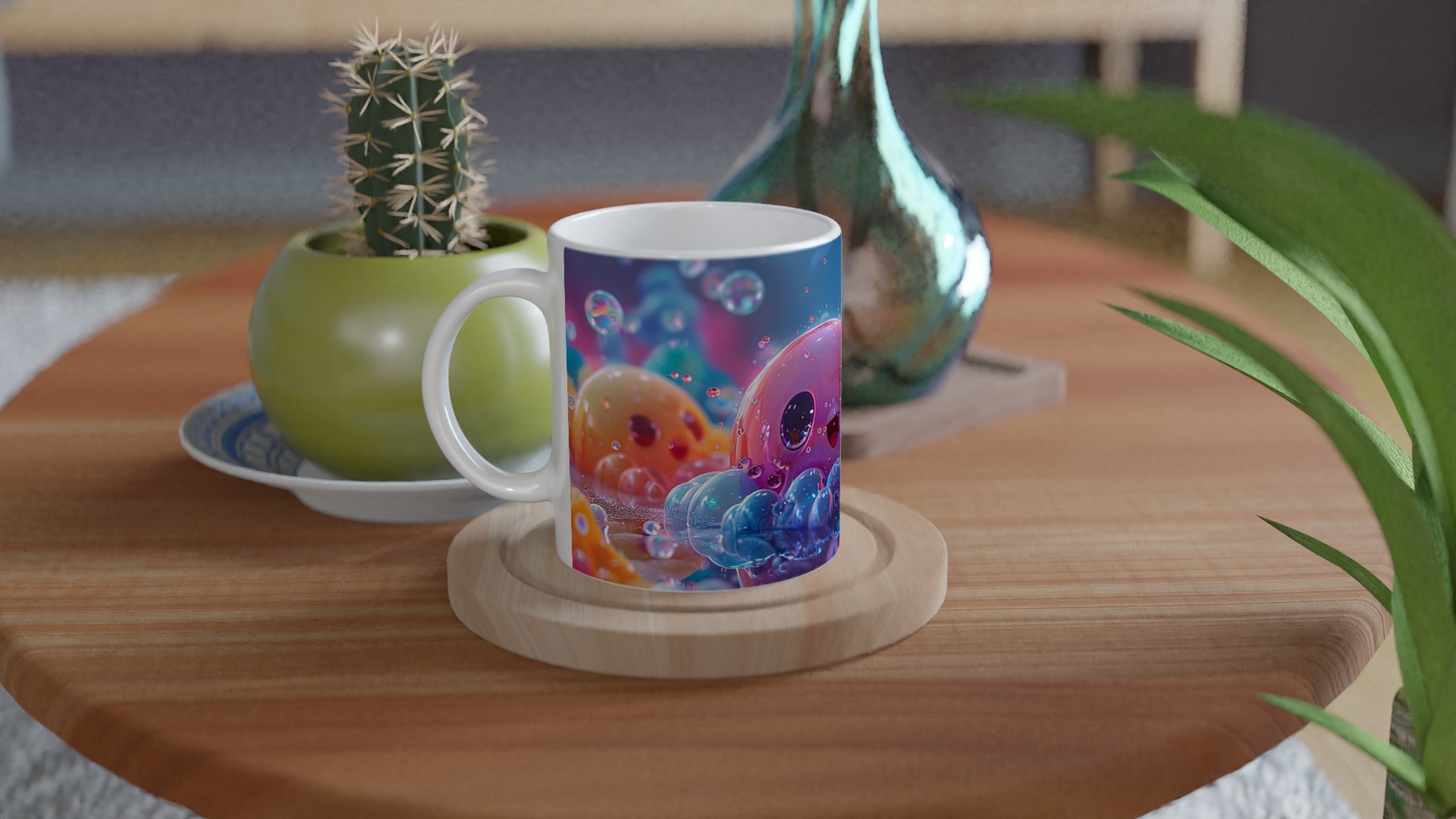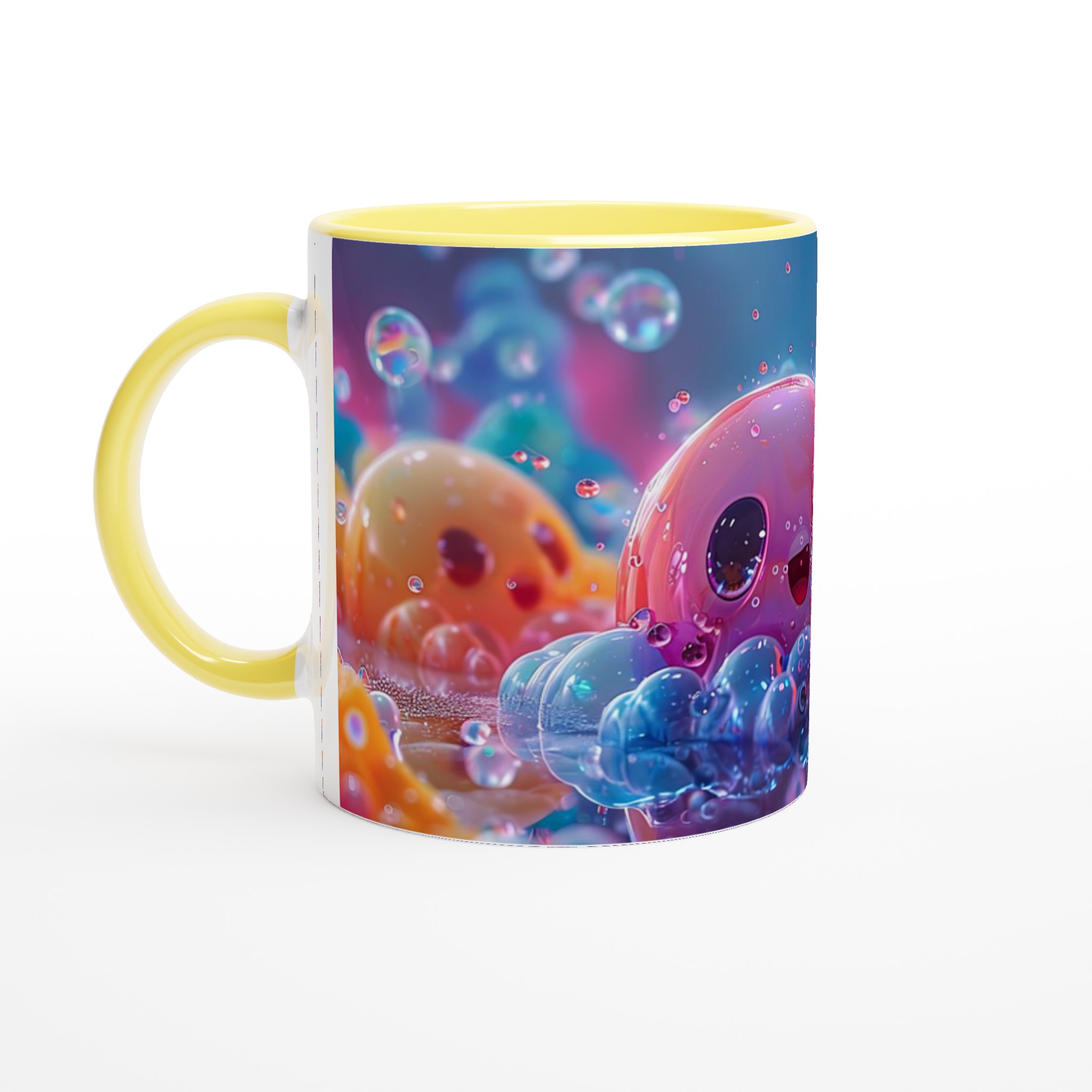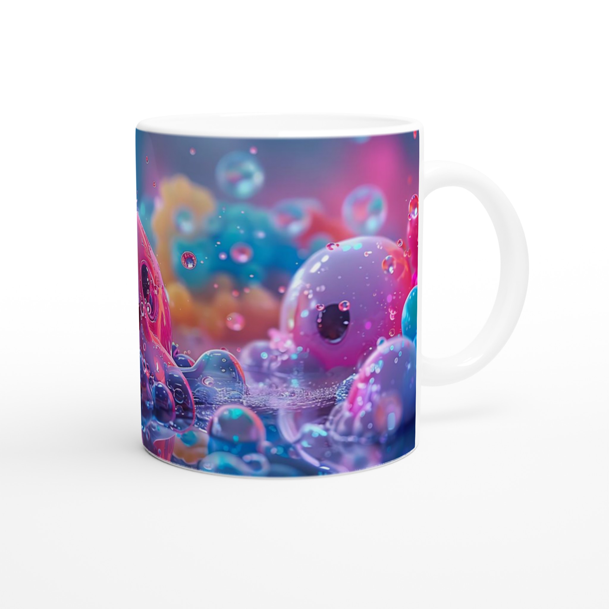 Fyll ditt hem med glädje och färg med vår ”Bläckfiskparty” Keramisk Mugg! Den här muggen är mer än bara en kopp – den är en inbjudan till ett undervattensäventyr, fyllt med gulliga bläckfiskar i bubblande rosa, gult och blått, allt fångat i en festlig explosion av färg. Det är den perfekta vardagsfavoriten för morgonkaffet, kvällens varma choklad eller när du bara vill njuta av en kopp te. Den blanka vita ytan ser till att de livfulla färgerna och de lekfulla motiven framhävs på bästa sätt, och håller sig fina även efter många turer i mikron och diskmaskinen.
