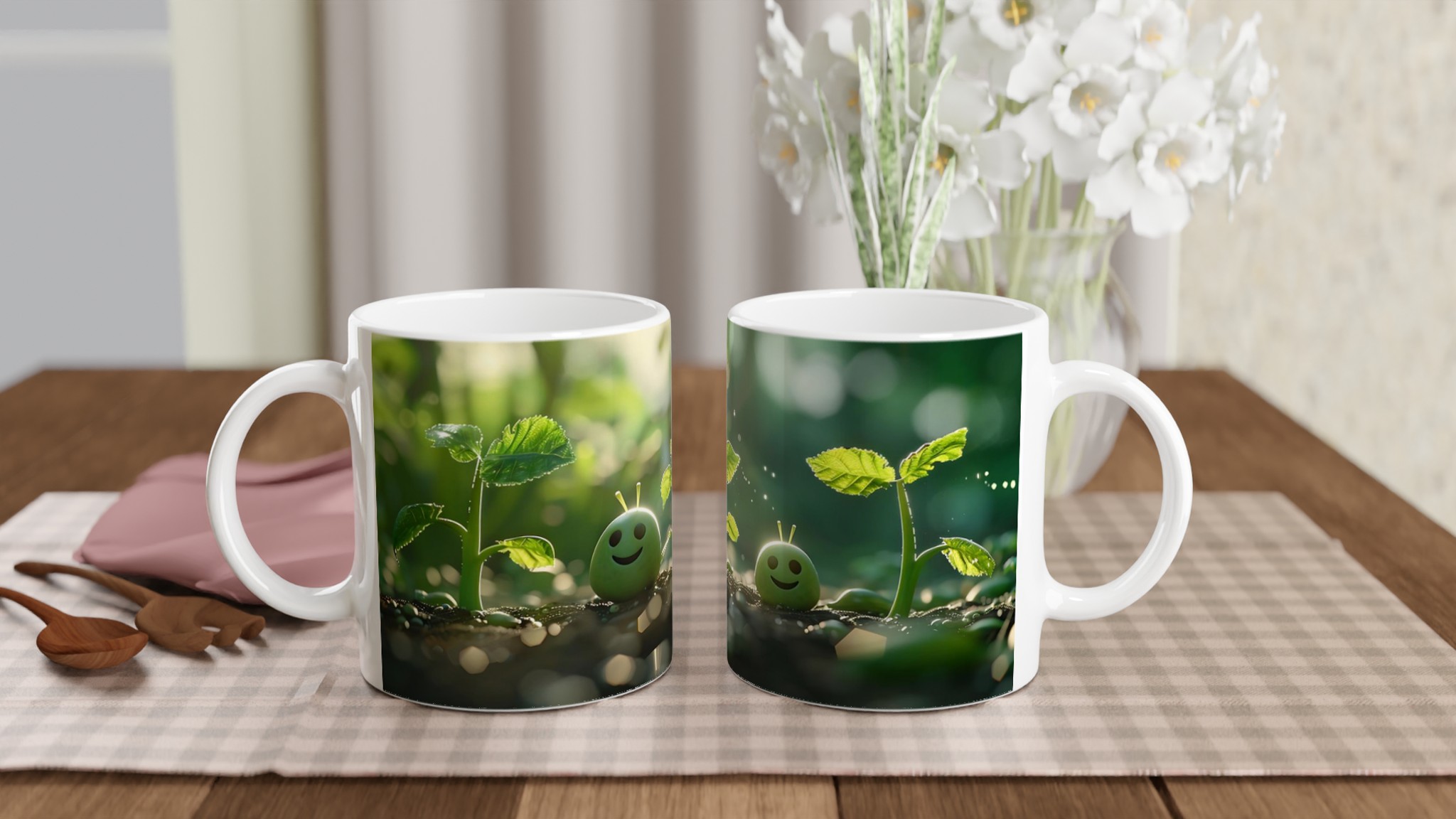 Låt varje klunk bli en liten glädjestund med vår ”Glada Groddar” keramiska mugg! Inspirerad av den charmiga bilden av spirande grönska och söta, leende figurer, är denna mugg designad för att bringa ett leende till ditt ansikte varje dag. Den är perfekt för morgonkaffet när du vill kickstarta dagen med positiv energi, för en mysig kvällsdrink, eller när du bara vill njuta av en kopp te och drömma dig bort till en lummig trädgård.