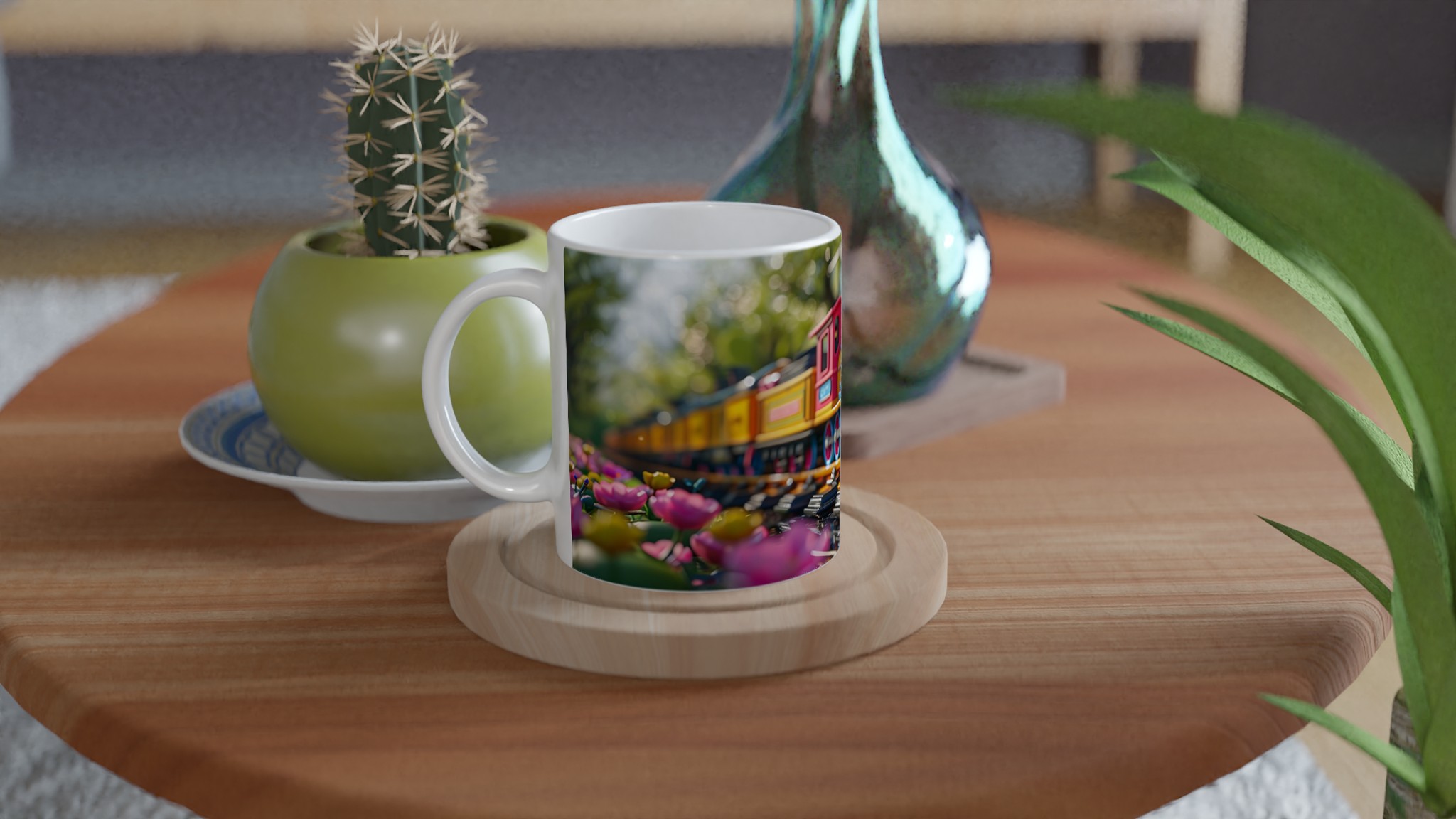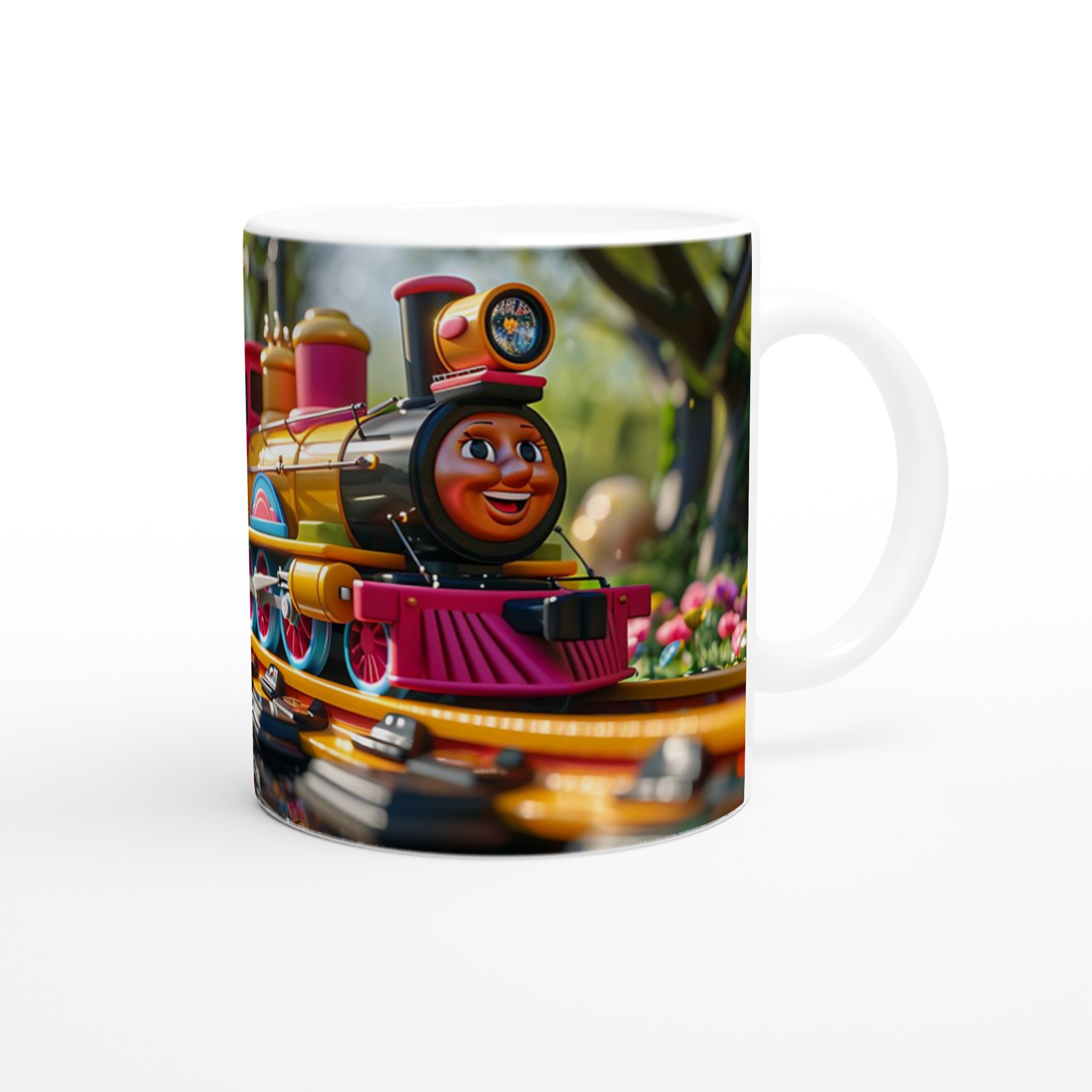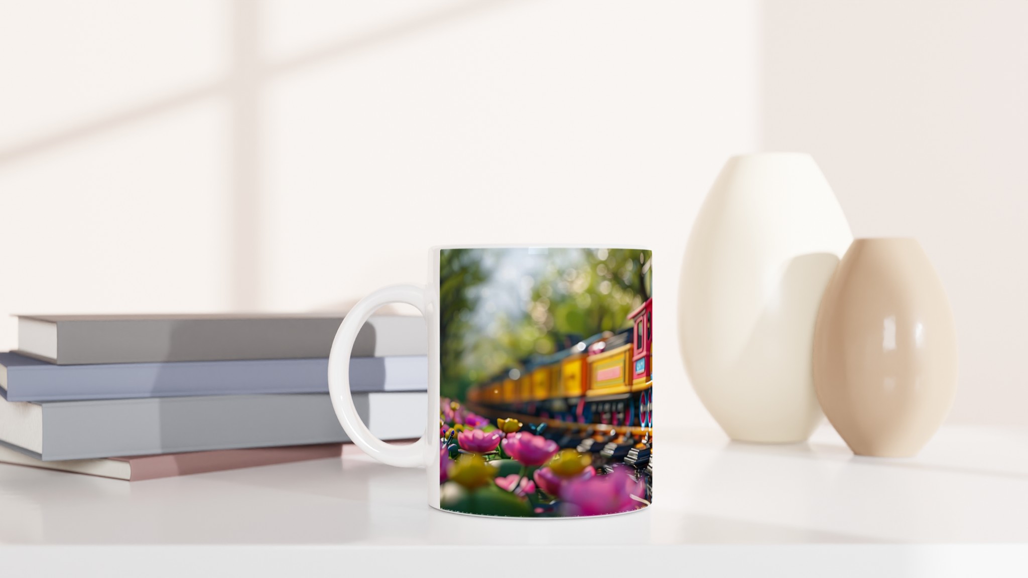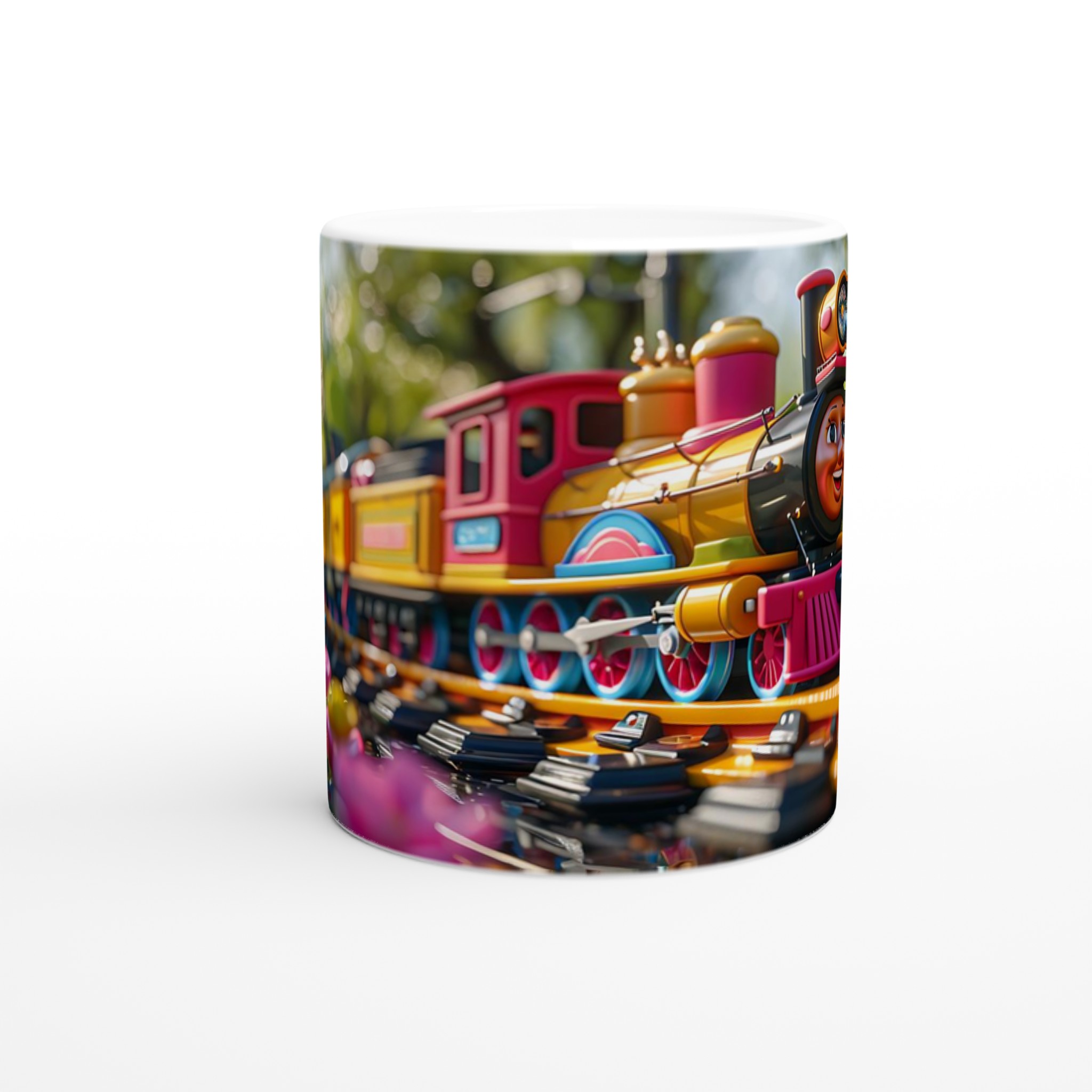 Låt dig förtrollas av denna charmiga och färgstarka keramiska mugg, perfekt för att lysa upp din dag! Med ett leende lokomotiv som tuffar fram genom ett blomstrande landskap, blir varje klunk en liten utflykt till glädje och fantasi. Den här muggen blir snabbt en vardagsfavorit. Perfekt för morgonkaffet, kvällens varma choklad eller när du bara vill njuta av en kopp te.