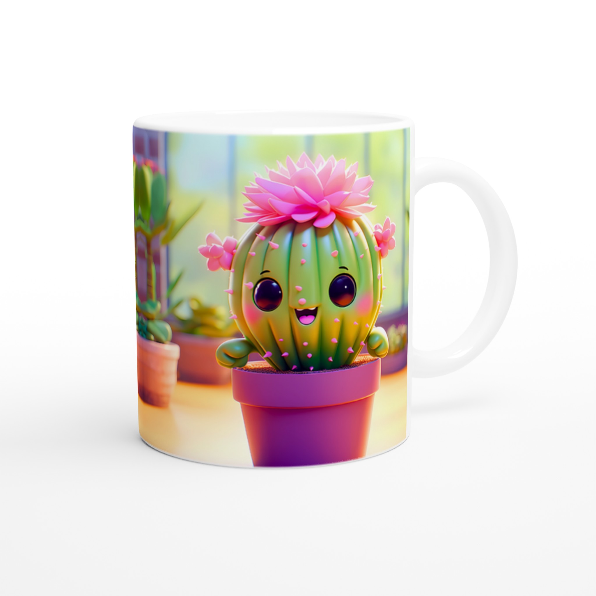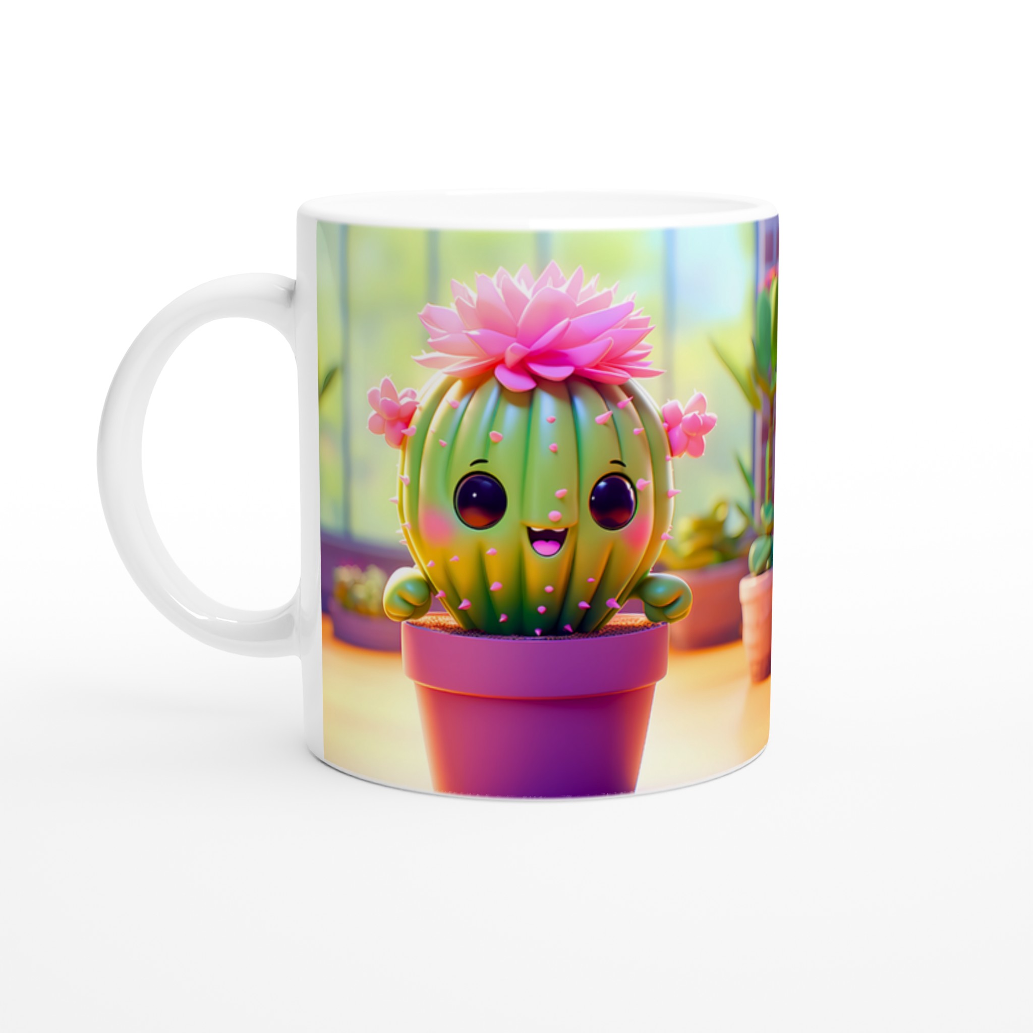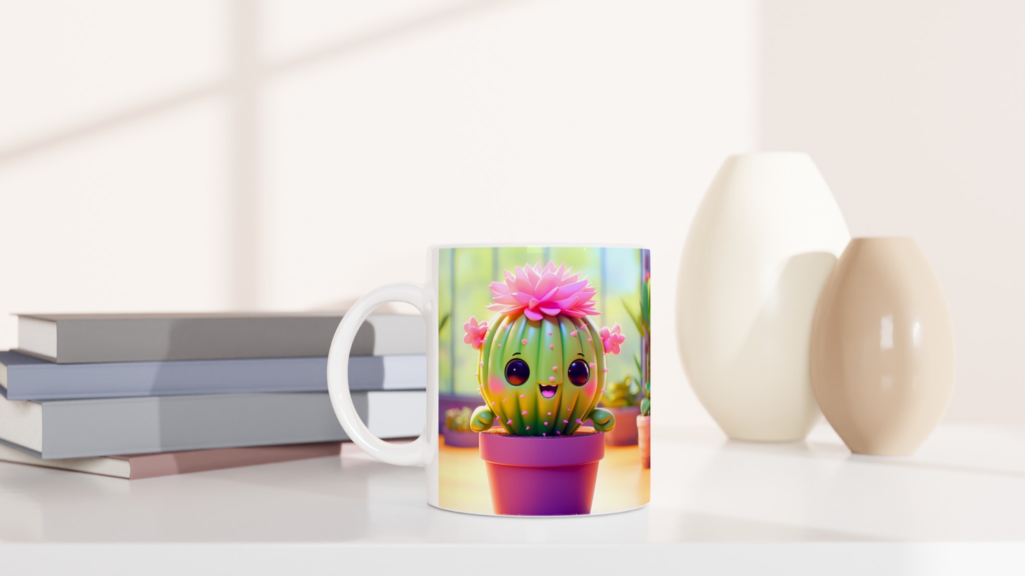 Väck liv i din fikapaus med vår förtjusande ”Kramgo Kaktus” mugg! Den här muggen är mer än bara en kopp; den är en liten, leende vän som sprider glädje med sina stora ögon och söta rosa kinder, omgiven av en fridfull grönskande miljö. Perfekt för morgonkaffet, kvällens varma choklad eller när du bara vill njuta av en kopp te och drömma dig bort till en blomstrande oas.