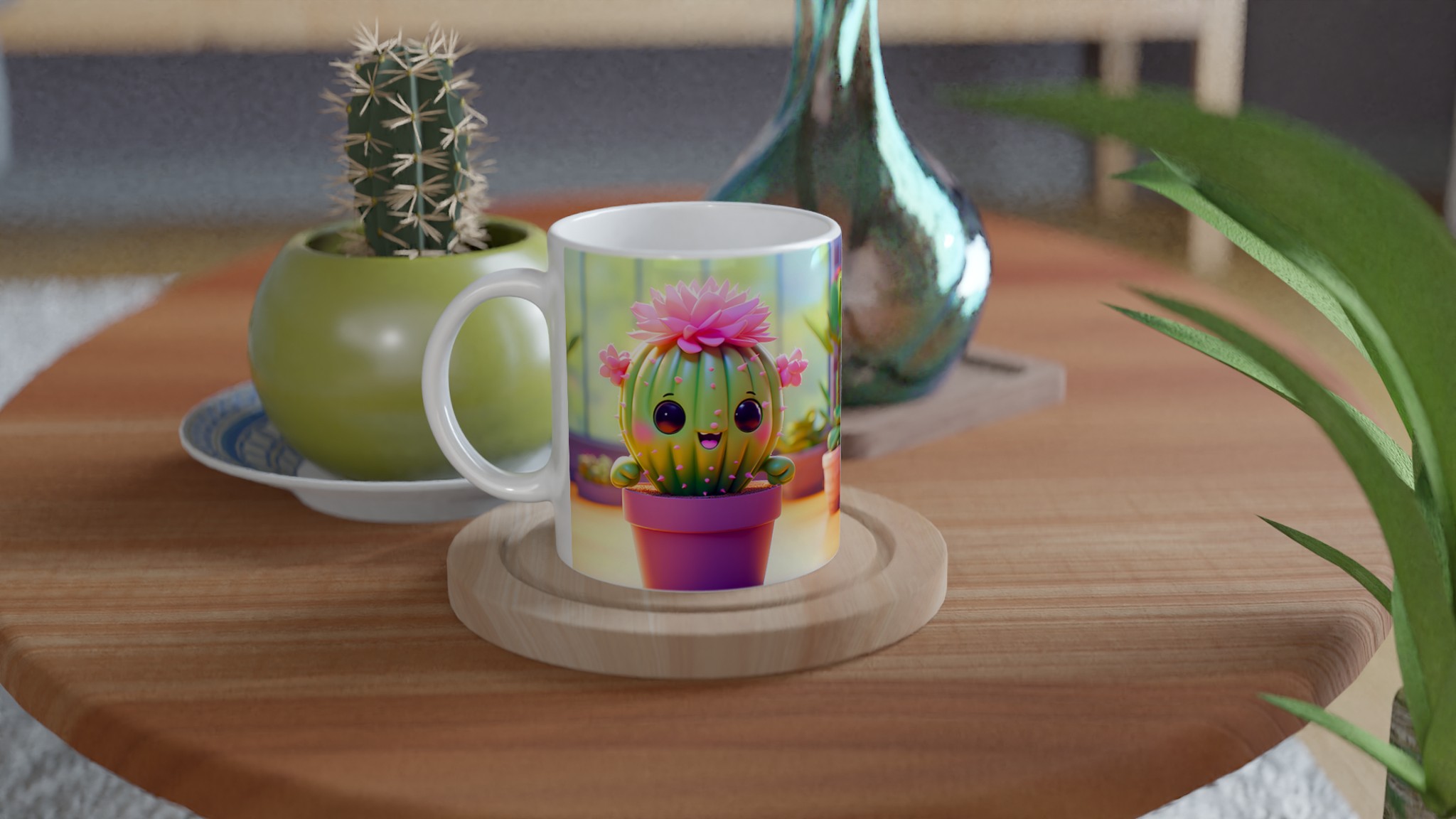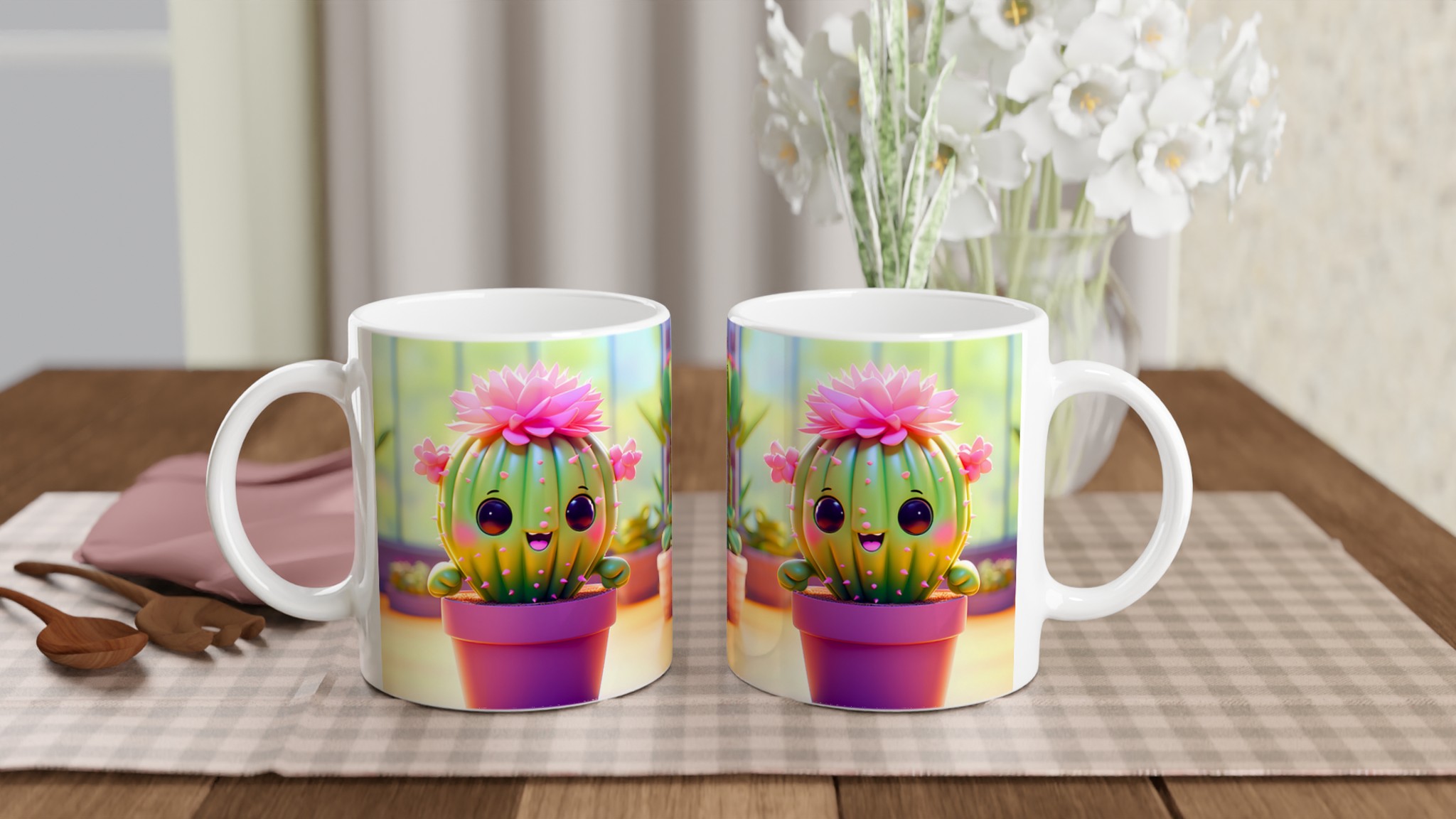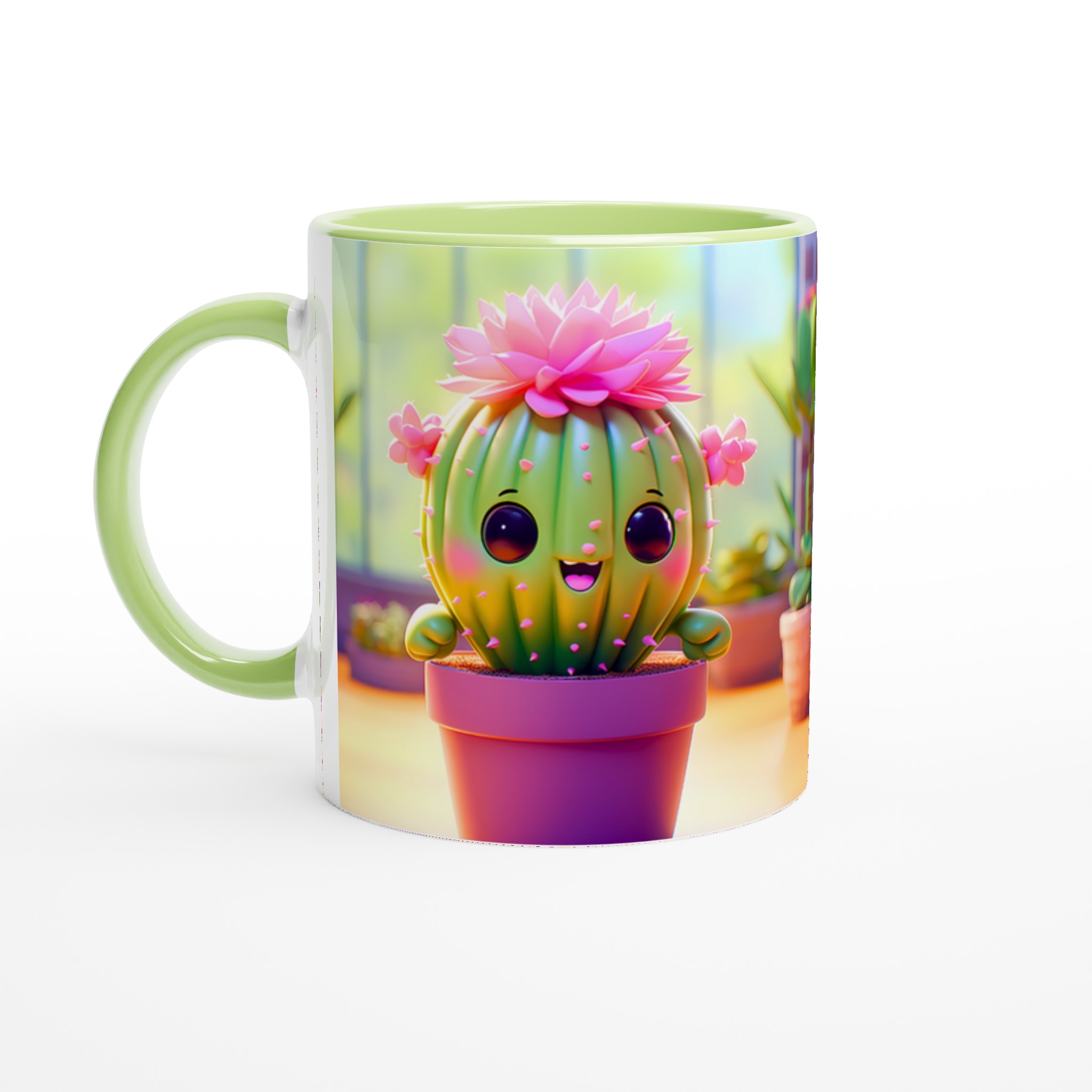 Väck liv i din fikapaus med vår förtjusande ”Kramgo Kaktus” mugg! Den här muggen är mer än bara en kopp; den är en liten, leende vän som sprider glädje med sina stora ögon och söta rosa kinder, omgiven av en fridfull grönskande miljö. Perfekt för morgonkaffet, kvällens varma choklad eller när du bara vill njuta av en kopp te och drömma dig bort till en blomstrande oas.