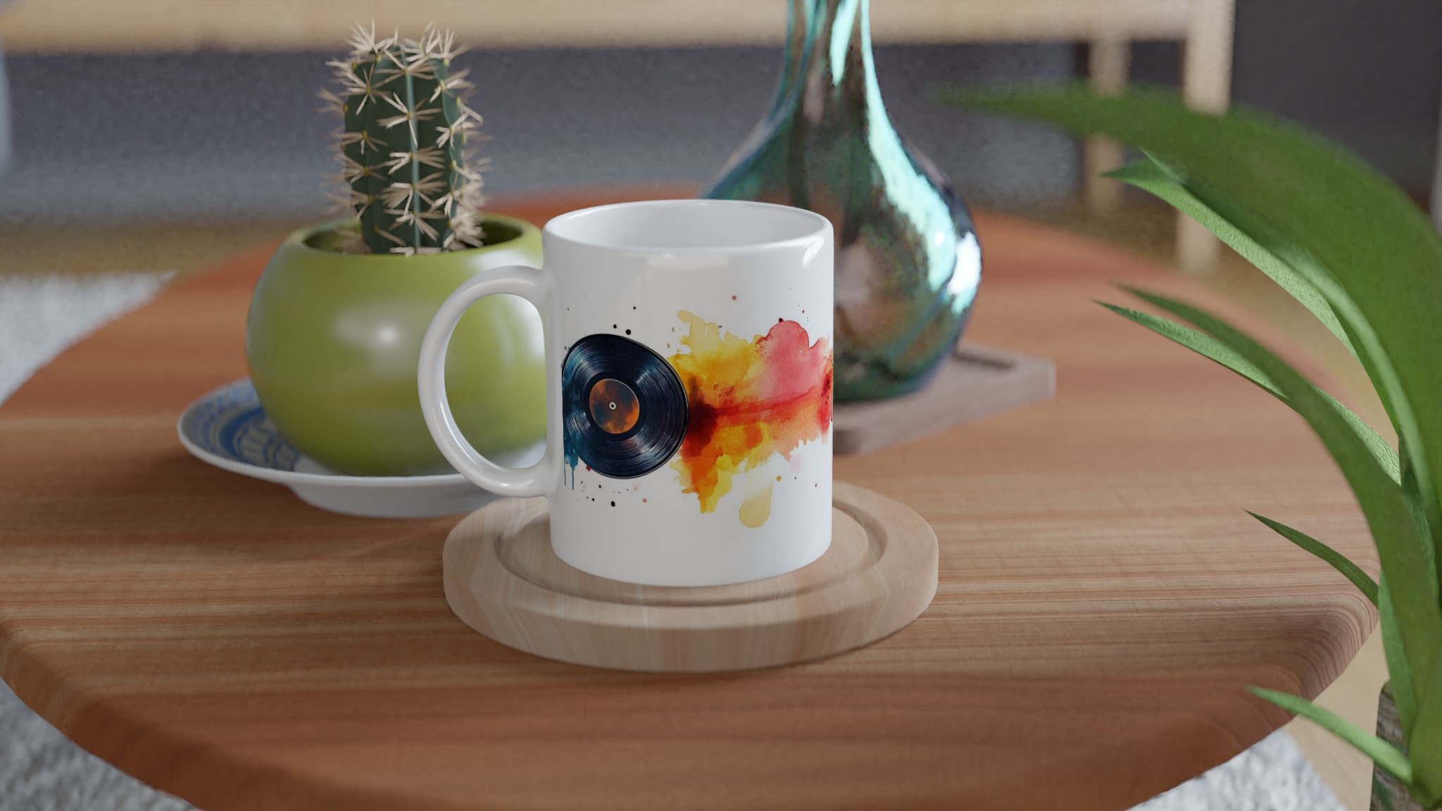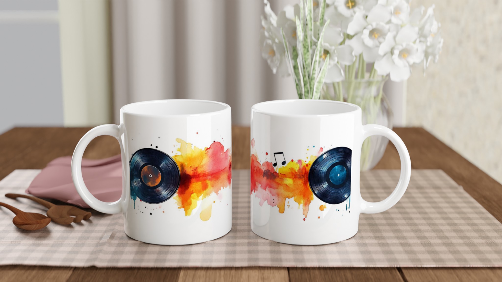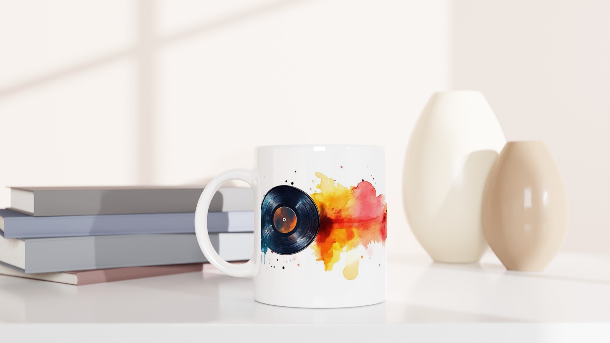 Den blanka vita ytan ser till att varje detalj i ”Vinyl Vibes”-designen framhävs med klara och levande färger, som håller sig fina även efter otaliga turer i mikron och diskmaskinen. Välj din favoritmugg från ett spektrum av sju keramiska färger – Ceramic White, Ceramic Yellow, Ceramic Pink, Ceramic Green, Ceramic Red, Ceramic Black eller Ceramic Blue – för att matcha din personliga stil eller din inredning. Denna mugg är inte bara praktisk, den är också en uppskattad present till musikälskaren, den konstnärliga själen eller kollegan som uppskattar en personlig och tankeväckande gåva som alltid kommer till användning.