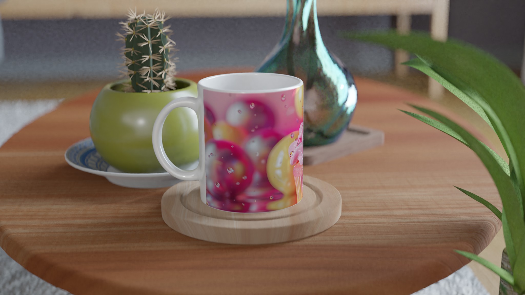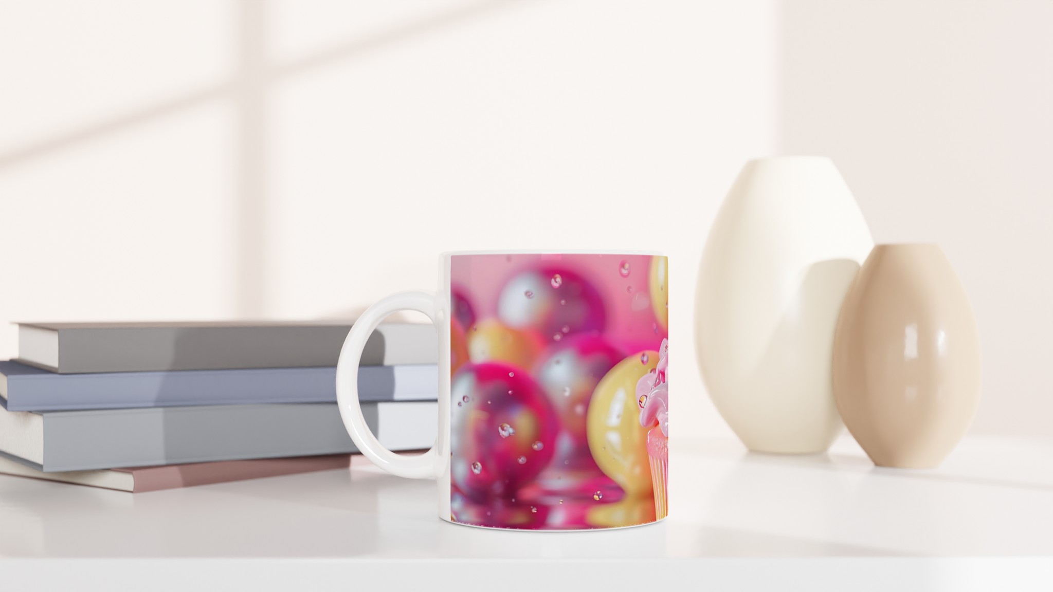Lys upp din vardag med denna underbart lekfulla keramiska mugg! Inspirerad av livfulla kalas och söta godsaker, förvandlar denna mugg varje dryck till en fest. Oavsett om det är till morgonkaffet, en lugn stund med te, eller kvällens varma choklad, är denna mugg designad för att sprida glädje. Den blanka ytan ser till att de klara, levande färgerna behåller sin lyster, även efter otaliga turer i mikron och diskmaskinen.