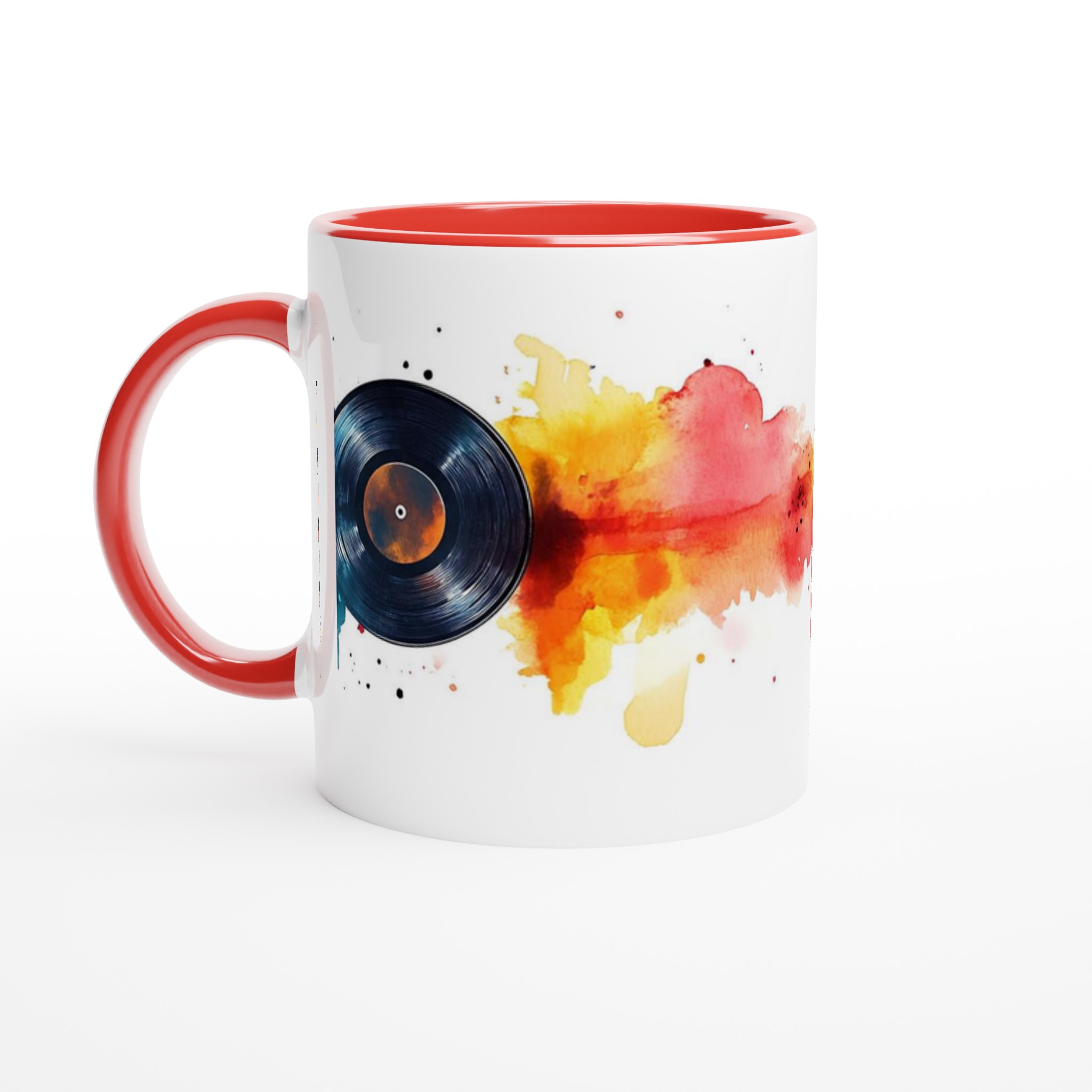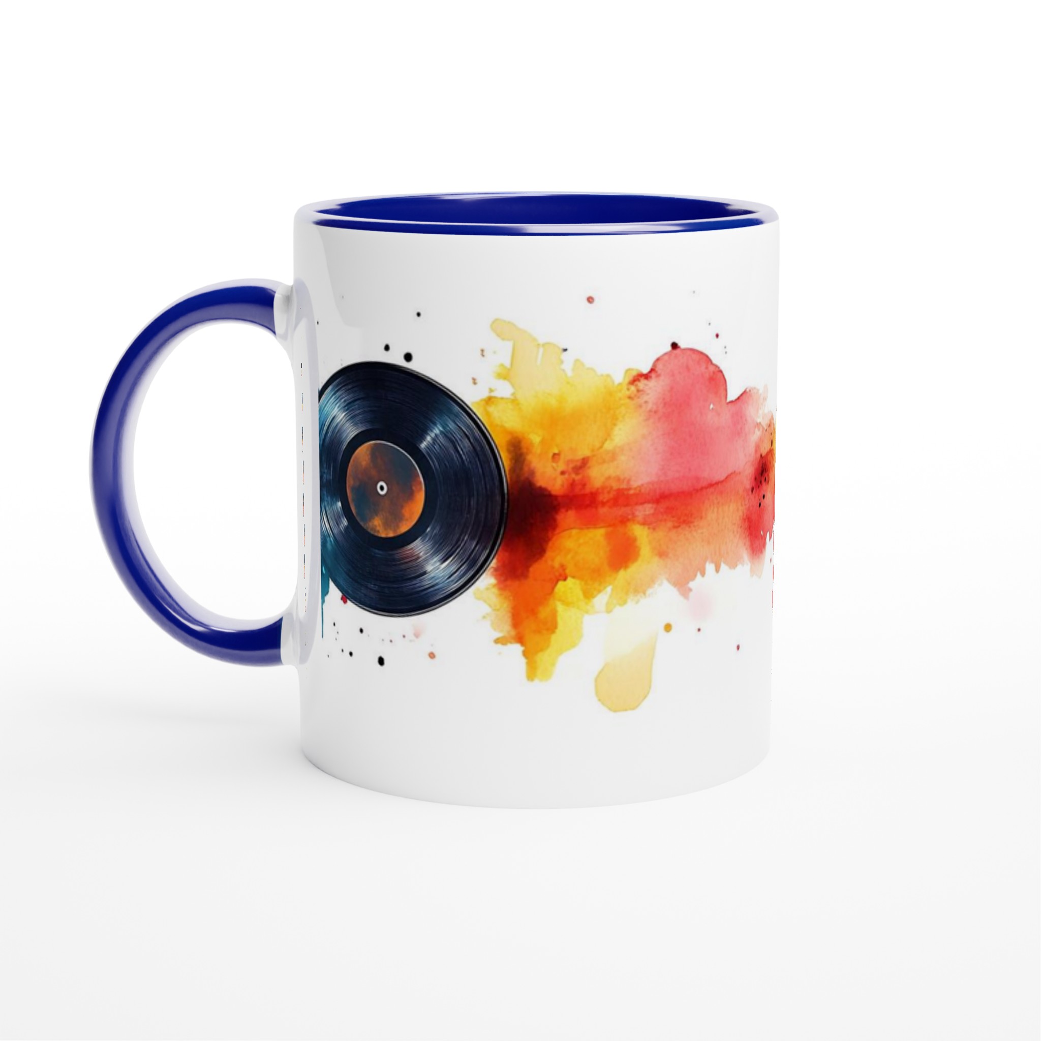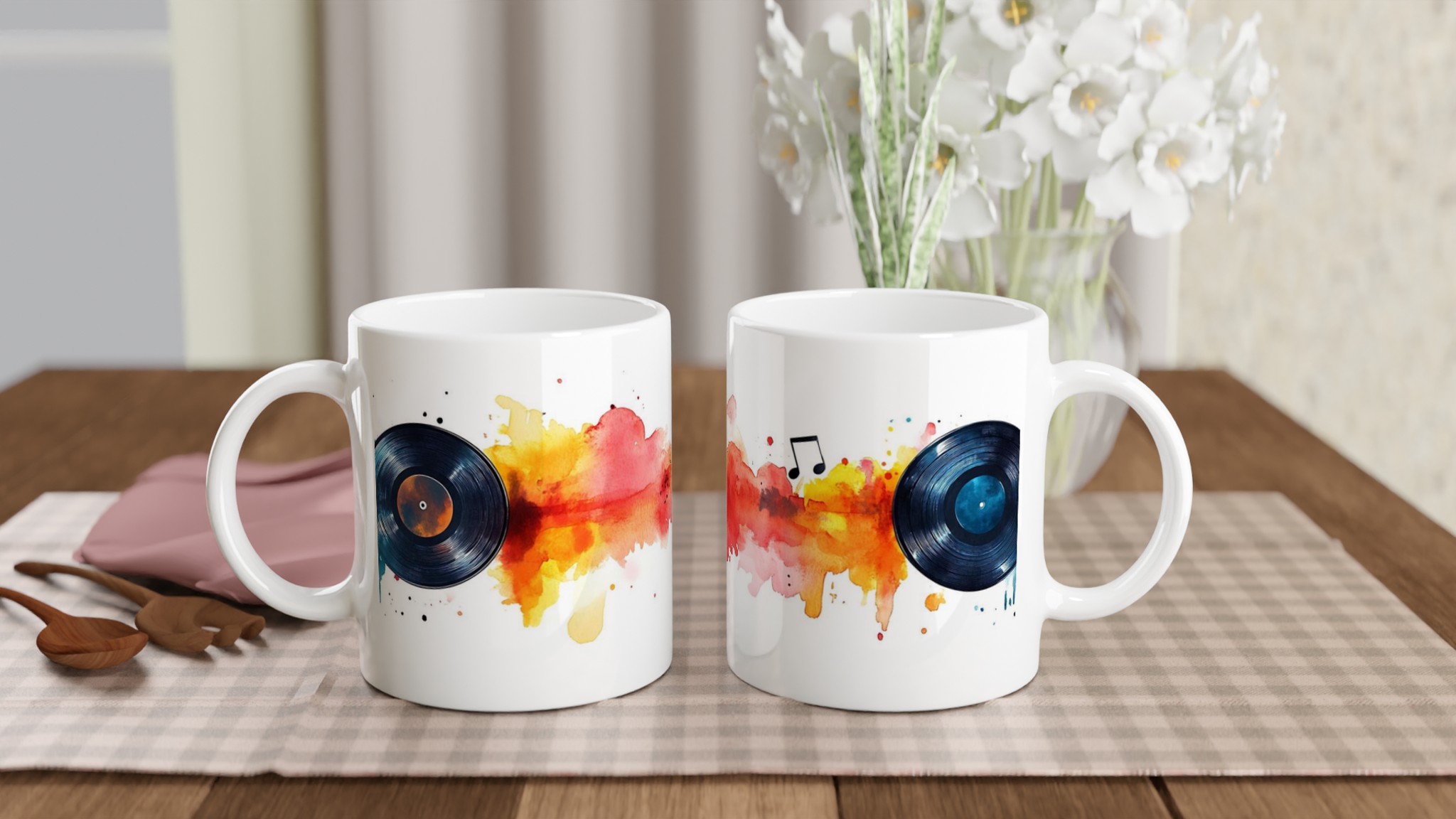 Musikalisk Akvarell Mugg – Personlig Keramisk Kaffemugg med Färgstarka Vinylskivor