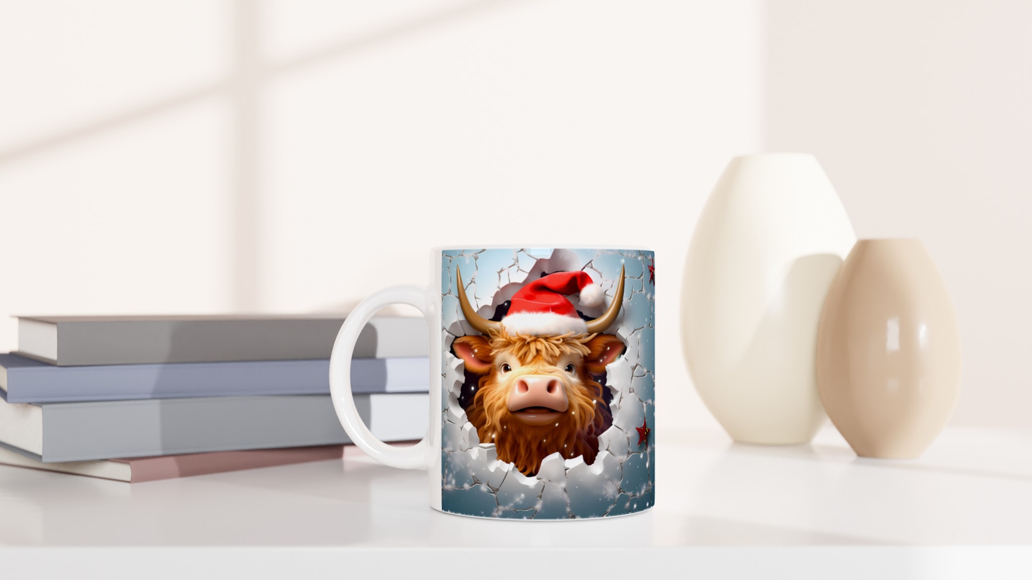 Sprid julglädje med denna charmiga keramiska mugg, som blir en omedelbar favorit under högtiden! Föreställ dig den mysiga känslan med en gullig julko i tomteluva som tittar fram genom en snöig vägg – den perfekta följeslagaren för ditt morgonkaffe, kvällens varma choklad, eller när du bara vill njuta av en kopp te under vinterkvällarna.