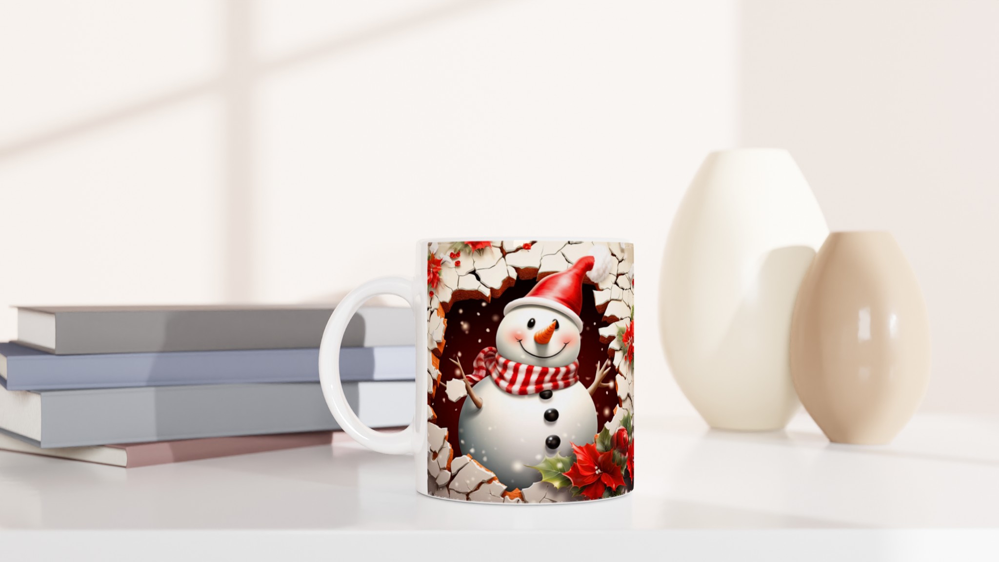 Sprid julglädje med varje klunk! Denna charmiga keramiska mugg fångar den lekfulla andan av en snögubbe som kikar fram, omgiven av festliga juldekorationer. Det är den perfekta vardagsfavoriten för att liva upp morgonkaffet, värma dig med kvällens varma choklad eller bara för att njuta av en kopp te medan snön faller utanför.