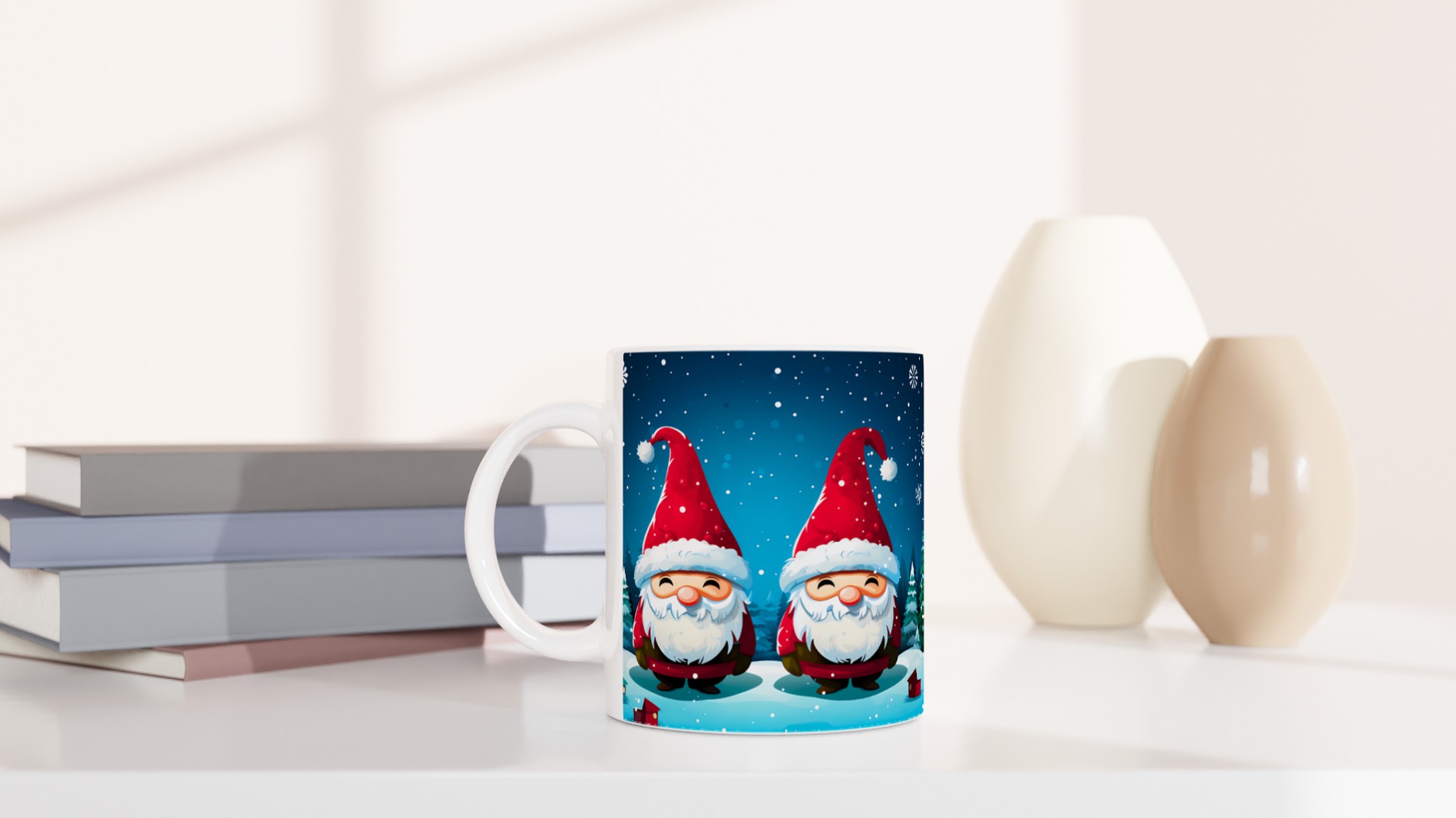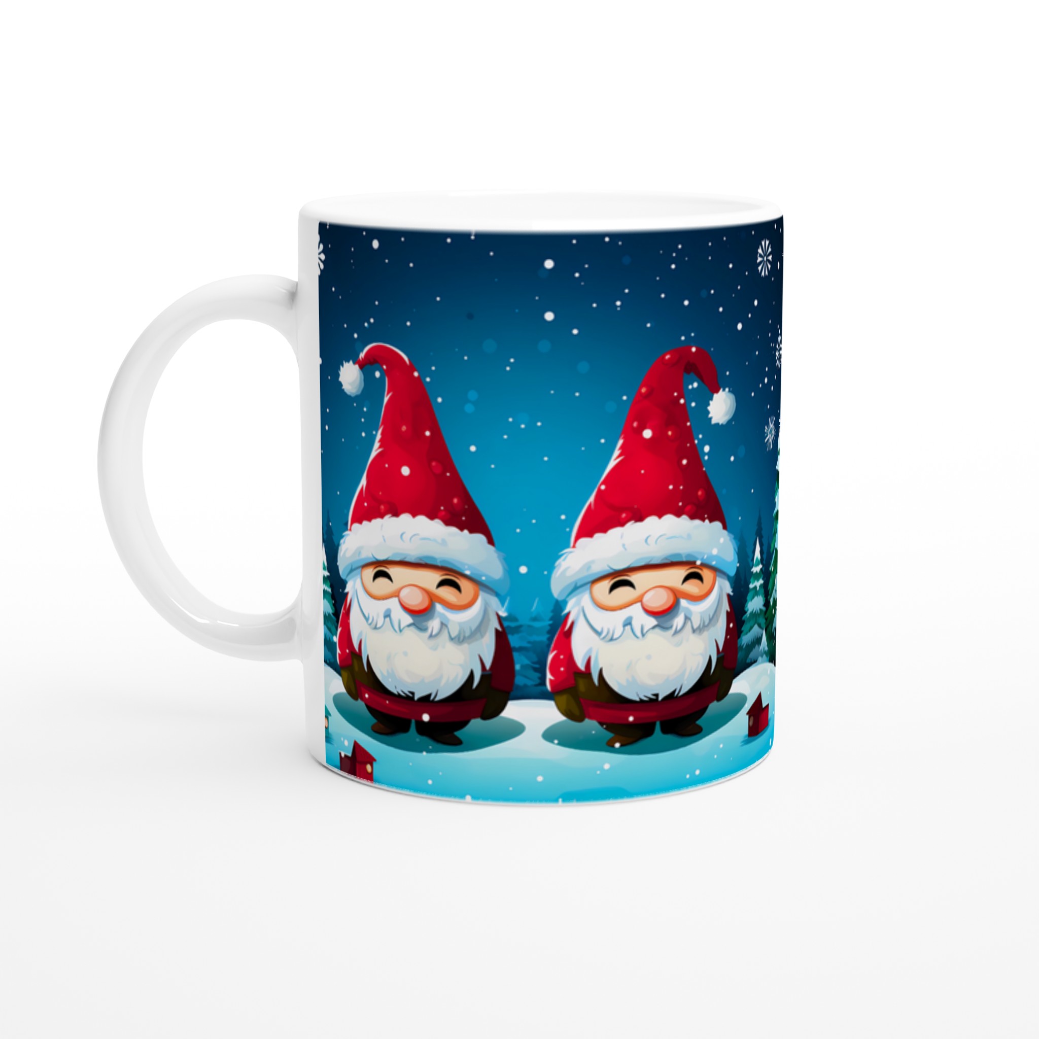 Fånga julstämningen med varje klunk ur vår mysiga tomtenisse-mugg! Denna charmiga keramiska mugg, prydd med glada tomtar mot en vinterblå bakgrund, blir snabbt en favorit under hela högtiden. Perfekt för morgonkaffet som värmer en snöig morgon, kvällens varma choklad vid brasan, eller när du bara vill njuta av en kopp te medan snöflingorna faller utanför.