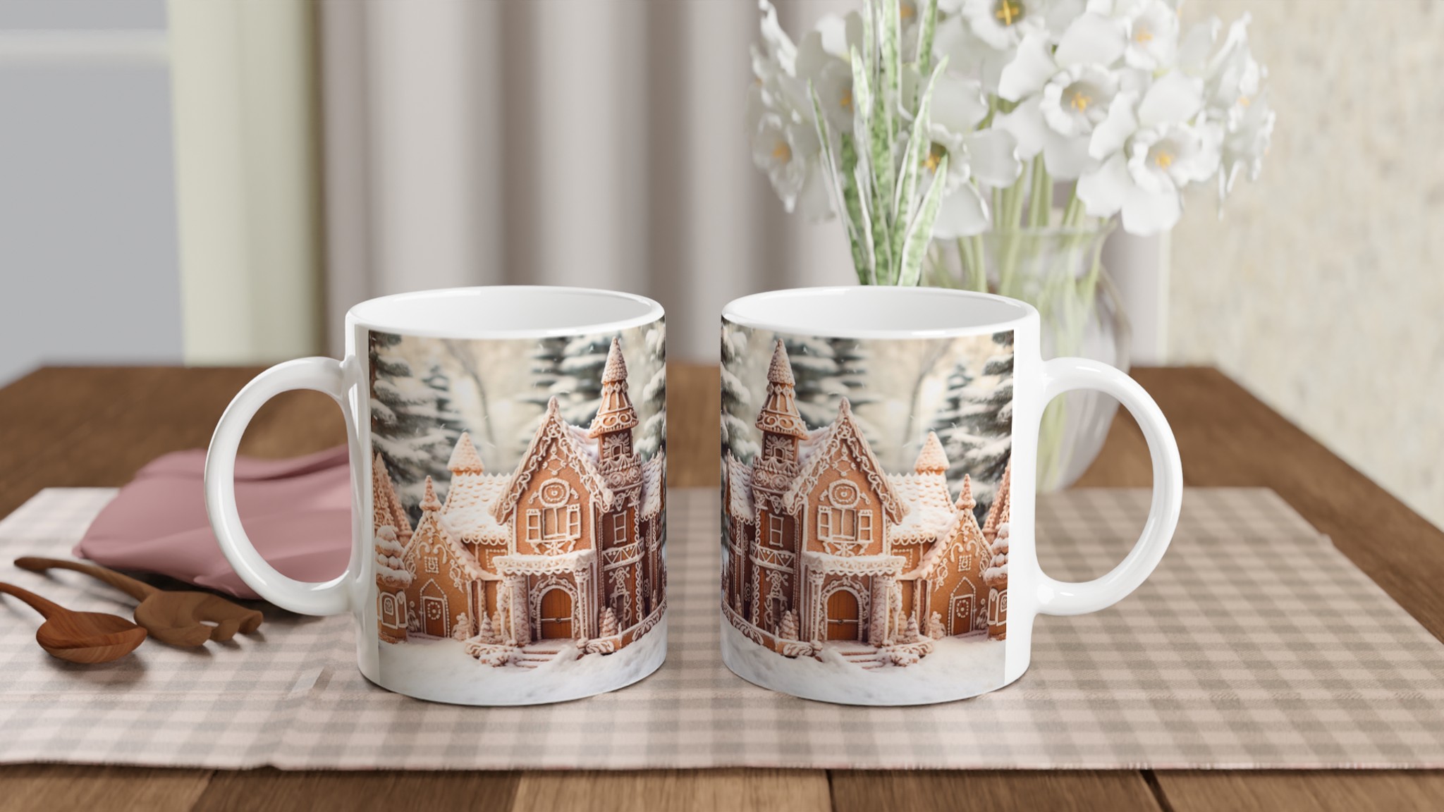 Föreställ dig en mysig vinterkväll, insvept i en filt, med en varm dryck i denna bedårande mugg som fångar magin i ett snötäckt pepparkakshus. Denna stilrena keramiska mugg blir snabbt en vardagsfavorit. Perfekt för morgonkaffet, kvällens varma choklad eller när du bara vill njuta av en kopp te. Den blanka ytan gör att trycken framhävs med klara och levande färger, som håller sig fina även efter många turer i mikron och diskmaskinen.