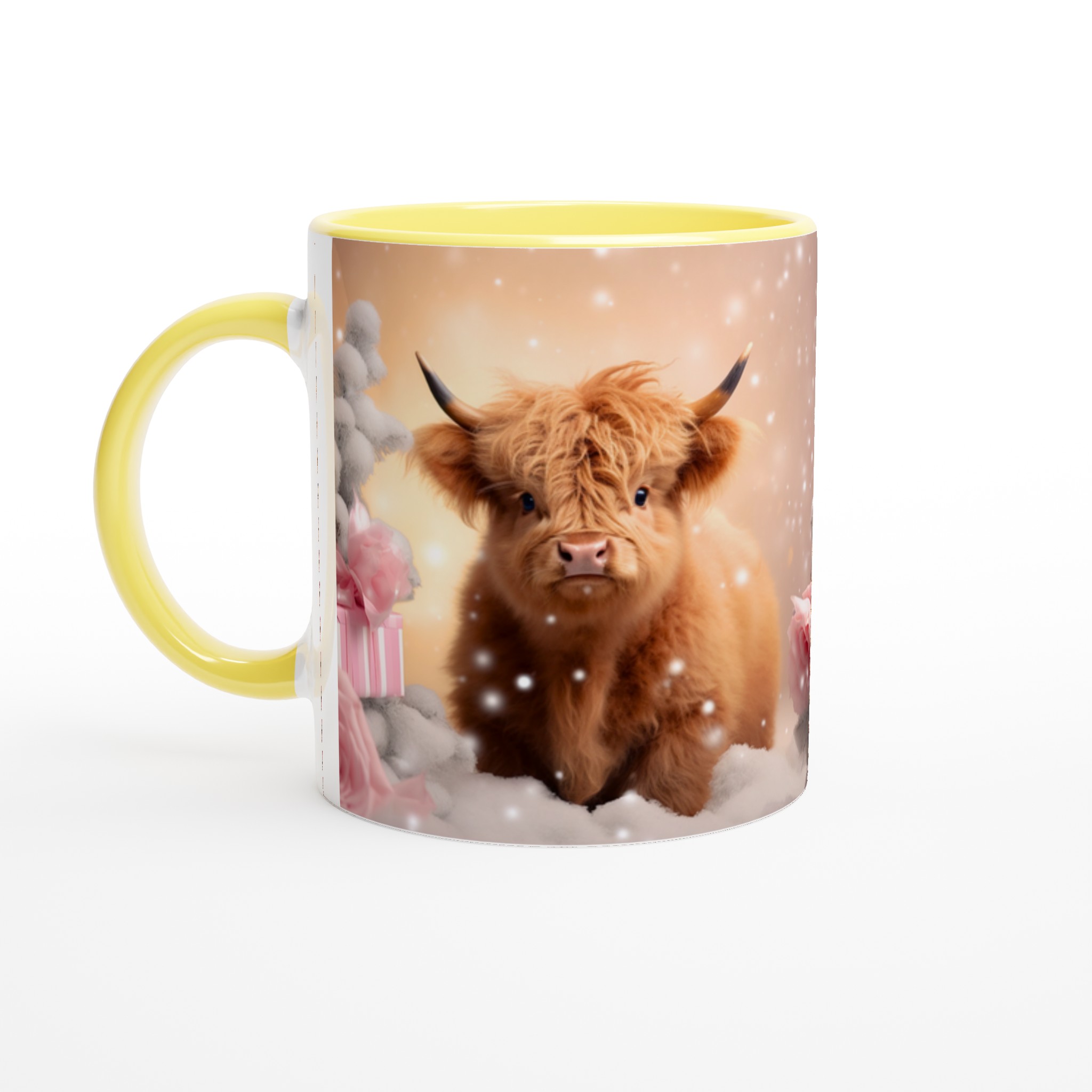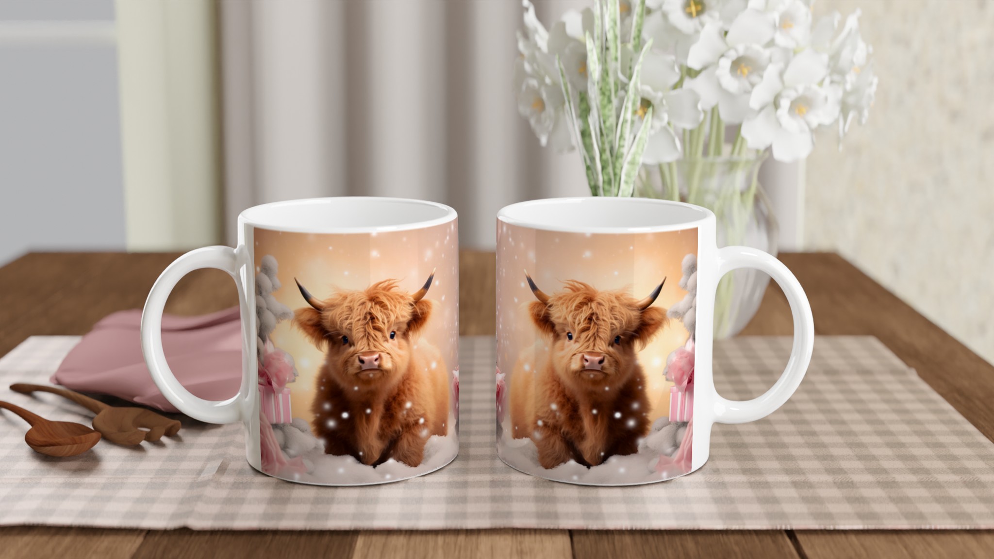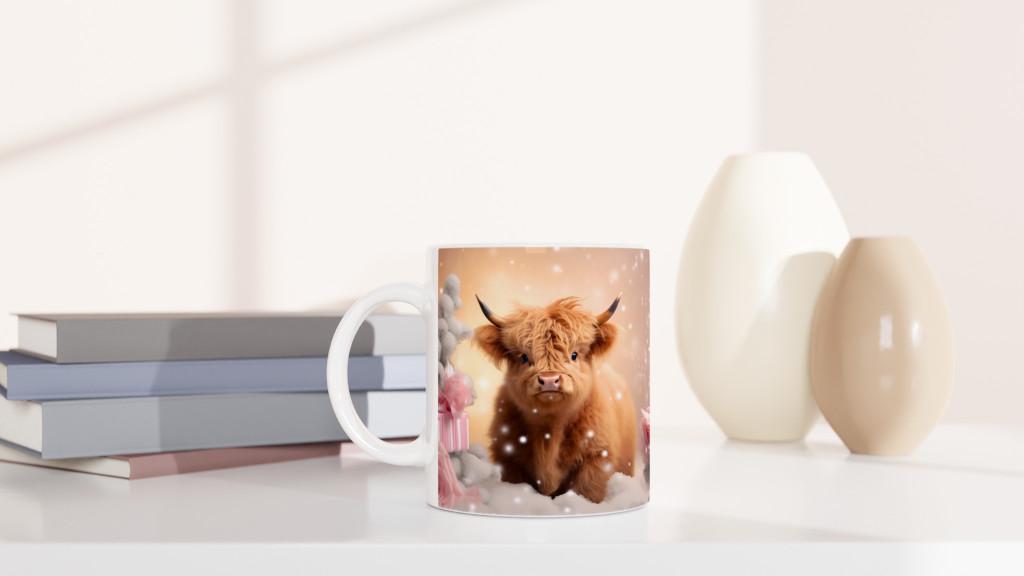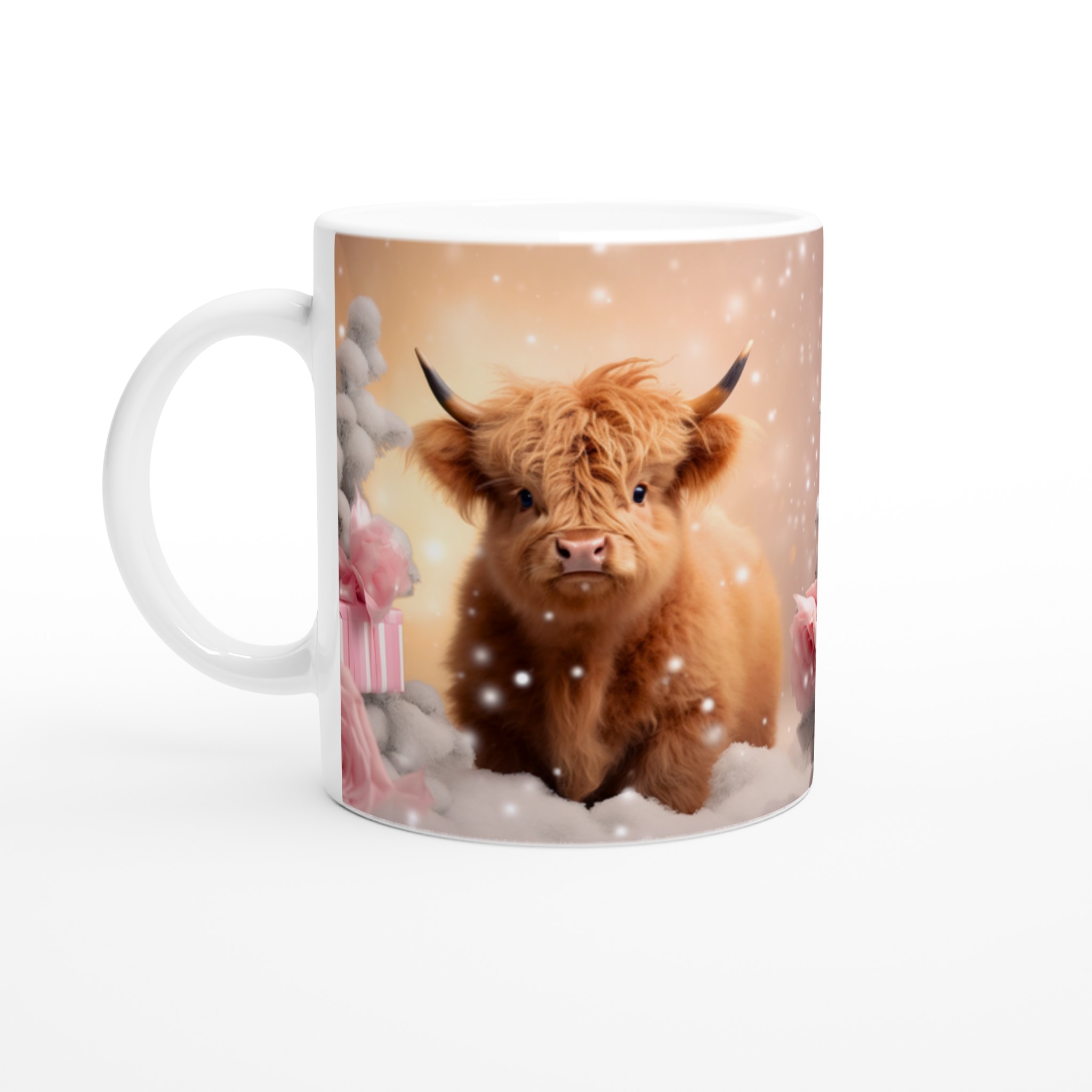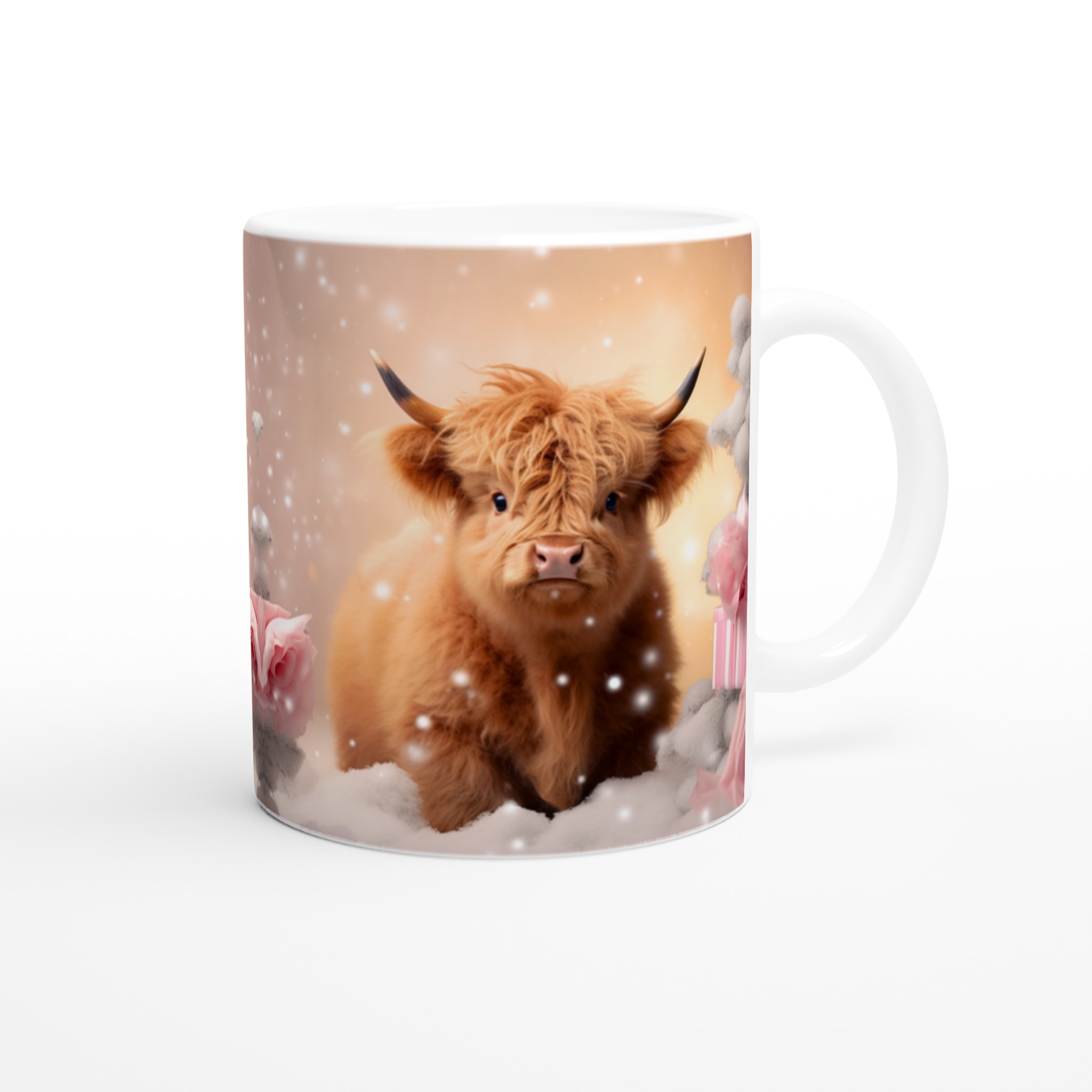 Föreställ dig att krypa upp i soffan med en varm dryck i handen, omgiven av en lugn vinterkänsla. Den här stilrena keramiska muggen, prydd med en bedårande vinterkalv i ett drömlikt snölandskap, blir snabbt en vardagsfavorit. Perfekt för morgonkaffet, kvällens varma choklad eller när du bara vill njuta av en kopp te medan snöflingorna singlar ner utanför fönstret. Den blanka vita ytan gör att trycken framhävs med klara och levande färger, som håller sig fina även efter många turer i mikron och diskmaskinen.