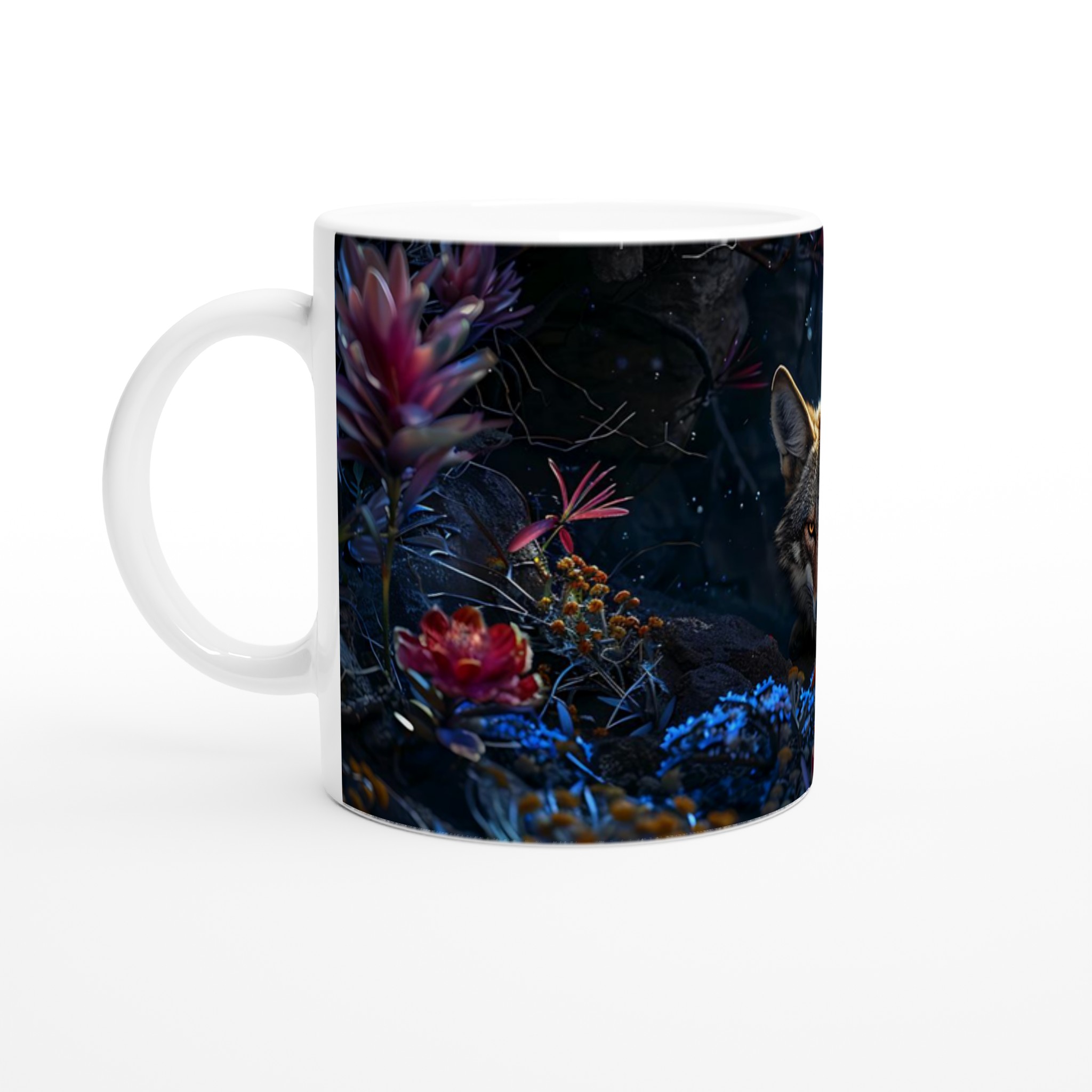 Inspirerad av nattens magi och skogens djupa hemligheter, visar denna mugg en majestätisk varg med glödande ögon, omgiven av lysande fantasiblommor i en drömlik skog. Den fångar den mystiska skönheten hos vilda djur och den förtrollande lugnet i en fantasyvärld, vilket gör den till den perfekta följeslagaren för dina stunder av reflektion eller som en inspirerande present till den som älskar natur och mystik.