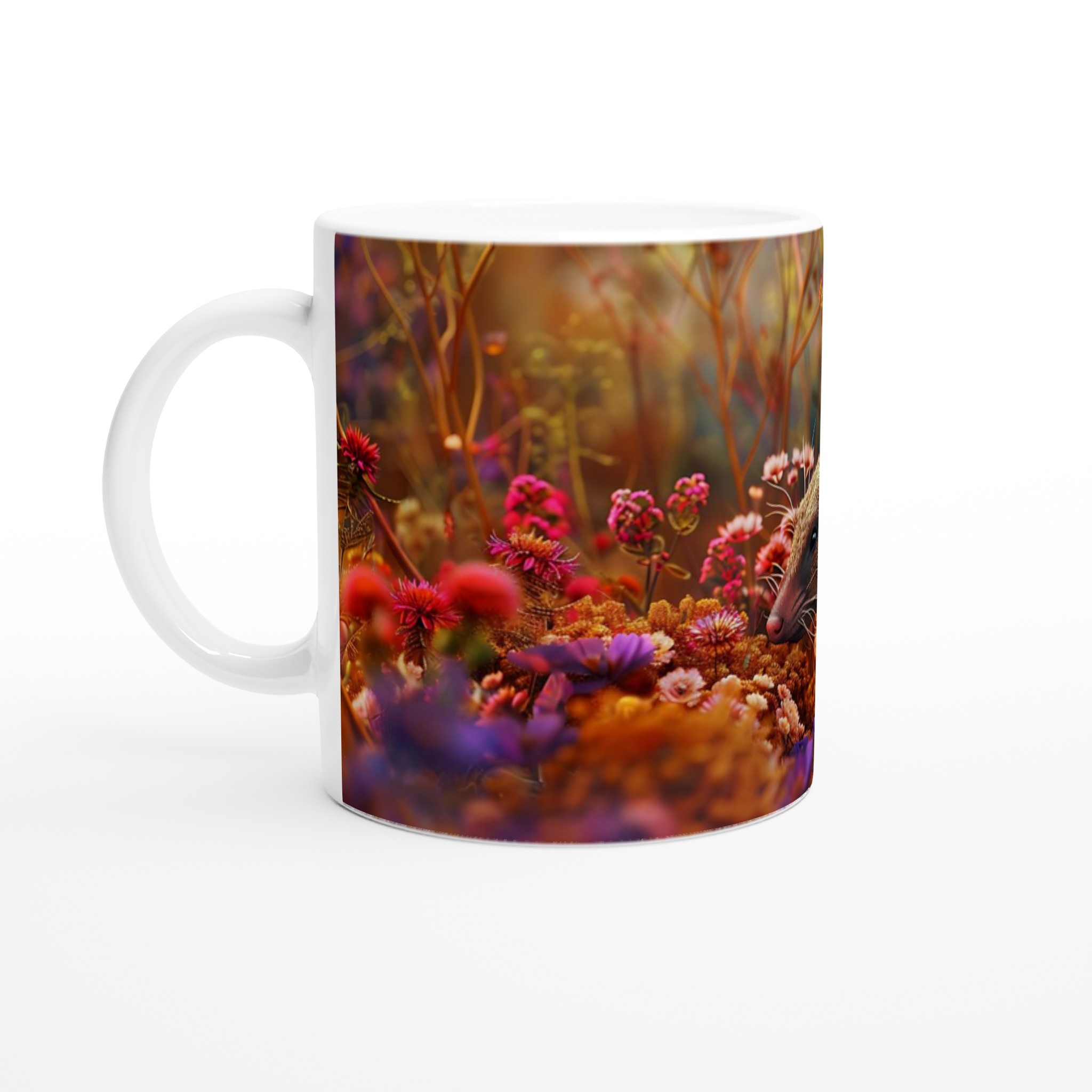 Inspirerad av den förtrollande skönheten hos en mystisk blomsteräng, där ett handritat djur tittar fram bland frodiga, levande färger, är denna mugg mer än bara en kopp – den är en konstnärlig upplevelse. De varma nyanserna och detaljerade illustrationerna skapar en lugn och magisk känsla som förgyller varje sip. Den blanka ytan ger ett skarpt och levande tryck som verkligen sticker ut, oavsett om det är en personlig design, ett roligt citat eller en present till någon du tycker om.