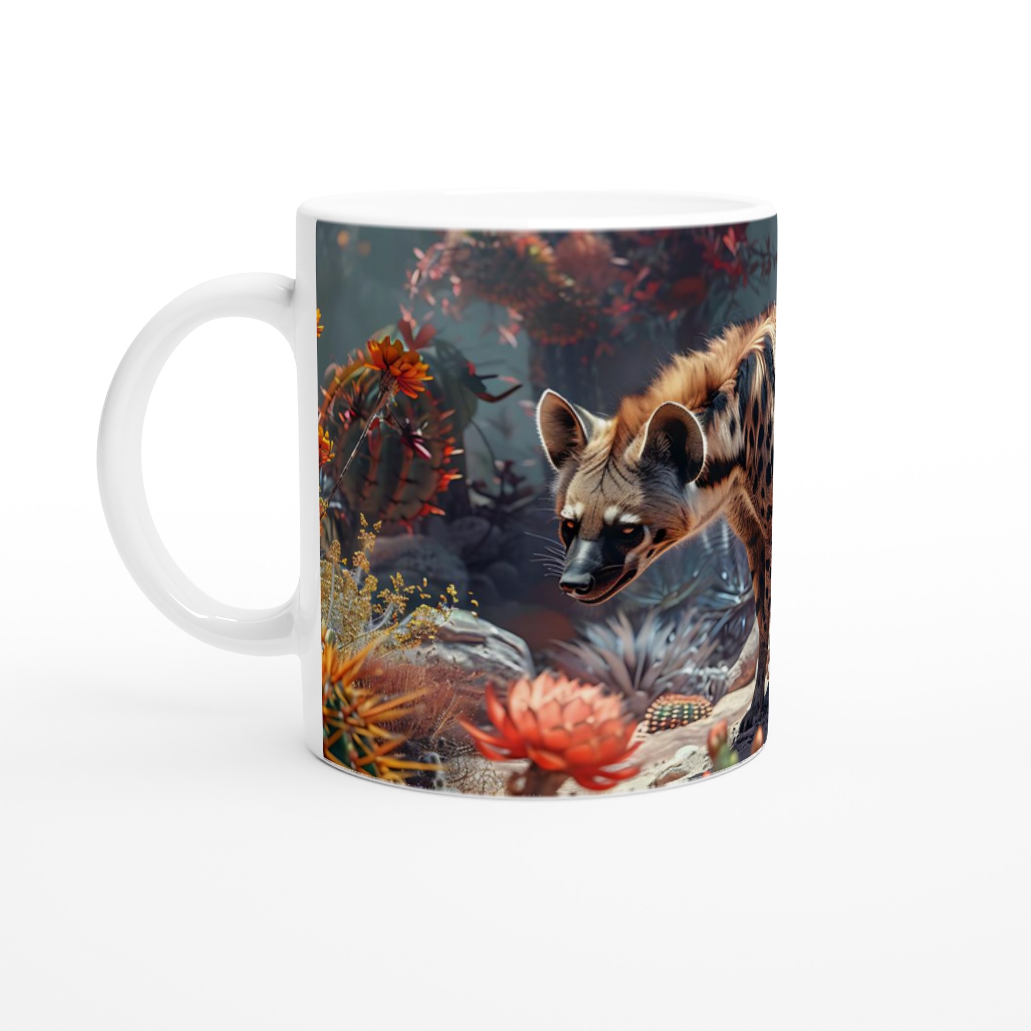 Väck dina sinnen med vår Mystisk Hyena Mugg, en unikt designad keramikmugg som fångar den gåtfulla skönheten hos en hyena omgiven av en levande, fantasifull ökenflora. Dess rika färgpalett av varma apelsiner, djupa terrakotta och dämpade blågröna toner skapar en drömsk atmosfär som förvandlar varje sipp till en upptäcktsfärd. Välj bland en palett av sju distinkta keramiska färger – från klassisk vit och elegant svart till energisk gul, lugn blå, lekfull rosa, naturlig grön eller passionerad röd – för att perfekt matcha din stil eller överraska någon speciell.