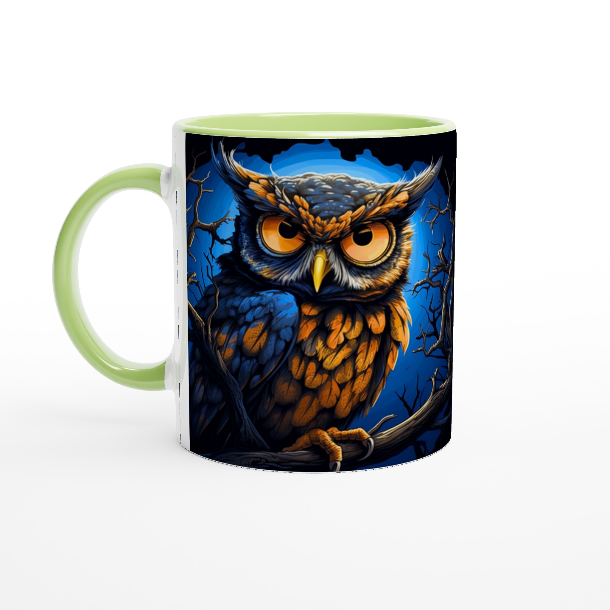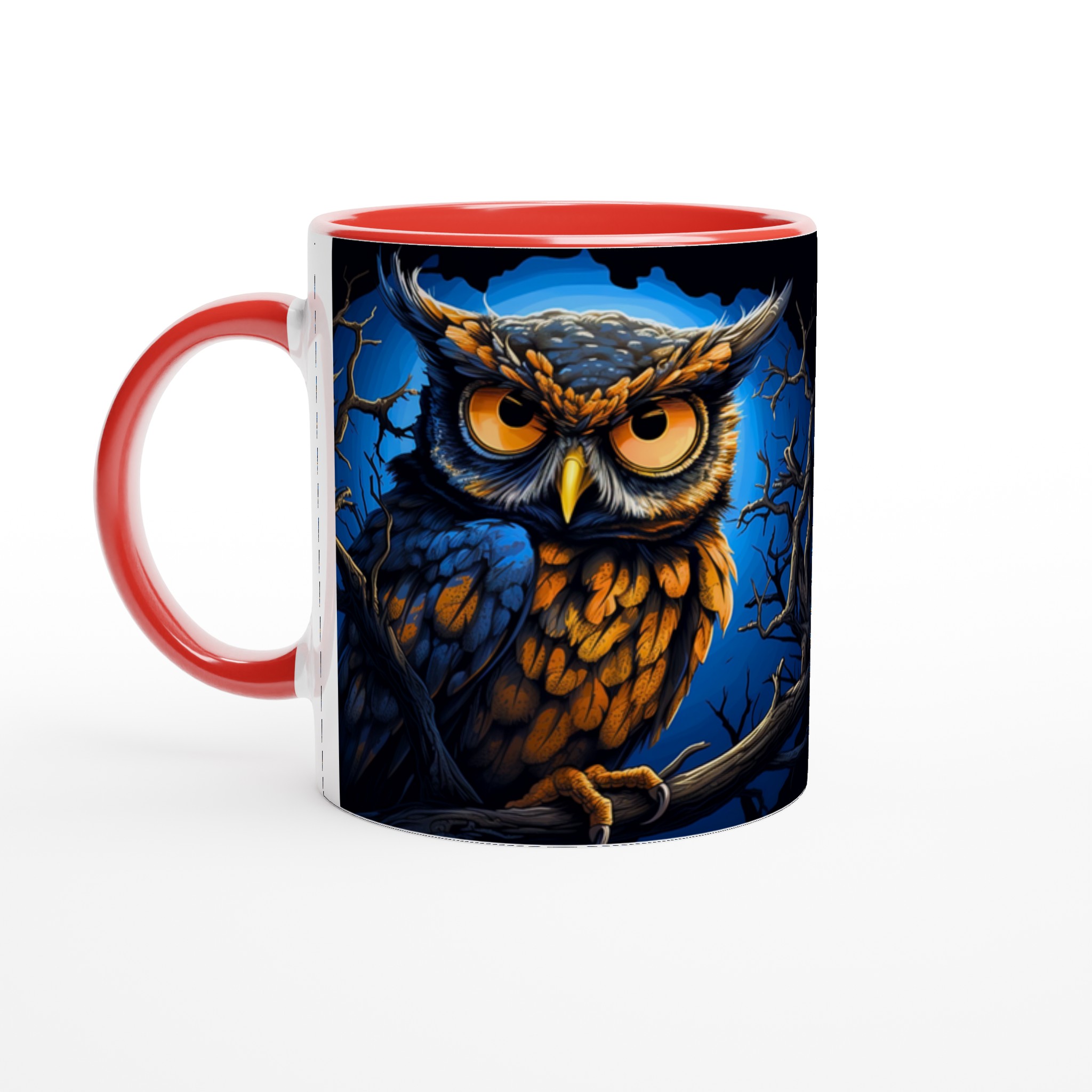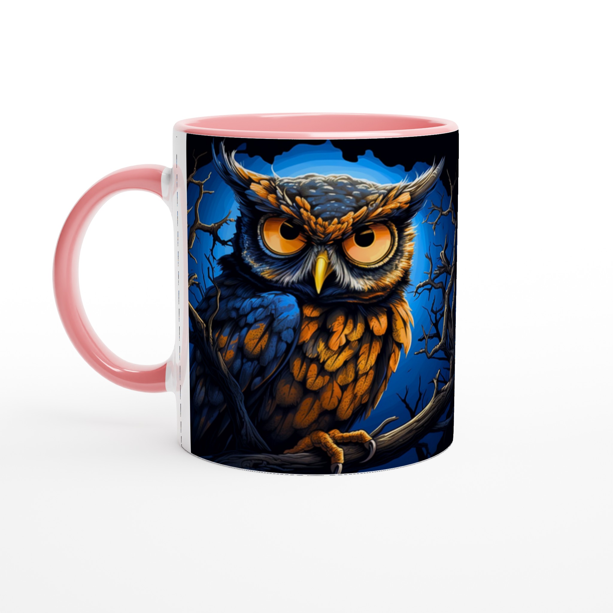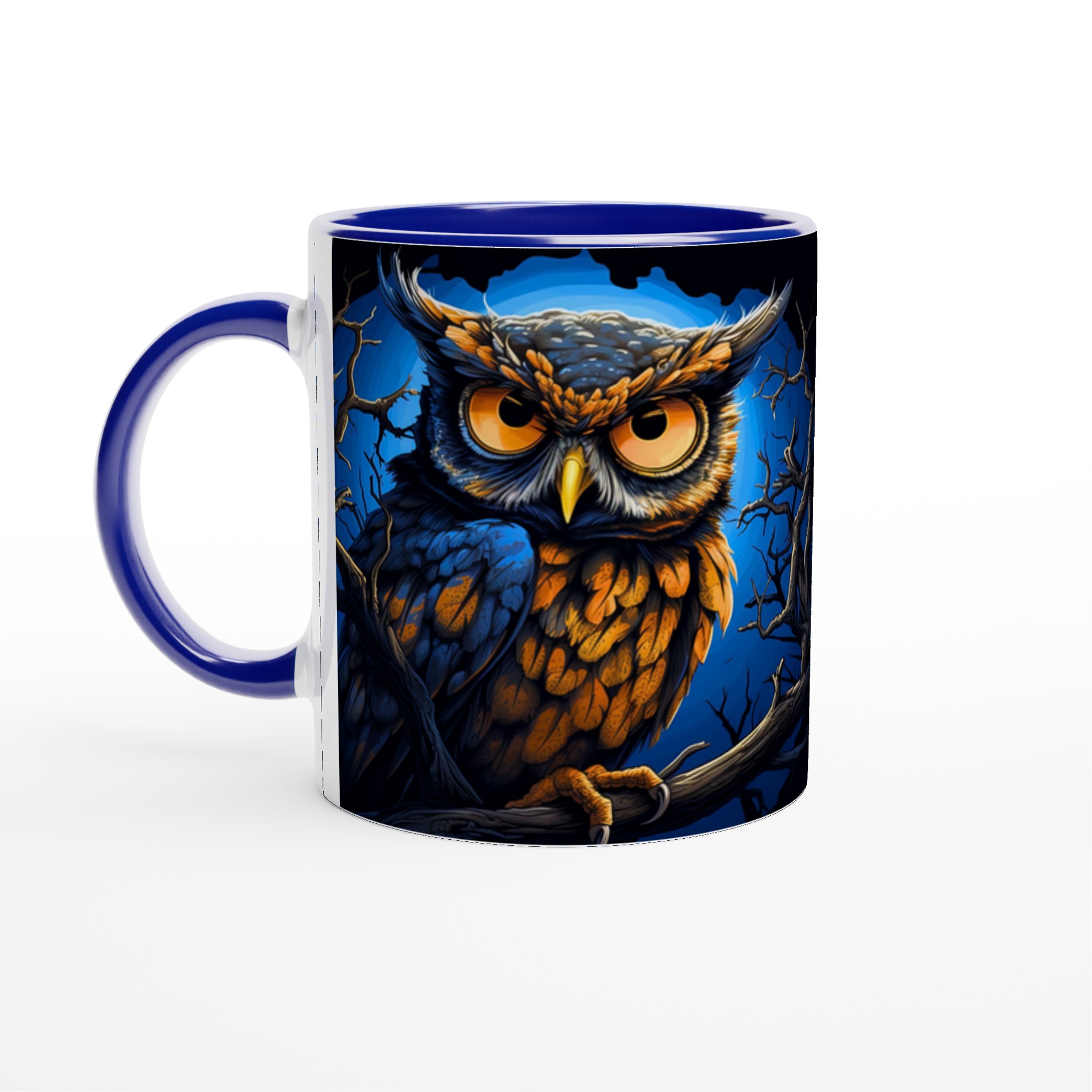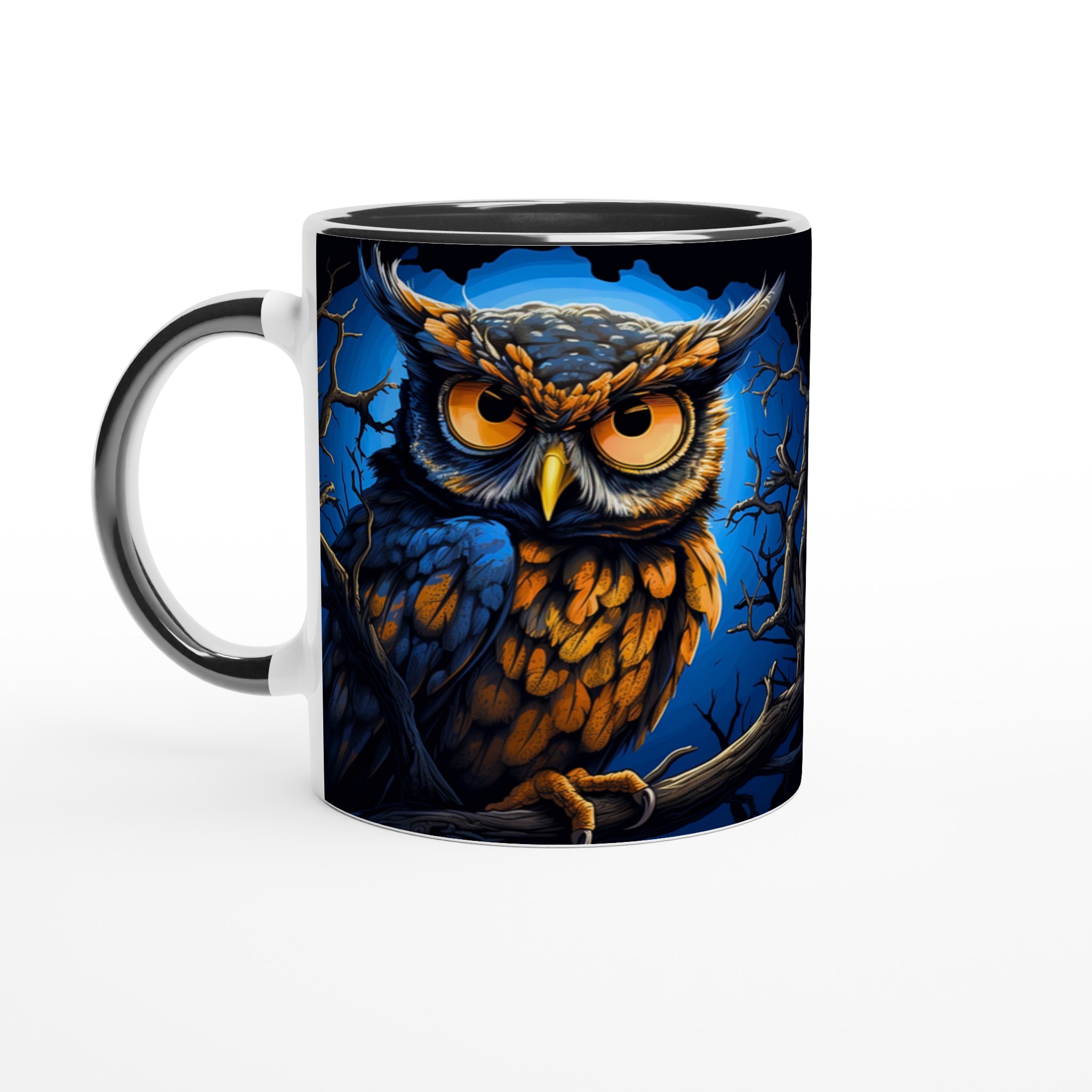 Fånga mystiken med vår unika keramiska mugg, prydd med en fängslande uggla vars intensiva orange ögon lyser upp mot en djupblå bakgrund. Denna mugg är inte bara en behållare för din favoritdryck, utan också ett konstverk som för tankarna till nordiska nätter och sagolika skogar.