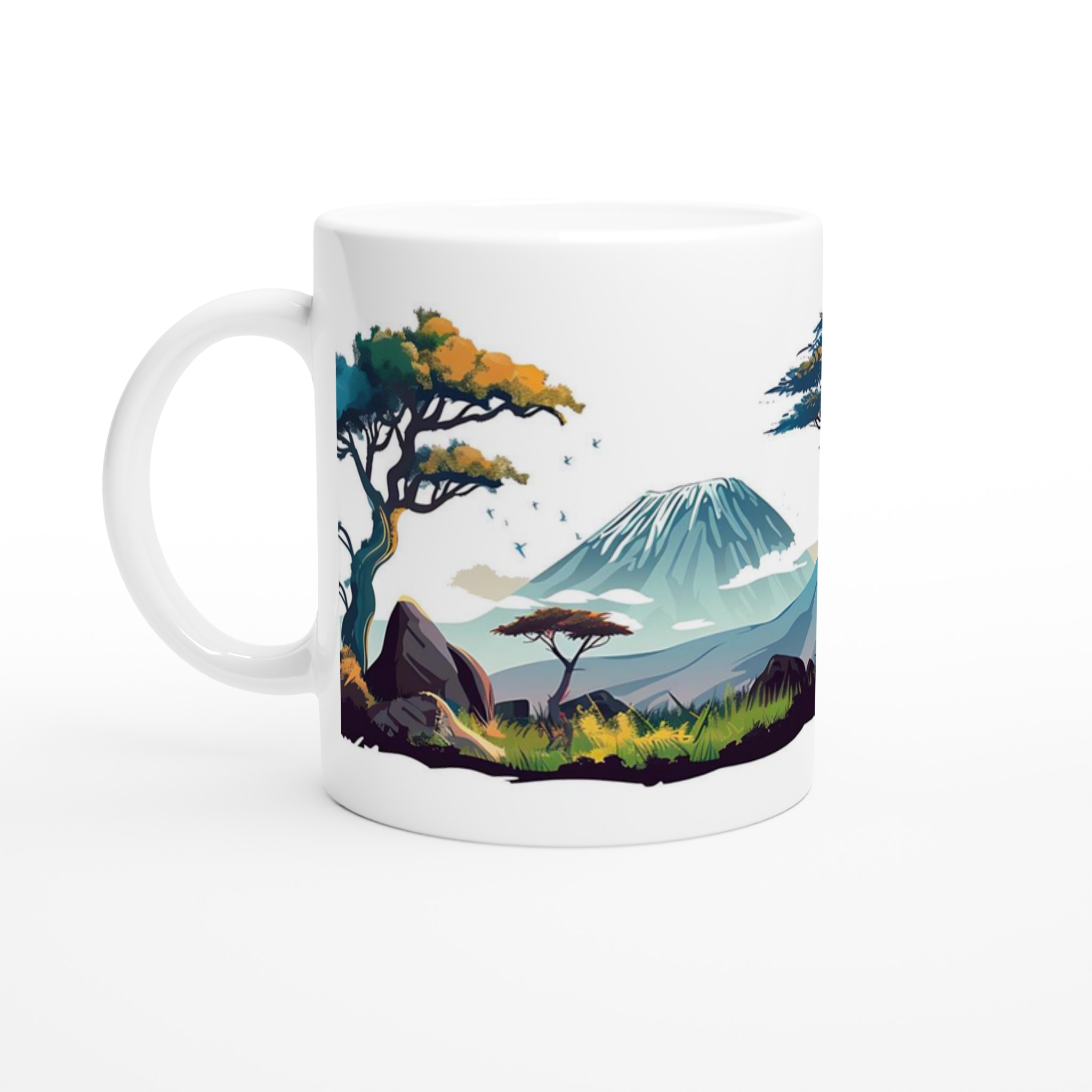 Inspirerad av lugnet från majestätiska berg och den varma glöden från en nedgående sol, fångar denna mugg essensen av en fridfull naturupplevelse. Den blanka vita ytan ger ett skarpt och levande tryck som verkligen sticker ut, oavsett om det är en personlig design, ett roligt citat eller en present till någon du tycker om.