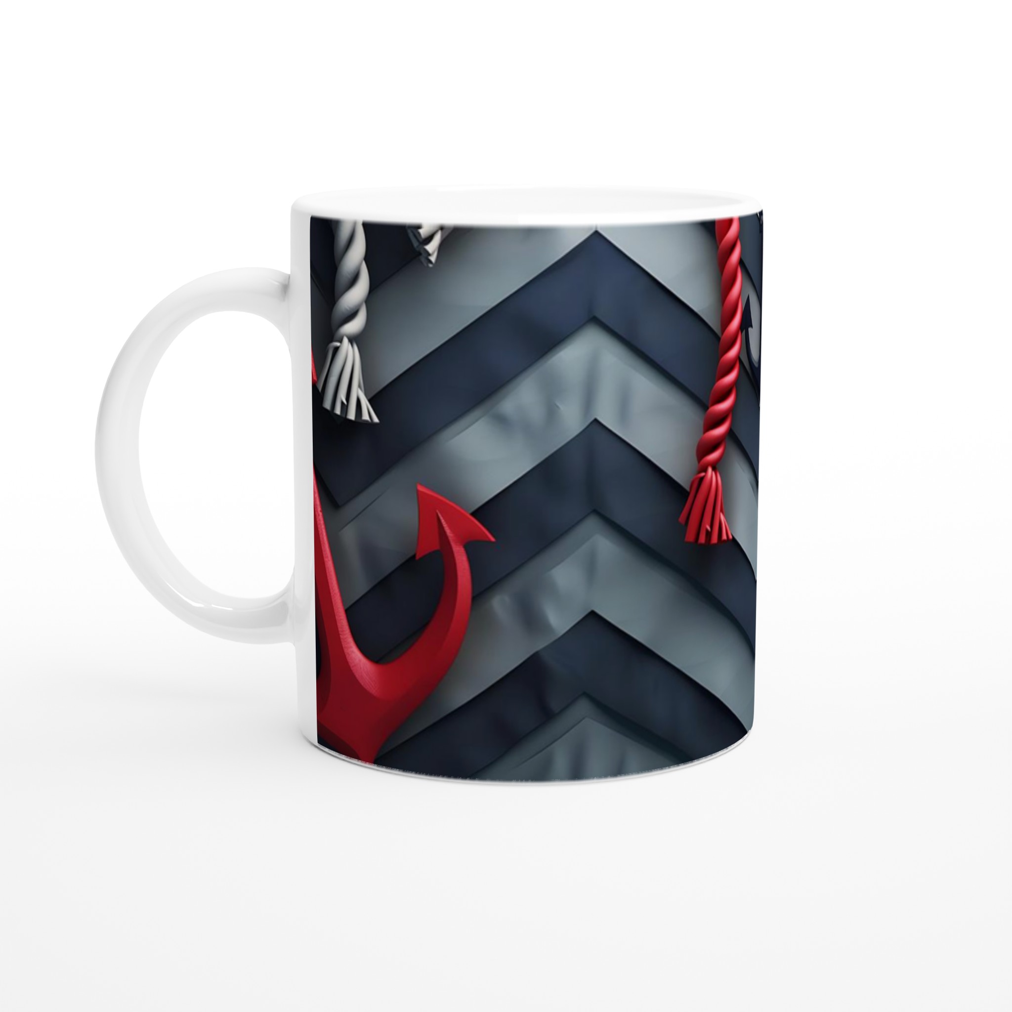 Tillverkad med en tidlös nautisk charm, är denna mugg mer än bara en kopp – den är en hyllning till äventyr och tidlös stil. Inspirerad av havets djup och livfulla kontraster, kommer din design att sticka ut med en modern touch. Välj bland en palett av sju fantastiska keramiska färger – från klassiskt vitt, gult, rosa, grönt, rött, svart till djupt blått – för att skapa din unika nautiska känsla.