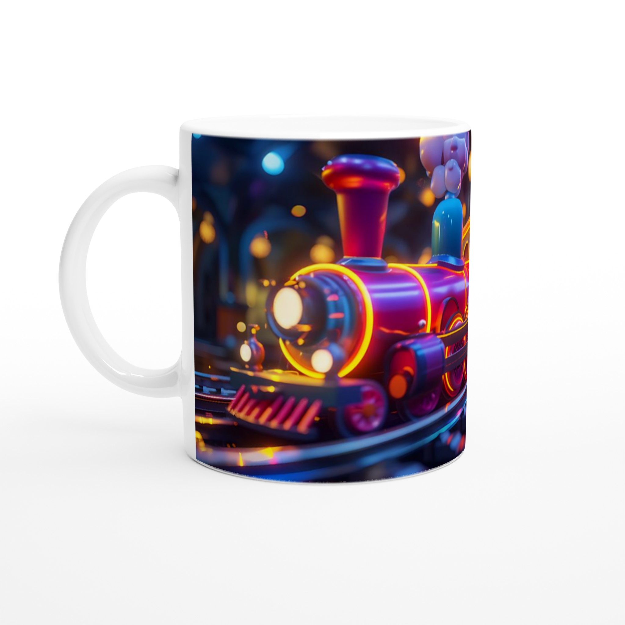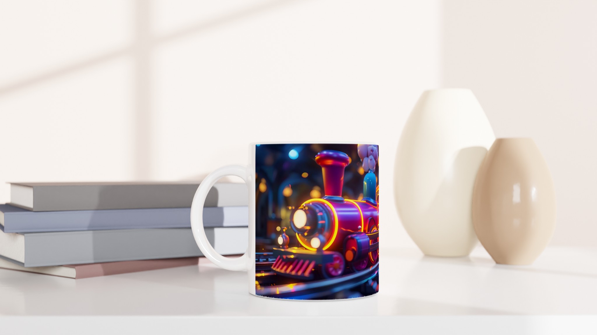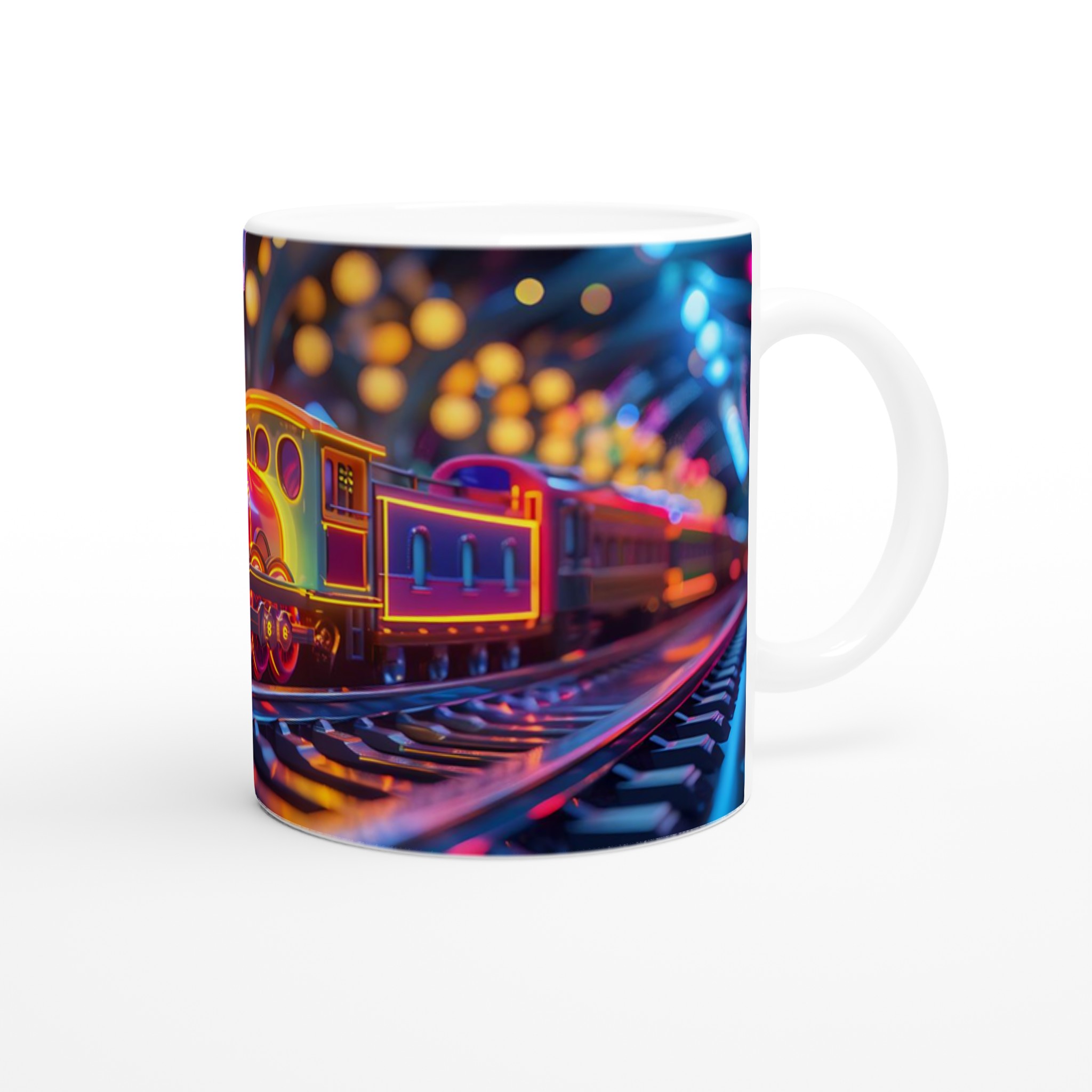 Fånga den magiska känslan av en neonupplyst fantasivärld med vår ”Neon Dream Express” keramiska mugg. Denna stilrena mugg blir snabbt en vardagsfavorit, perfekt för att starta morgonen med kaffe, mysa med varm choklad på kvällen, eller njuta av en lugn te-stund. Den blanka vita ytan är designad för att framhäva tryck med klara och levande färger, precis som de strålande nyanserna från en upplyst tågbana, och de håller sig fina även efter många turer i mikron och diskmaskinen.