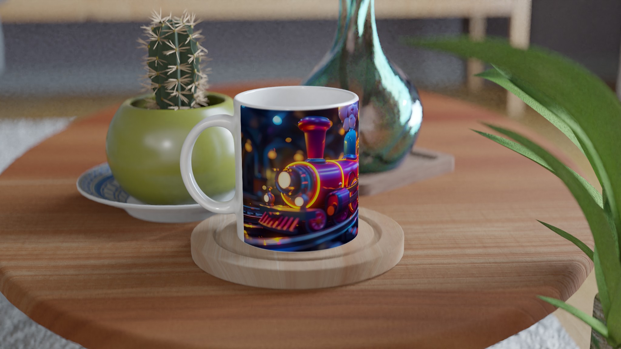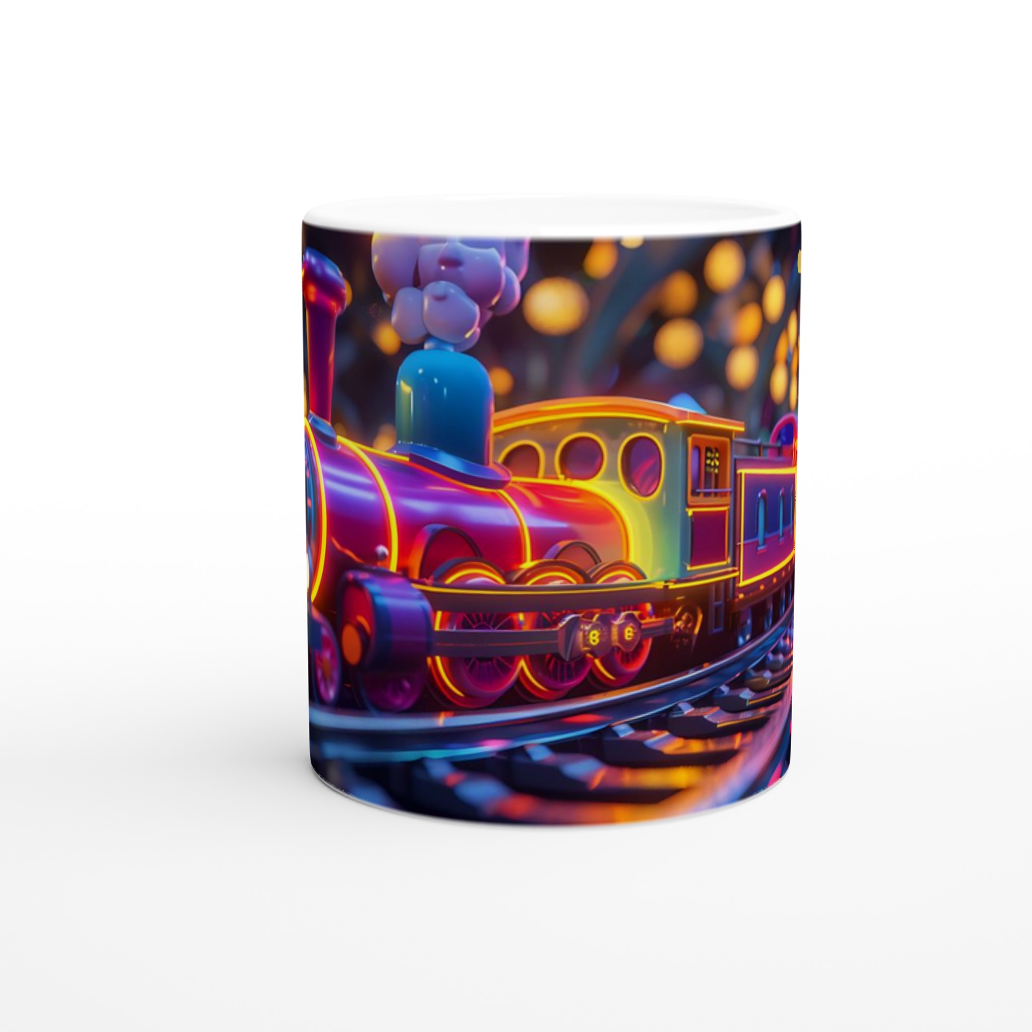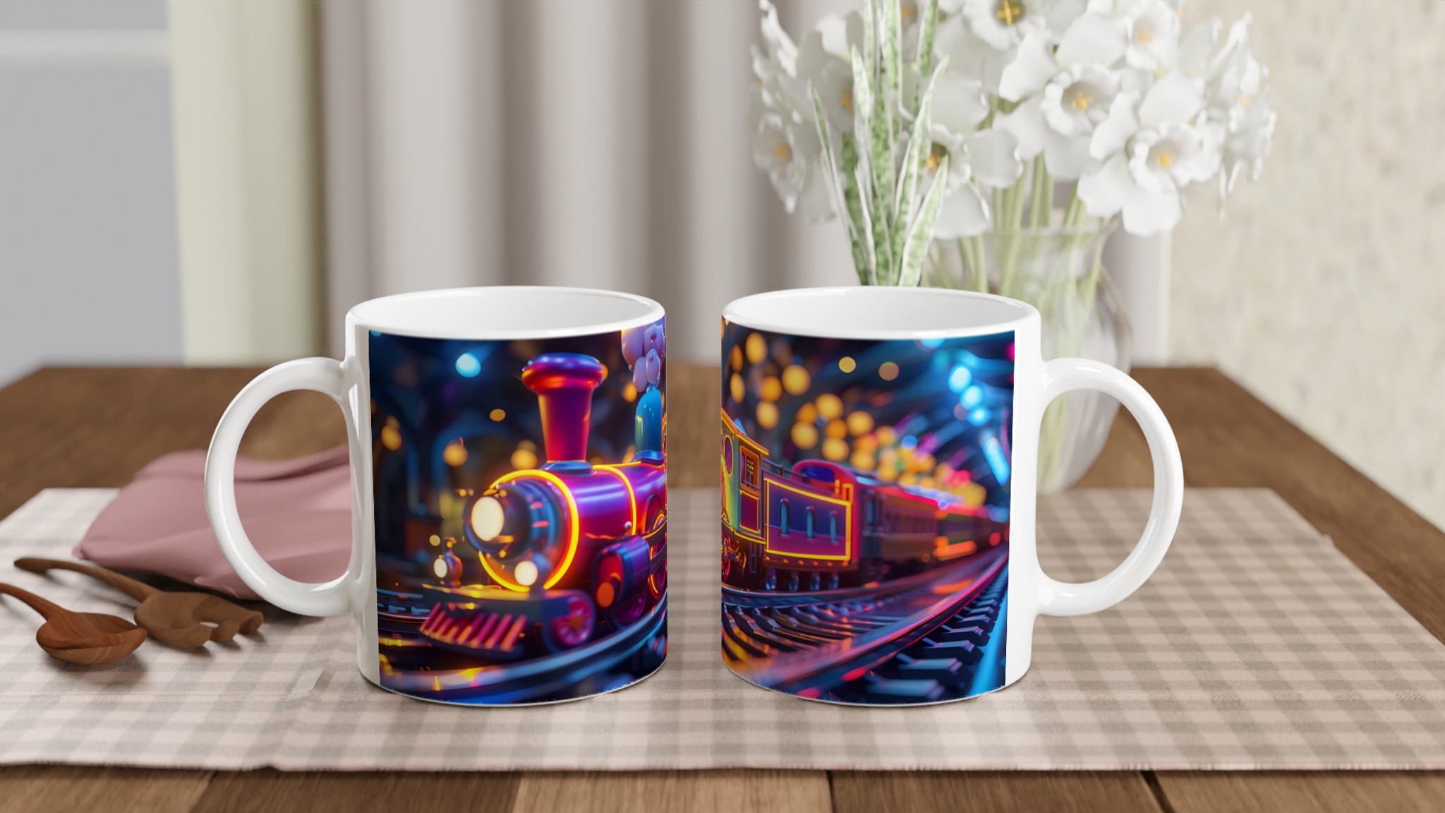 Fånga den magiska känslan av en neonupplyst fantasivärld med vår ”Neon Dream Express” keramiska mugg. Denna stilrena mugg blir snabbt en vardagsfavorit, perfekt för att starta morgonen med kaffe, mysa med varm choklad på kvällen, eller njuta av en lugn te-stund. Den blanka vita ytan är designad för att framhäva tryck med klara och levande färger, precis som de strålande nyanserna från en upplyst tågbana, och de håller sig fina även efter många turer i mikron och diskmaskinen.