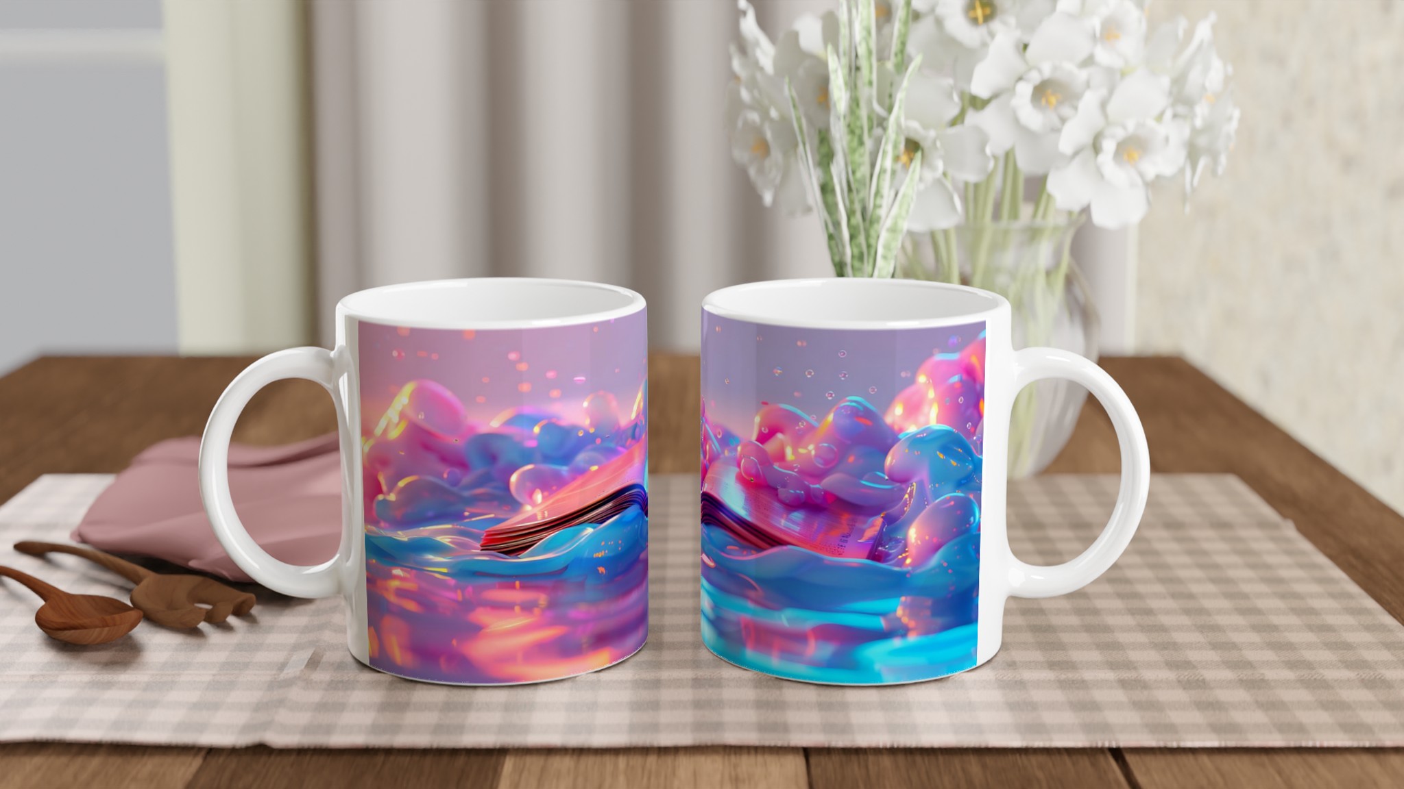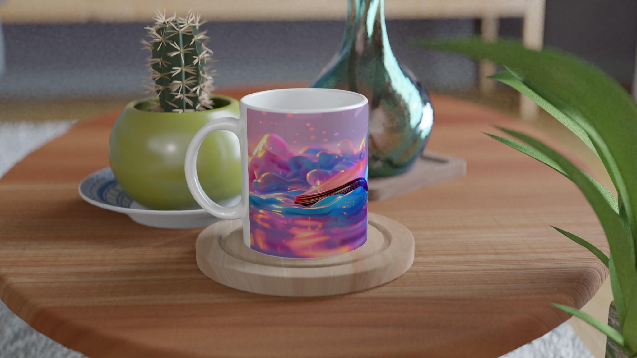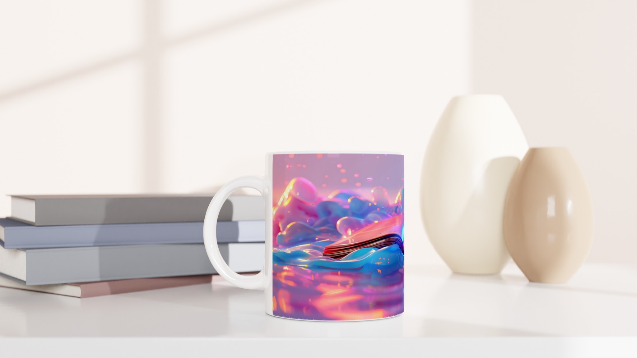 Stig in i en värld av drömska färger med vår Neon Dream Keramiska Mugg! Inspirerad av den förtrollande fusionen av rosa, blått och persika, är denna mugg mer än bara en dryckesbehållare – den är ett konstverk som lyser upp din dag. Perfekt för morgonkaffet, kvällens varma choklad eller när du bara vill njuta av en kopp te och omfamna den mjuka, futuristiska energin.