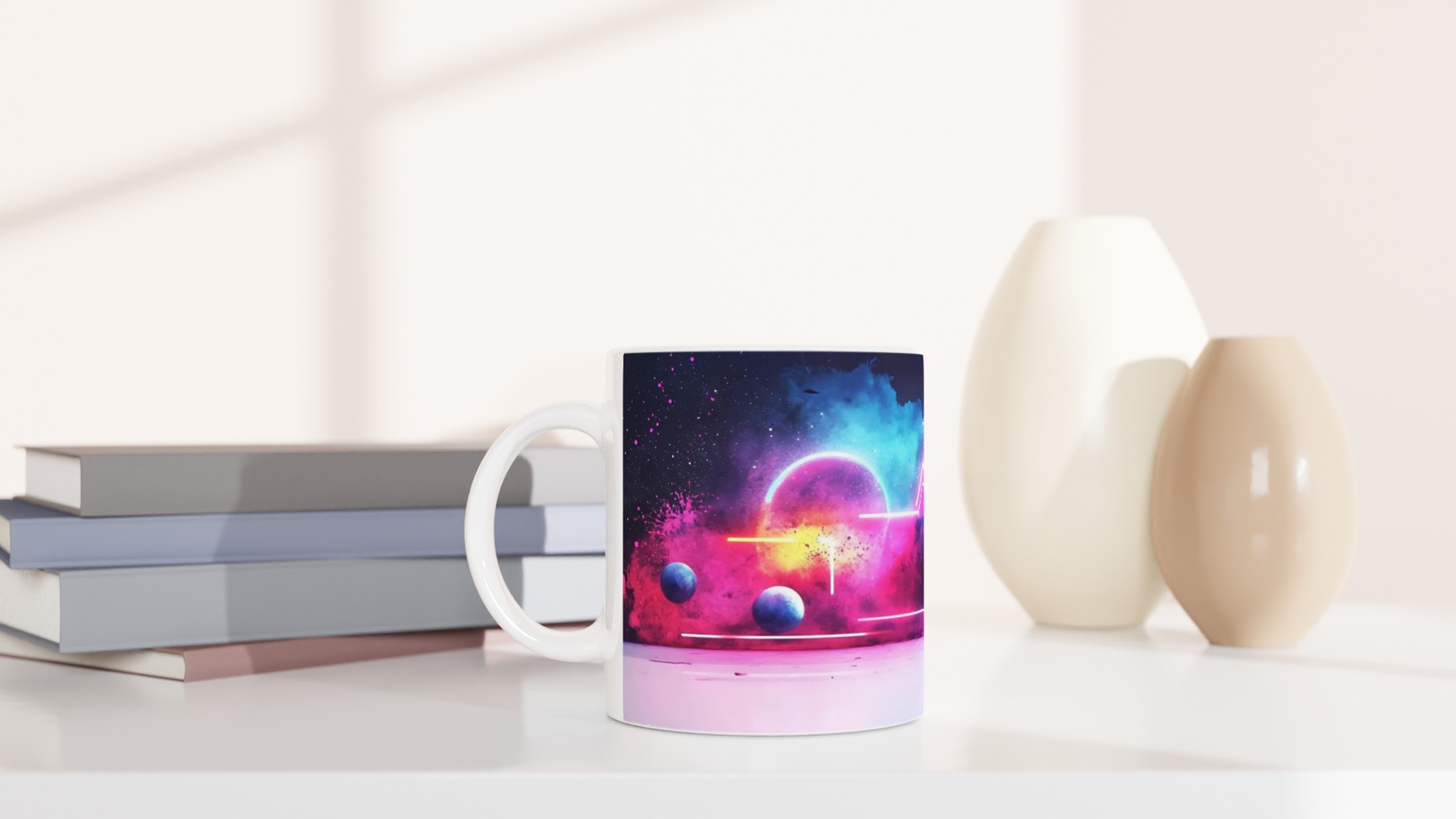 Förhöj din dryckesupplevelse och låt denna Neon Galaxy keramiska mugg bli din nya vardagsfavorit. Välj din färg och beställ din egen kosmiska följeslagare idag!