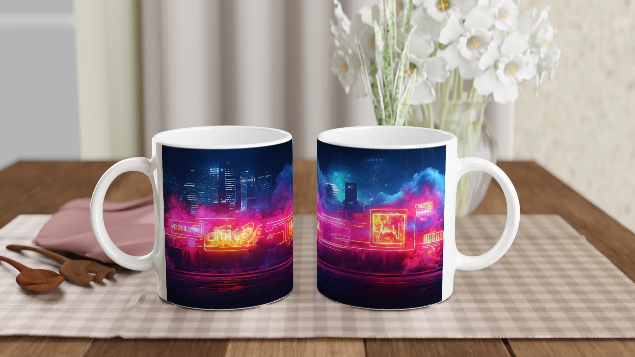 Förhöj din vardag med en mugg som lyser upp – välj din färg och beställ din Cyberpunk Night City Mugg idag!