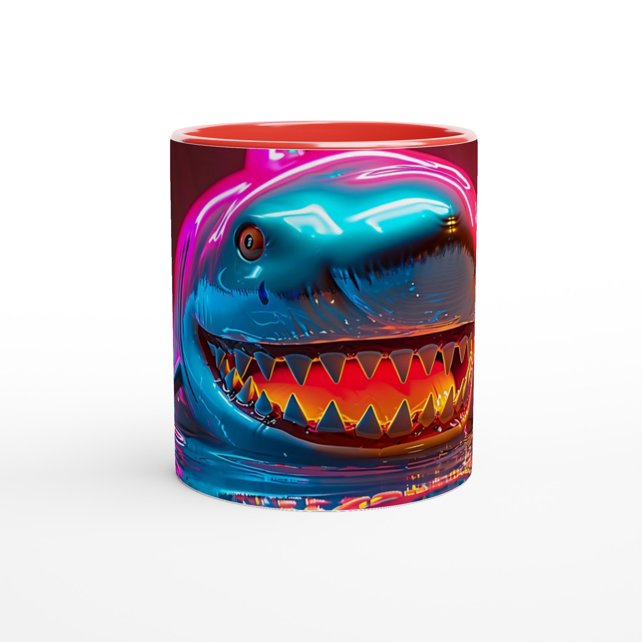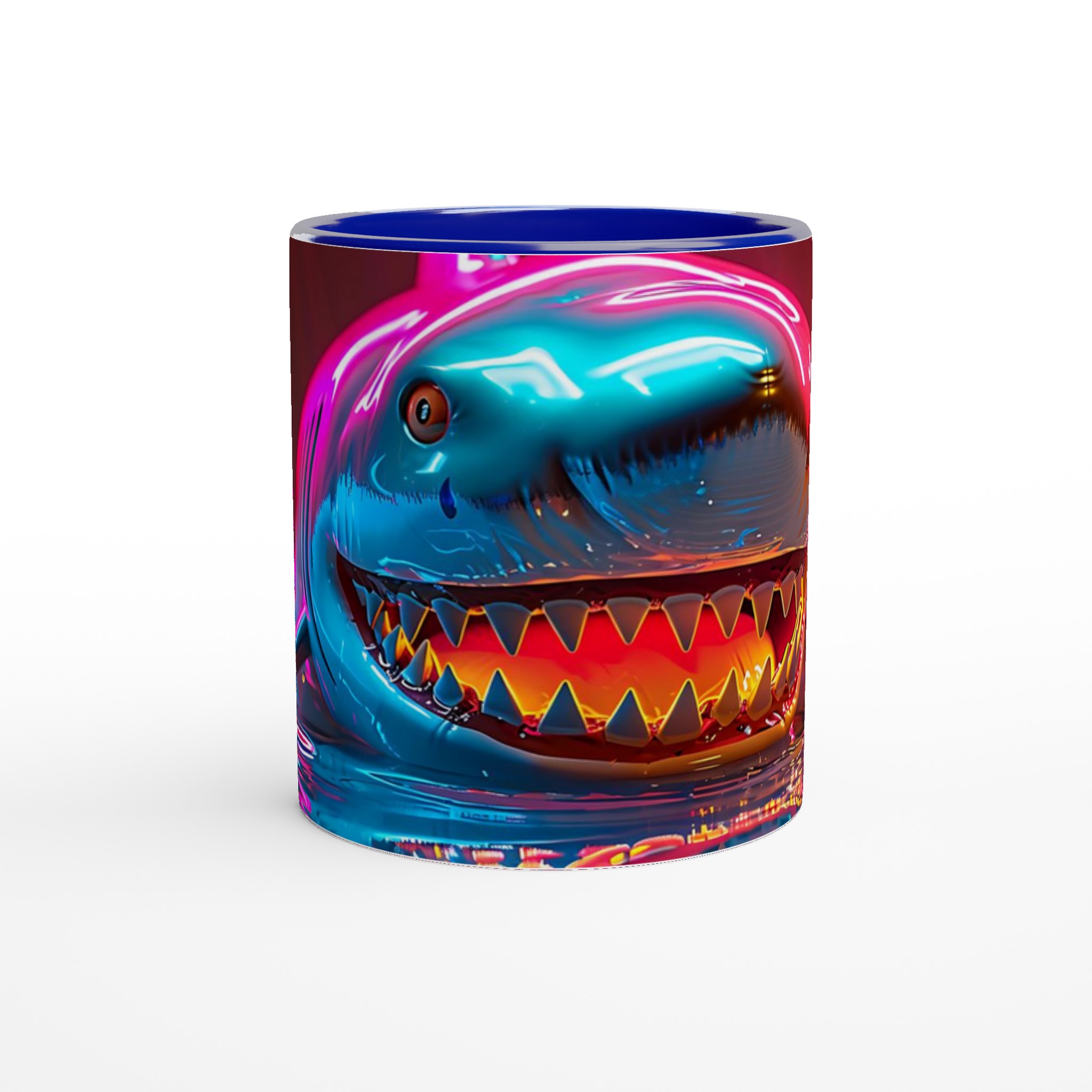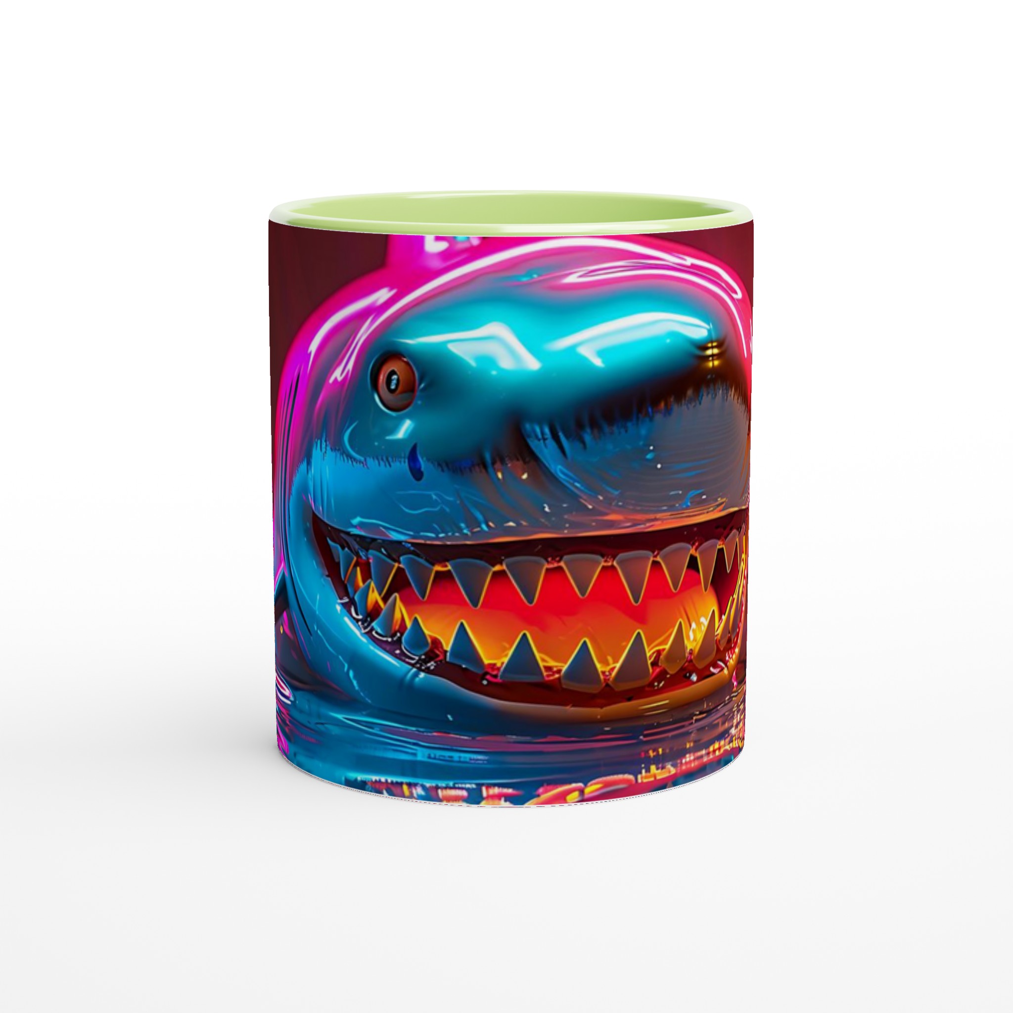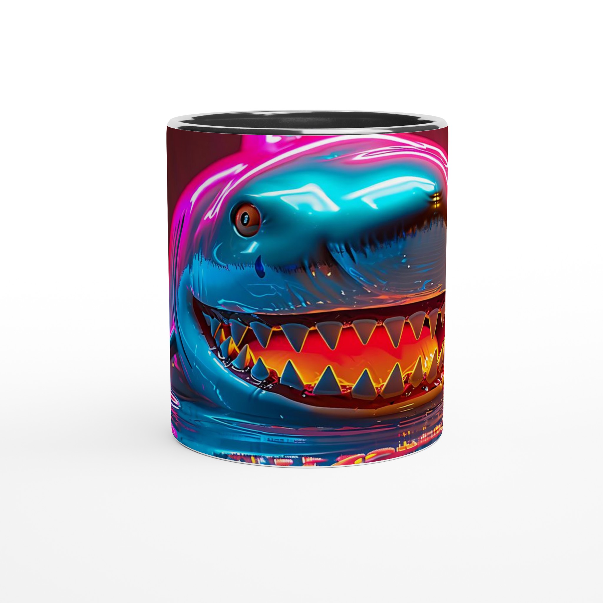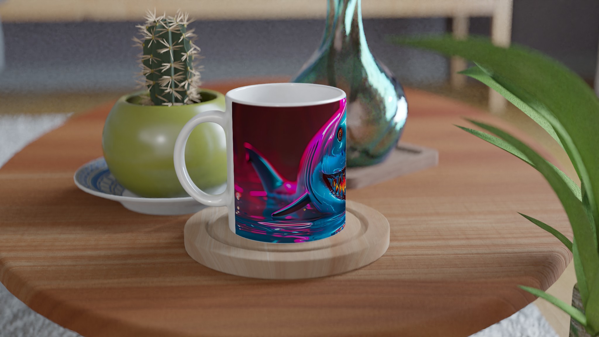 Den blanka vita ytan låter det djärva neonhaj-trycket framträda klart och färgstarkt, vilket gör muggen till en riktig favorit i vardagen. Med en volym på 11 oz (ca 3,25 dl) är den lagom stor för både jobb och hemmabruk. Vår höga kvalitet garanterar att trycket behåller sin lyster även efter otaliga omgångar i både mikrovågsugn och diskmaskin.