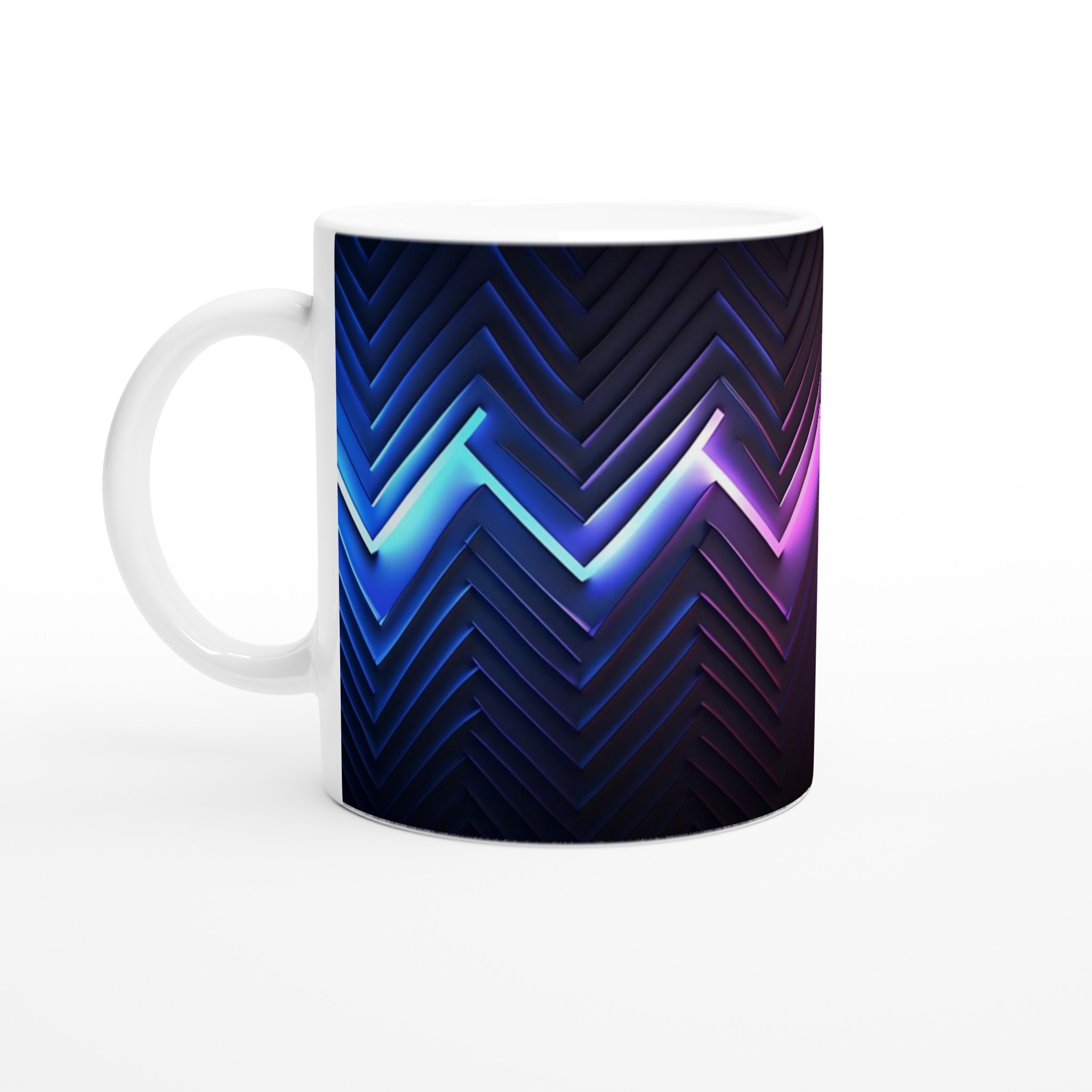 Inspirerad av dynamiska neonvågor som pulserar med energi från svalt blått till glödande rött, ger denna mugg en modern och färgstark touch till din dag. Den blanka vita ytan ger ett skarpt och levande tryck som verkligen sticker ut, oavsett om det är en personlig design, ett roligt citat eller en present till någon du tycker om.