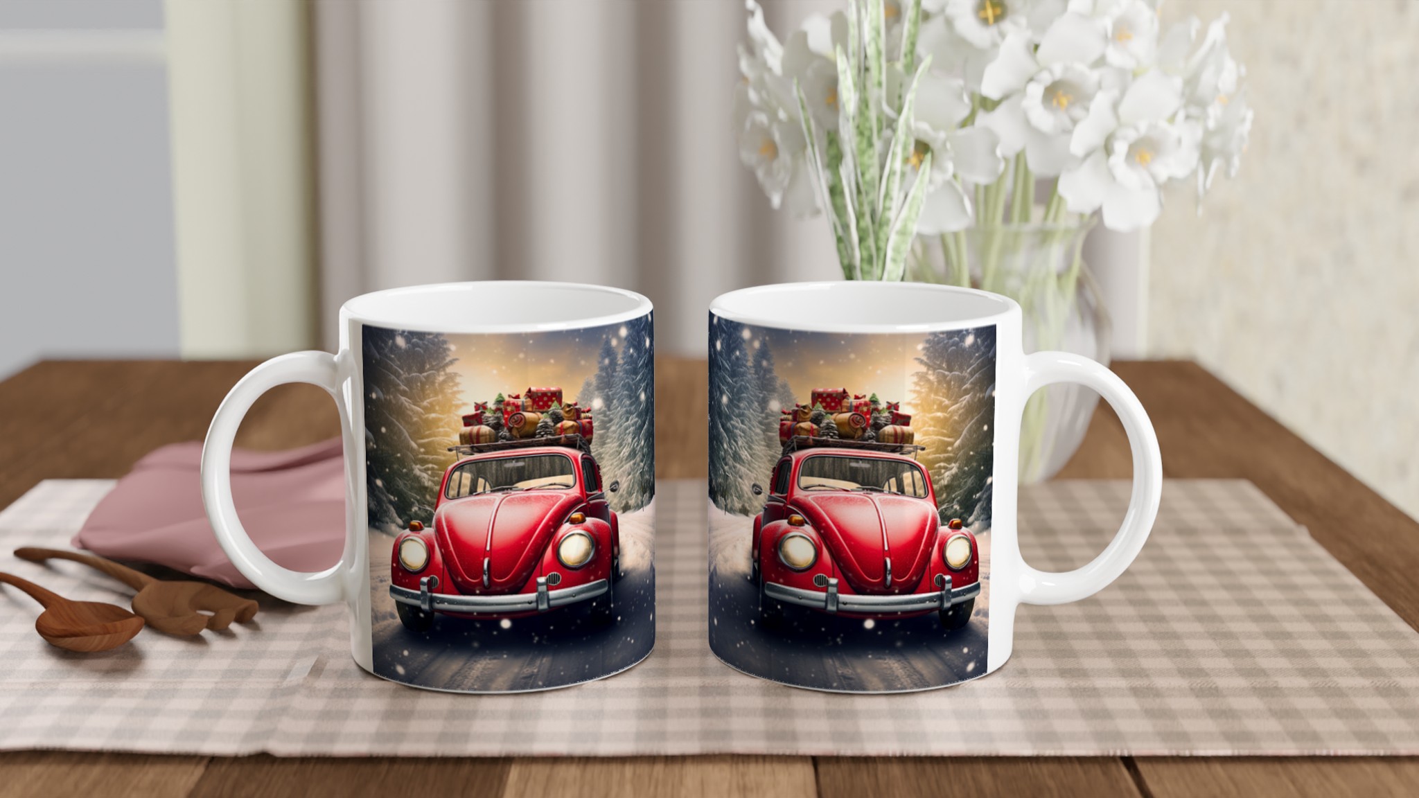 Sätt guldkant på mysiga stunder med vår charmiga keramiska mugg, som fångar den varma känslan av en röd ikonisk bubbla fylld med julklappar på väg genom ett snöigt vinterlandskap. Den här stilrena muggen blir snabbt en vardagsfavorit och en perfekt påminnelse om julens magi och nostalgi. Perfekt för morgonkaffet, kvällens varma choklad eller när du bara vill njuta av en kopp te i en riktigt stämningsfull atmosfär.