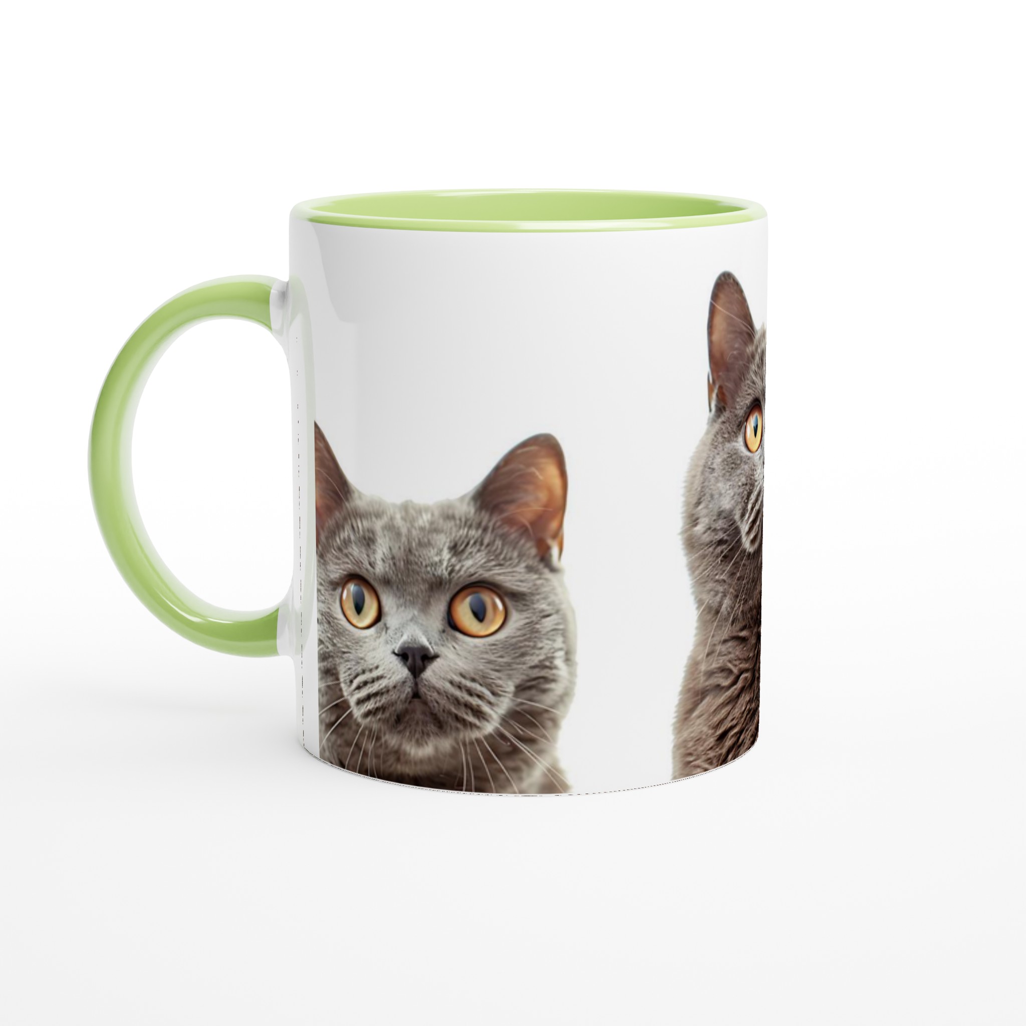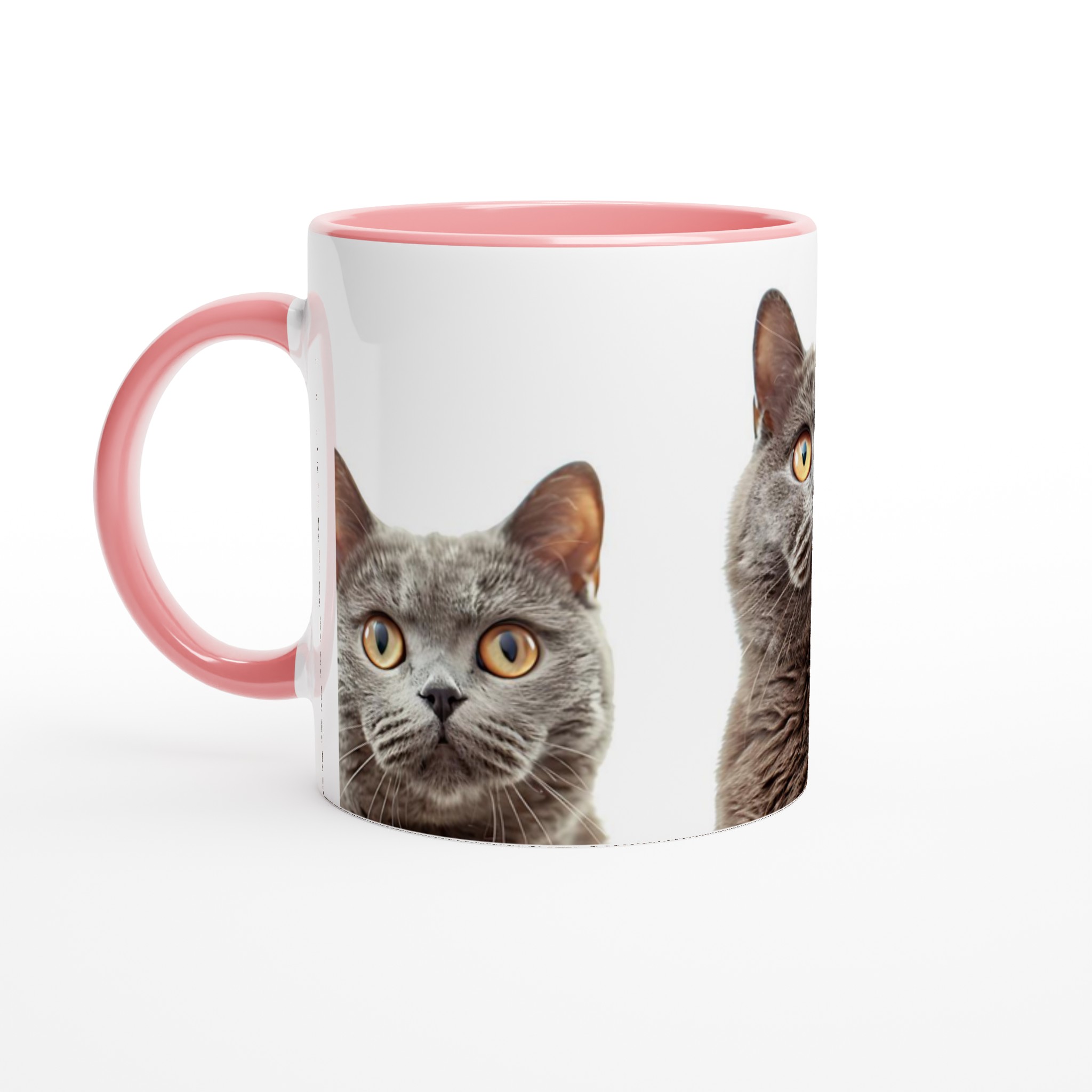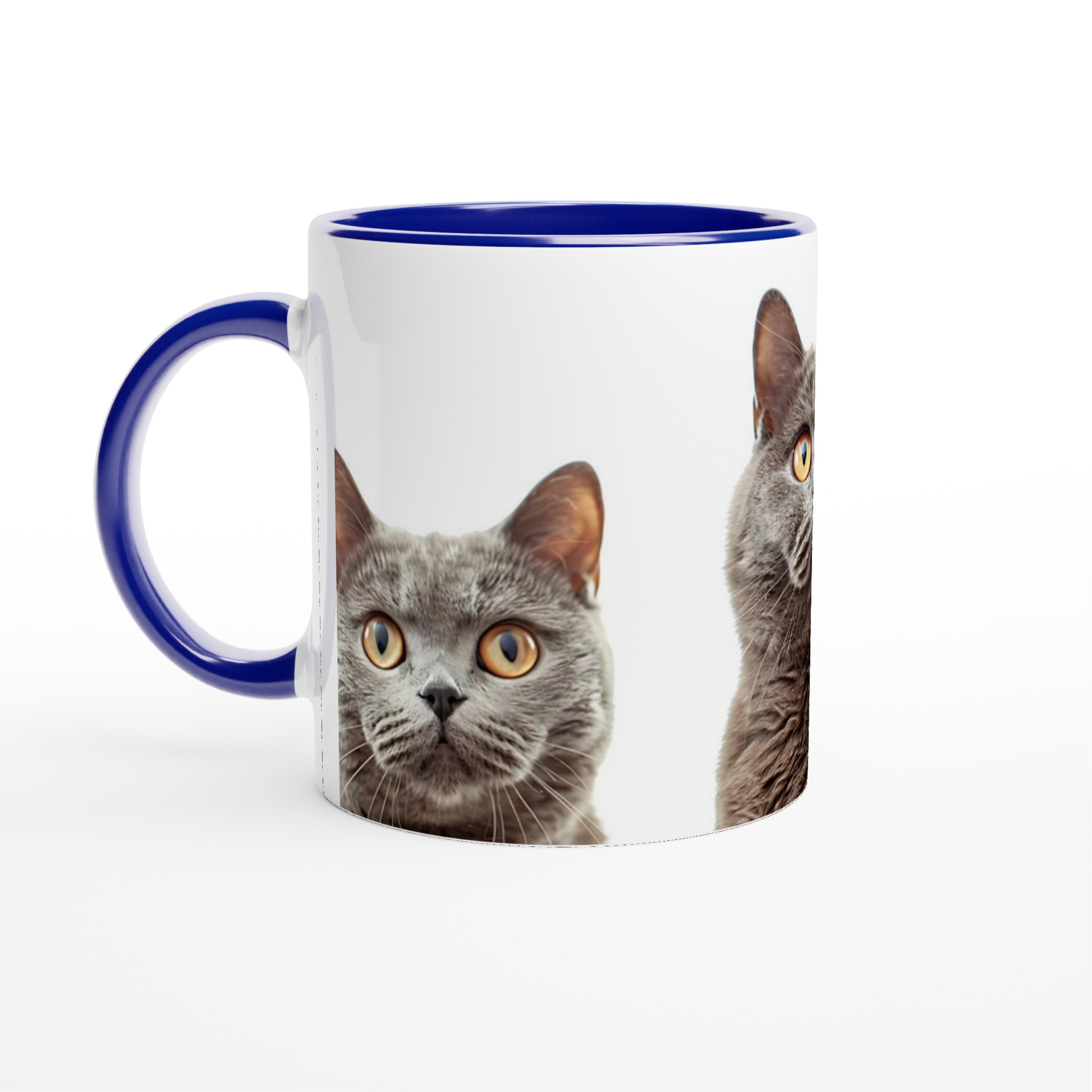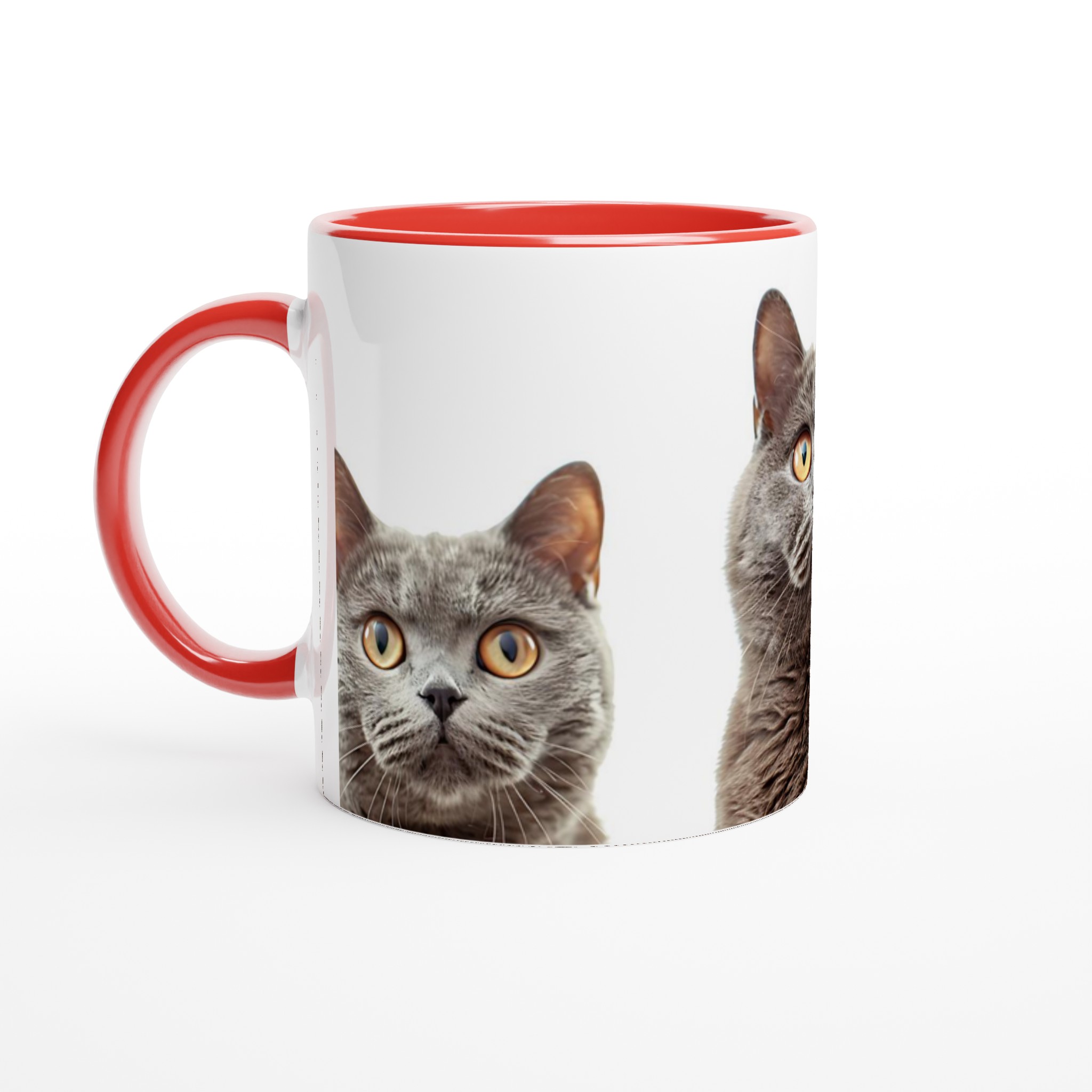 Fånga blickarna med denna charmiga keramiska mugg, prydd med tre par nyfikna kattögon som lovar att väcka glädje vid varje klunk. Denna mugg blir snabbt en vardagsfavorit, perfekt för morgonkaffet, kvällens varma choklad eller när du bara vill njuta av en kopp te. Den blanka vita ytan framhäver tryckets klara och levande färger, som håller sig fina även efter många turer i mikron och diskmaskinen, vilket gör varje ögonblick till en liten stund av glädje.
