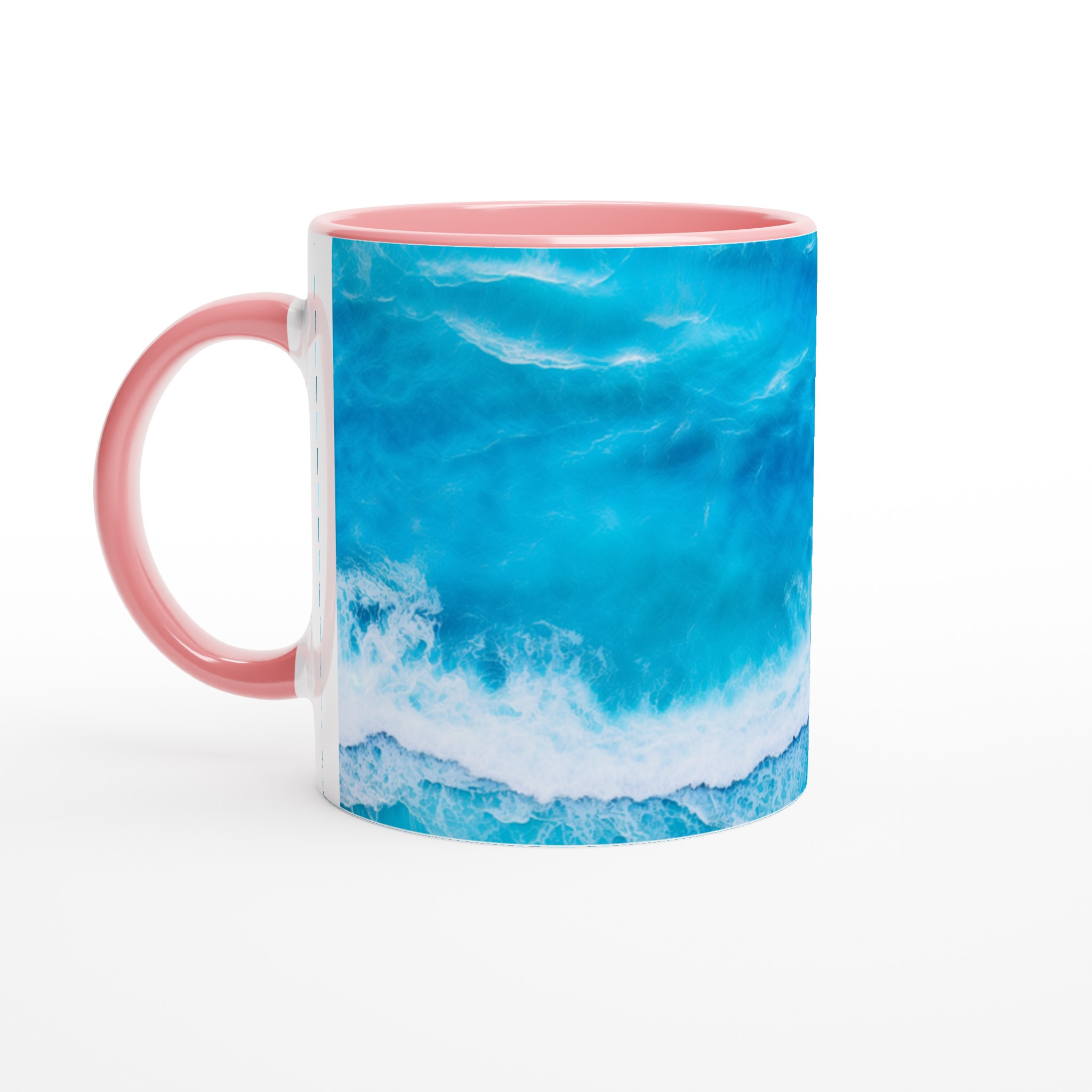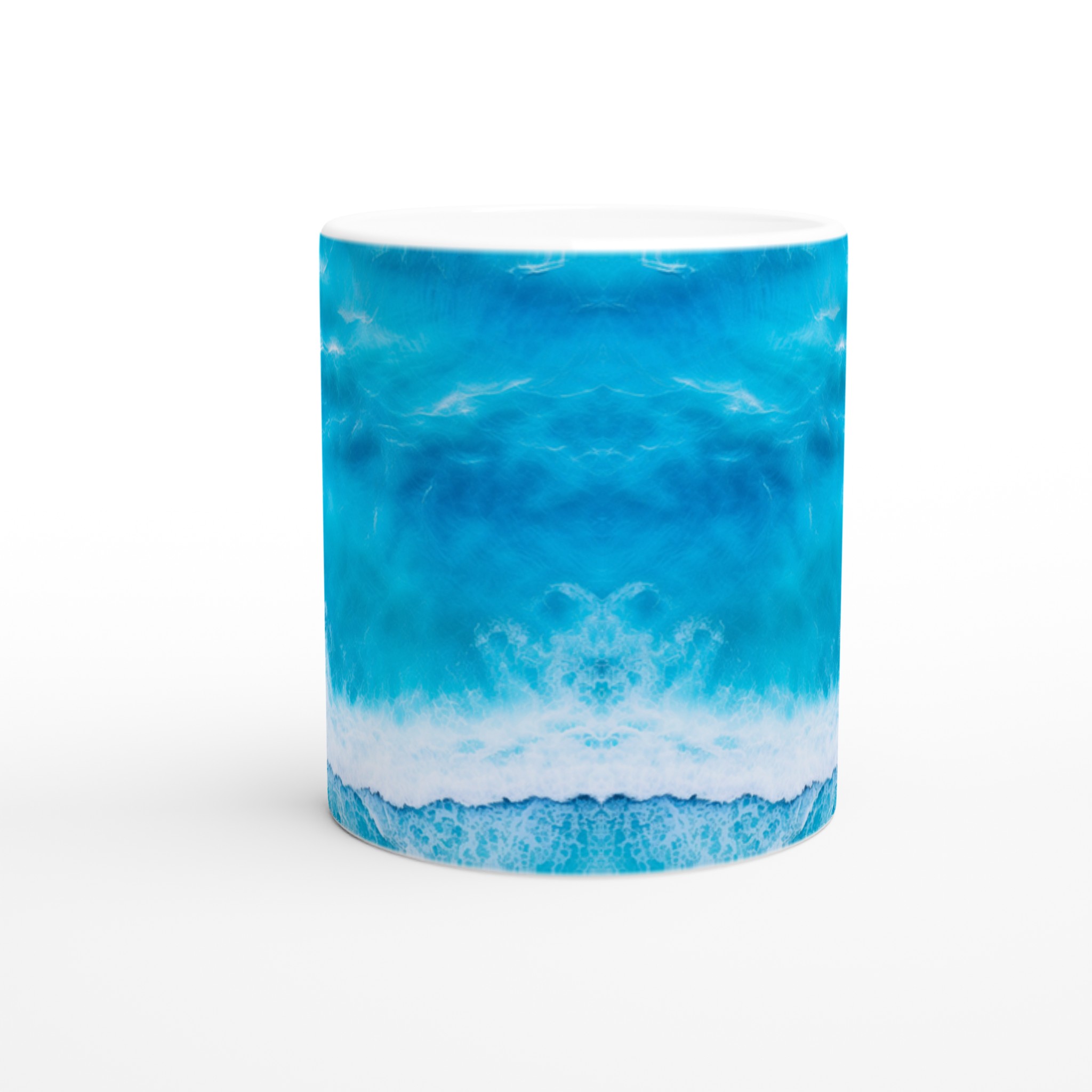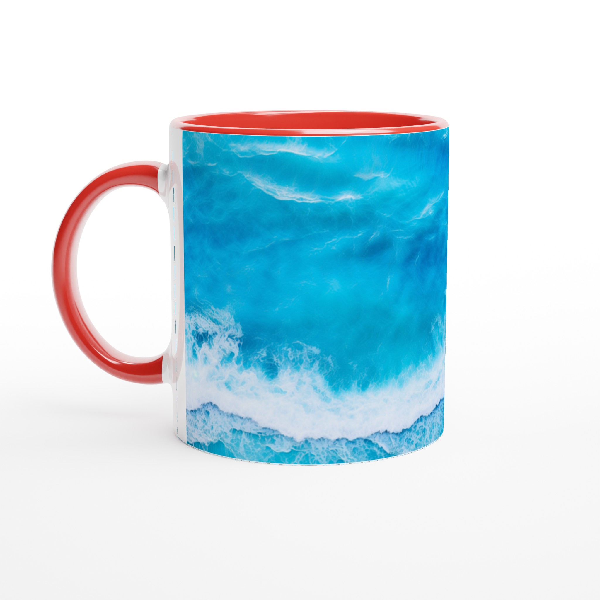 Låt dig svepas med av havets lugn med varje kopp! Denna Keramiska Mugg, prydd med ett hypnotiserande turkost vågmönster, är mer än bara en dryckesbehållare – den är en minivakuum till avkoppling. Perfekt för morgonkaffet, kvällens varma choklad eller när du bara vill njuta av en kopp te. Den blanka vita ytan gör att trycken framhävs med klara och levande färger, som håller sig fina även efter många turer i mikron och diskmaskinen.