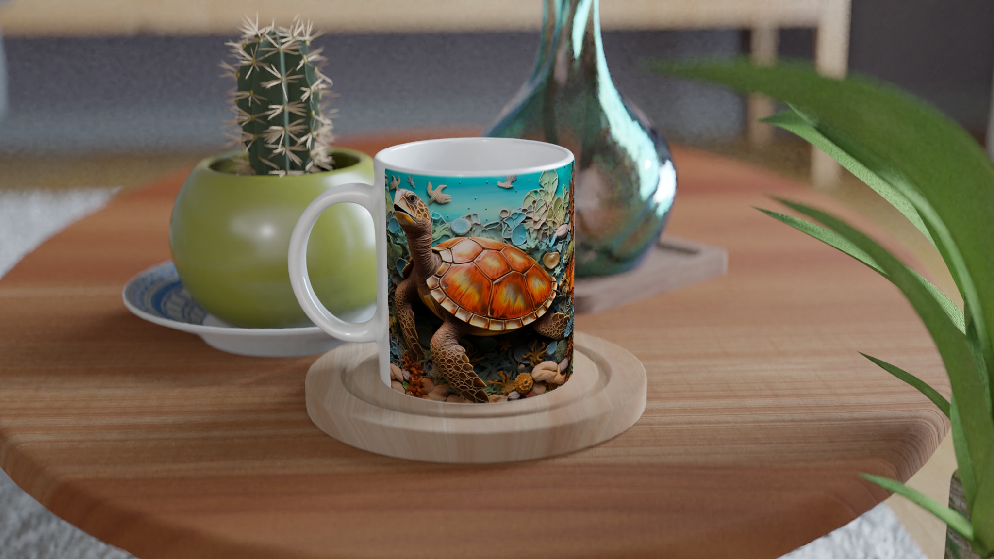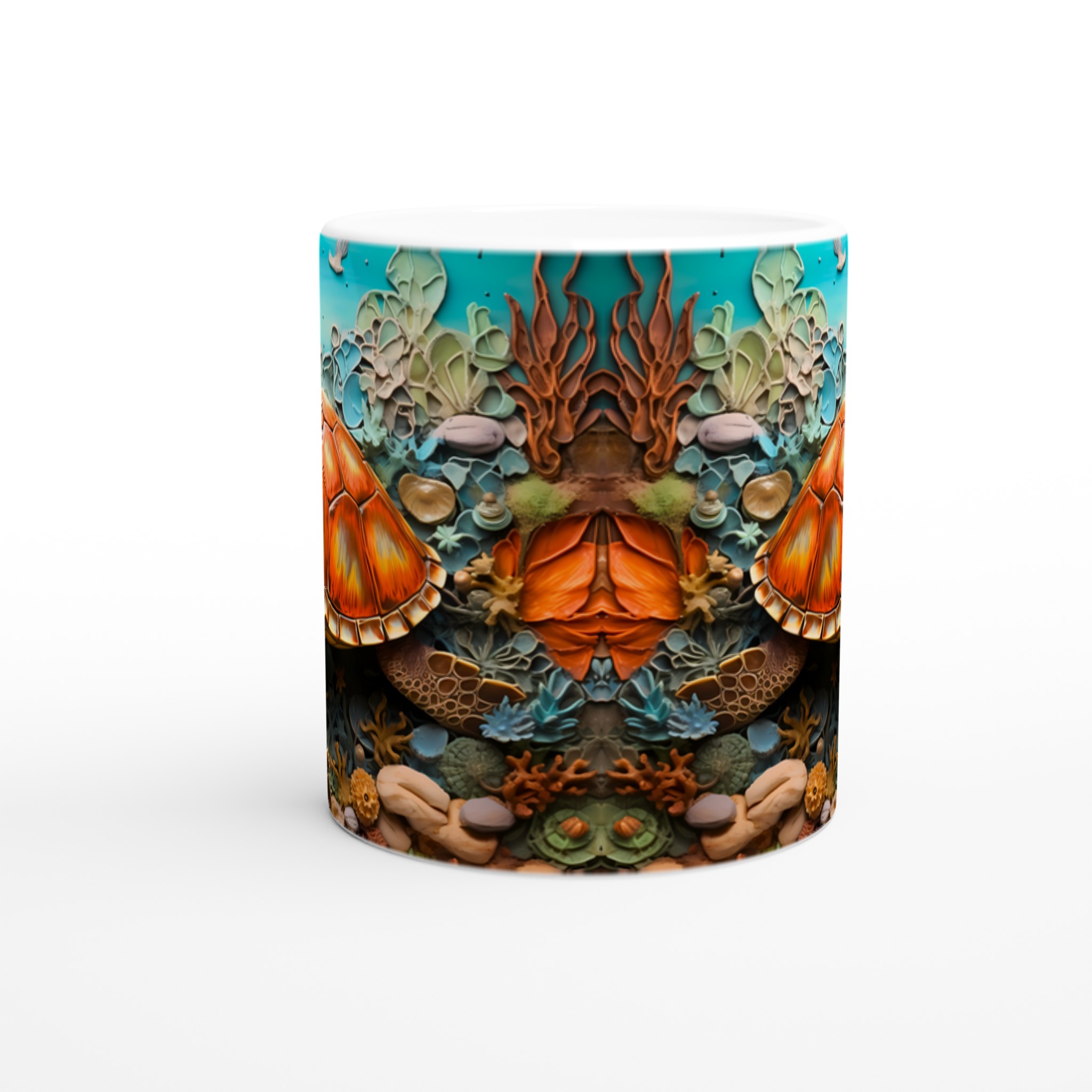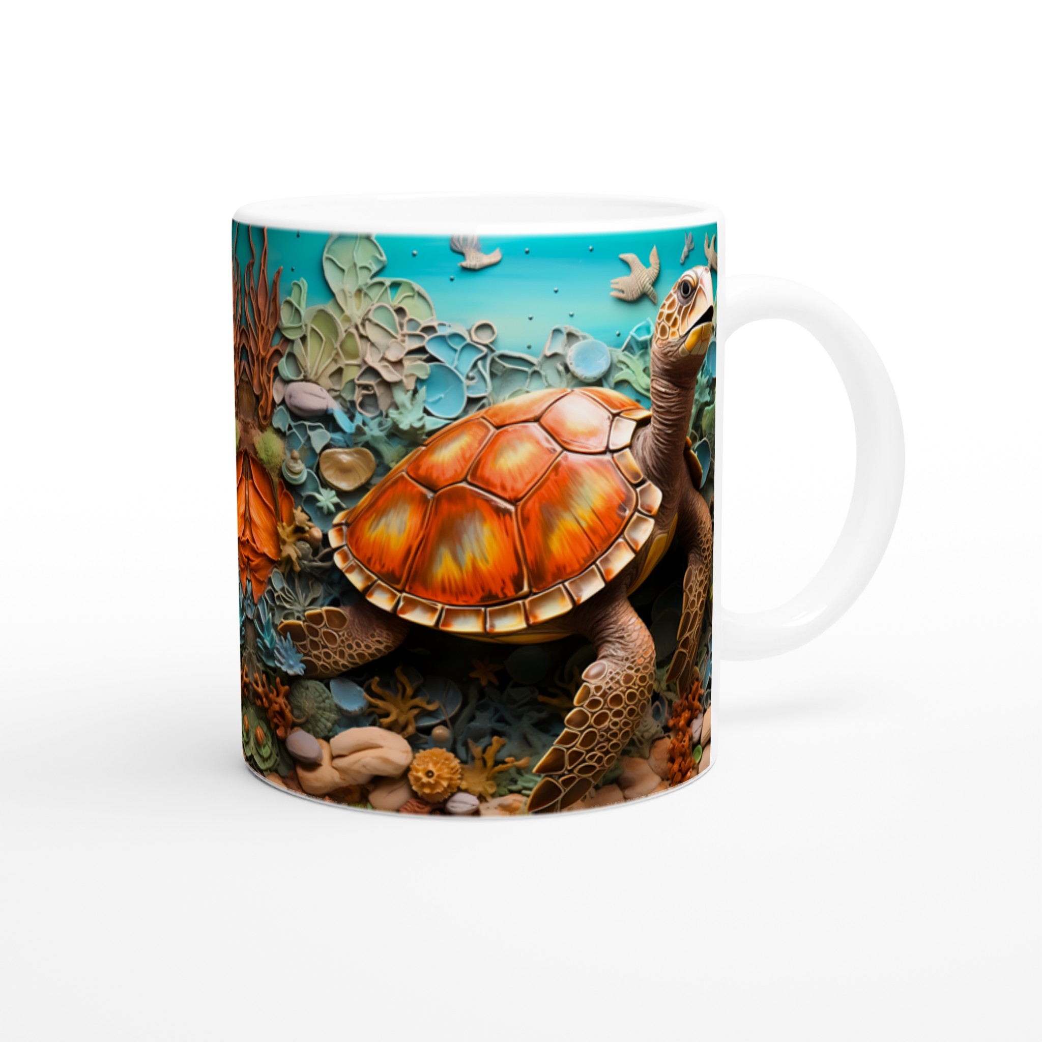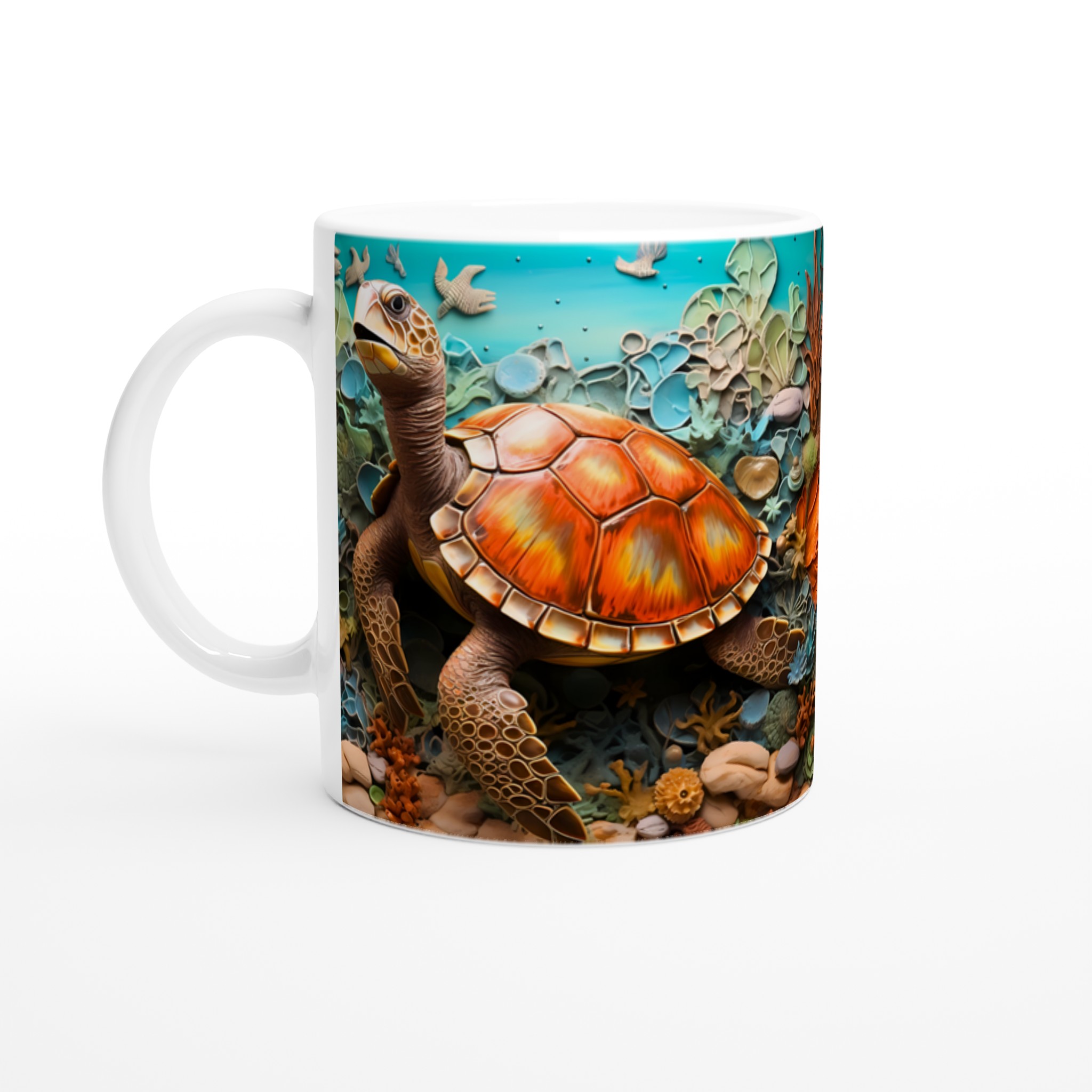 Dyk in i en värld av lugn och havsinspirerad skönhet med den här unika keramiska muggen. Prydd med en livfull illustration av havssköldpaddor som simmar bland koraller och havsbottens underverk, förvandlar den varje dryck till en fridfull stund vid havet. De rika, organiska färgerna och det detaljerade konstverket gör den till en perfekt start på morgonen med kaffet, en avkopplande kväll med varm choklad, eller när du bara vill njuta av en kopp te.