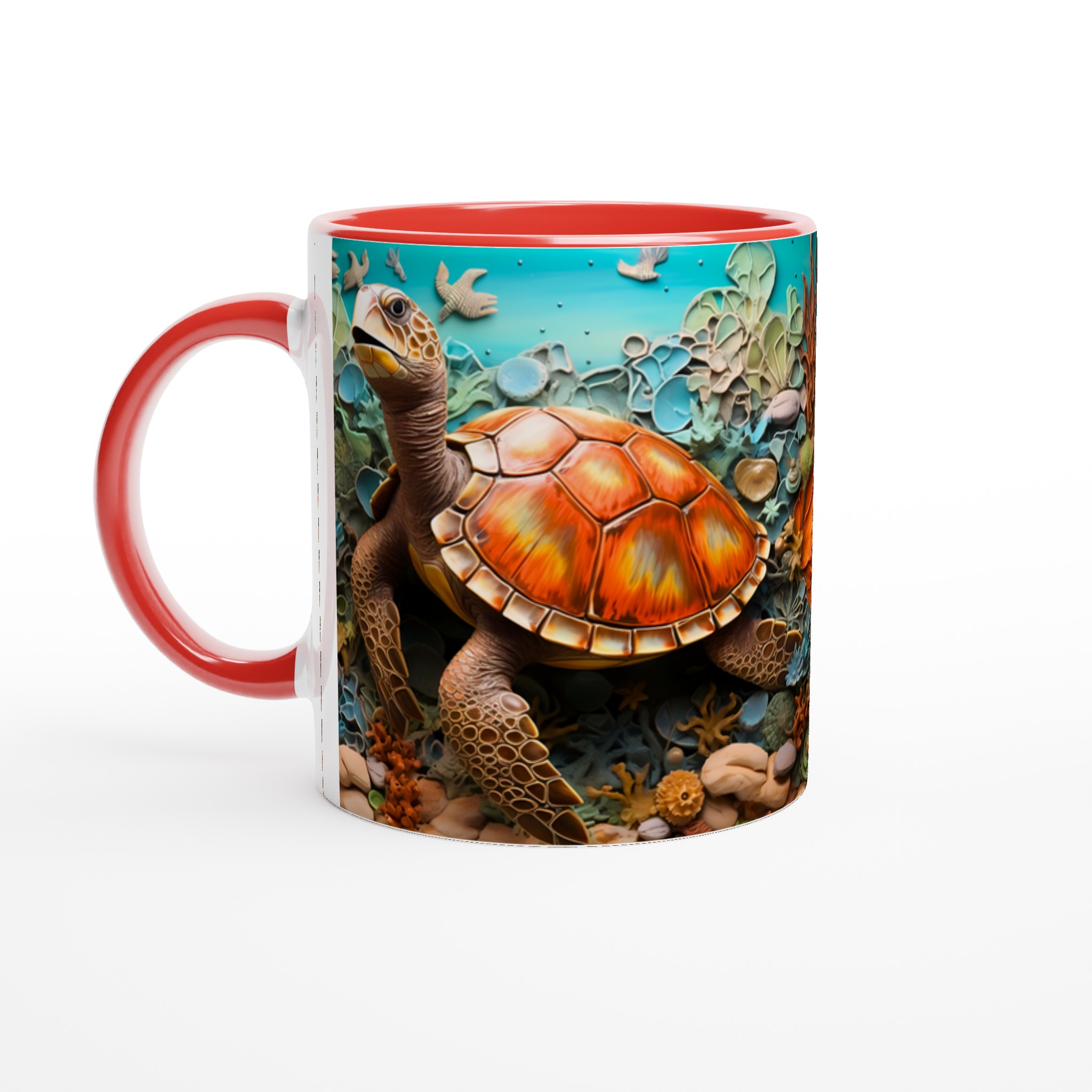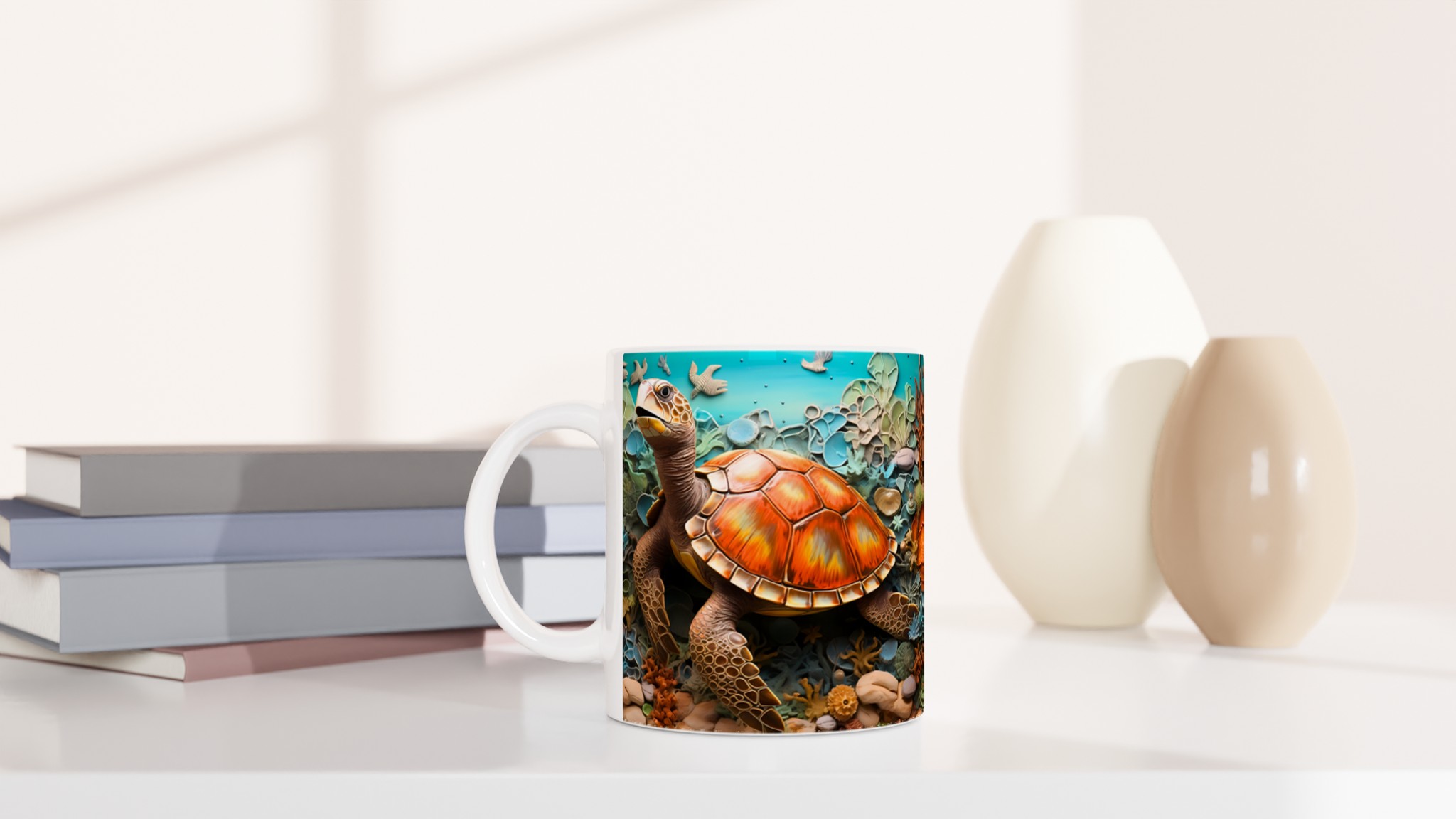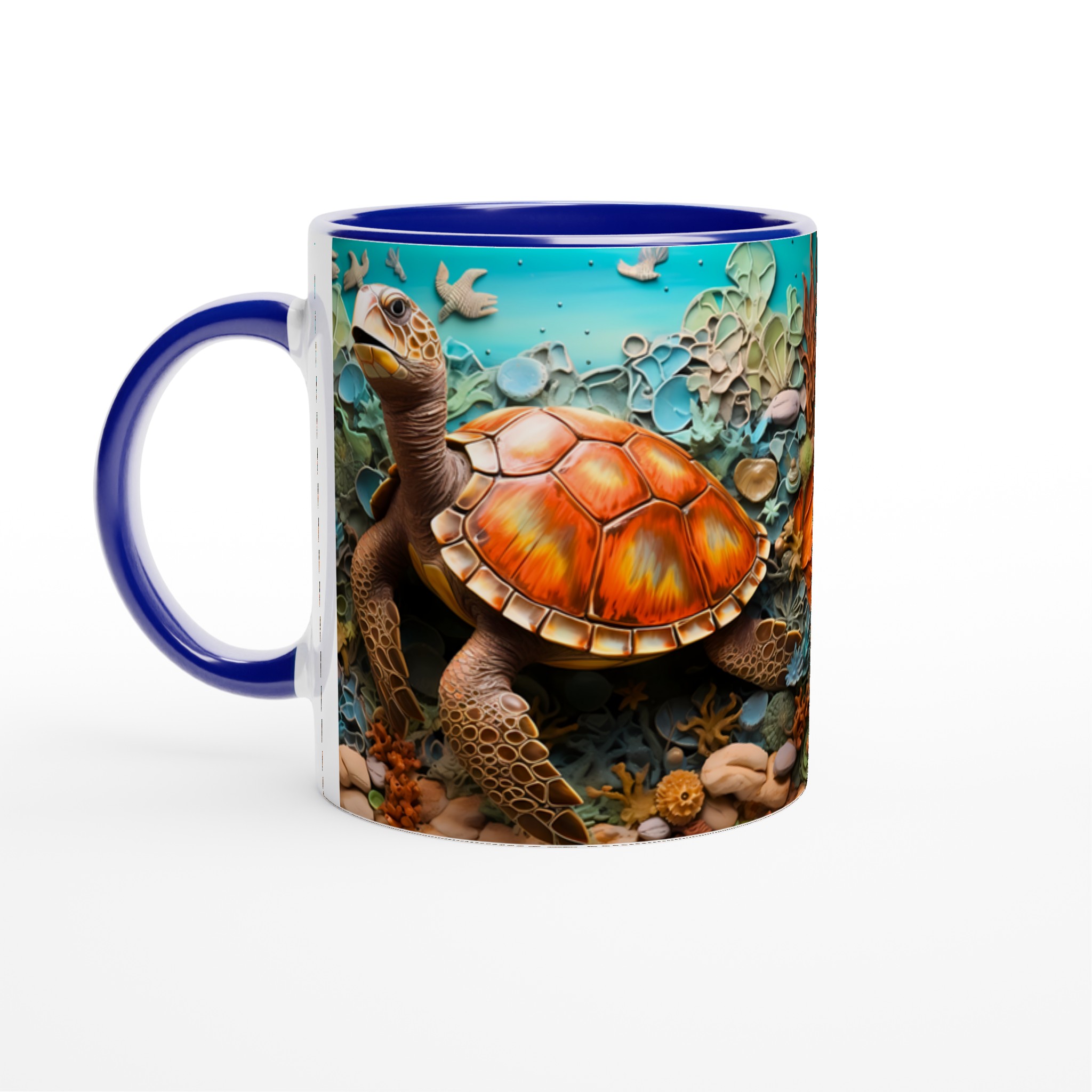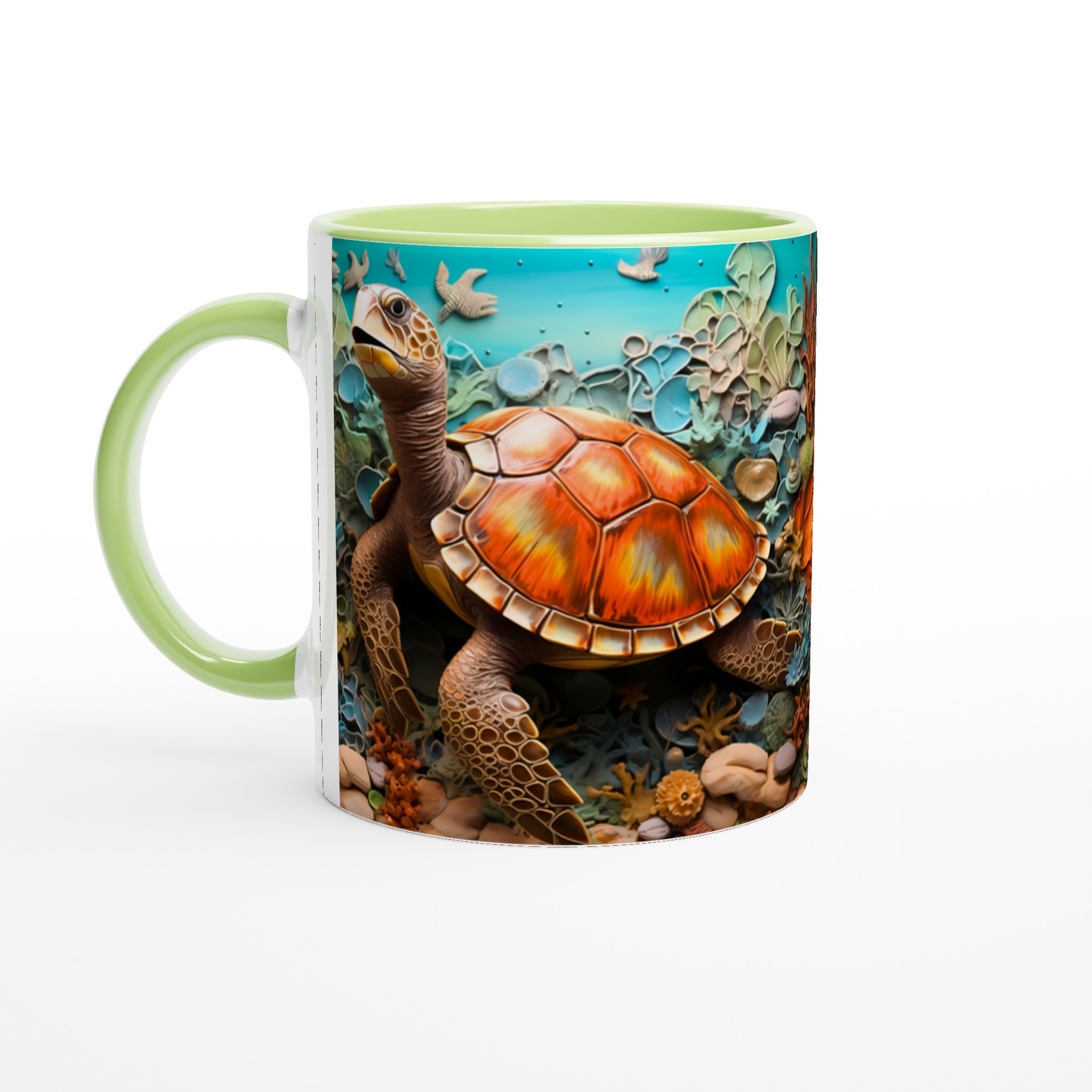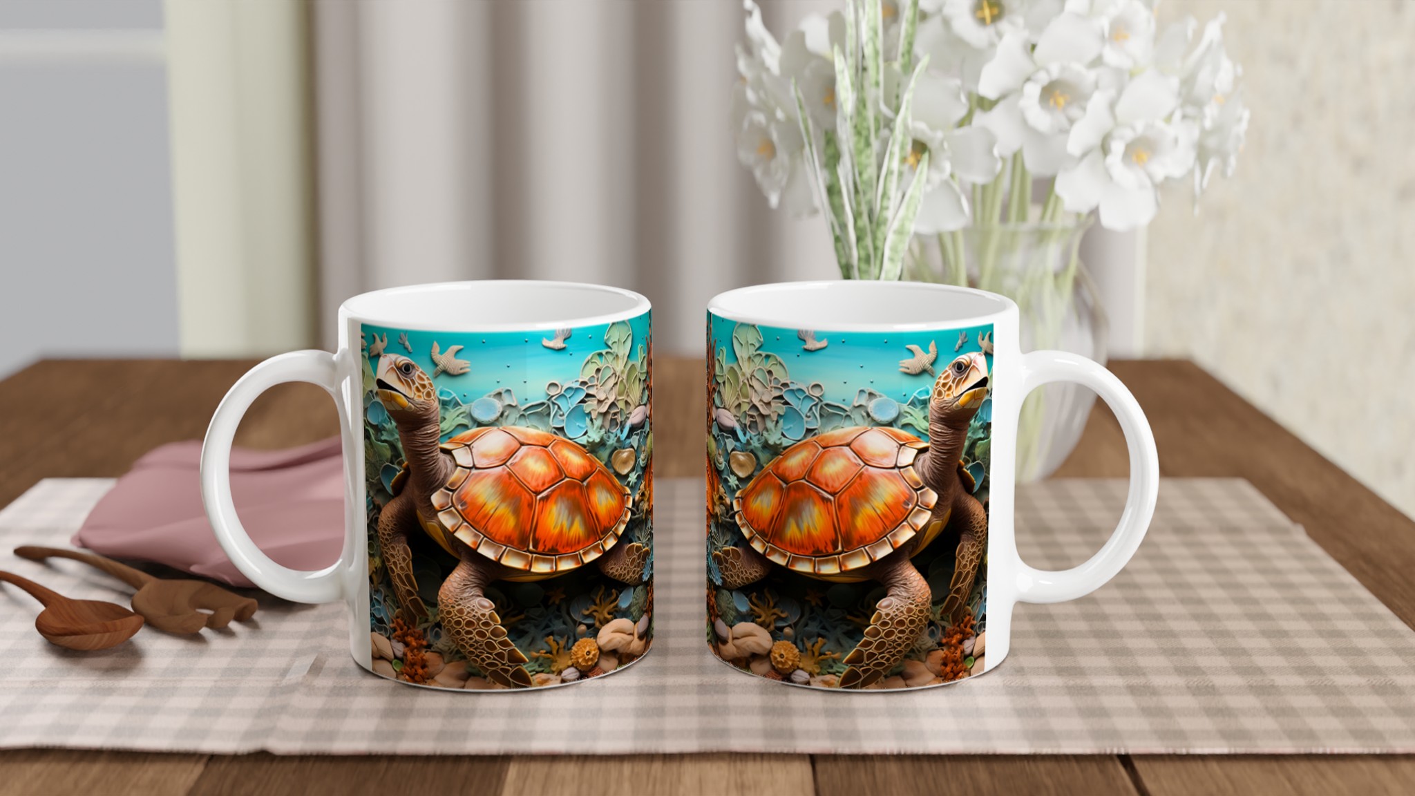 Dyk in i en värld av lugn och havsinspirerad skönhet med den här unika keramiska muggen. Prydd med en livfull illustration av havssköldpaddor som simmar bland koraller och havsbottens underverk, förvandlar den varje dryck till en fridfull stund vid havet. De rika, organiska färgerna och det detaljerade konstverket gör den till en perfekt start på morgonen med kaffet, en avkopplande kväll med varm choklad, eller när du bara vill njuta av en kopp te.
