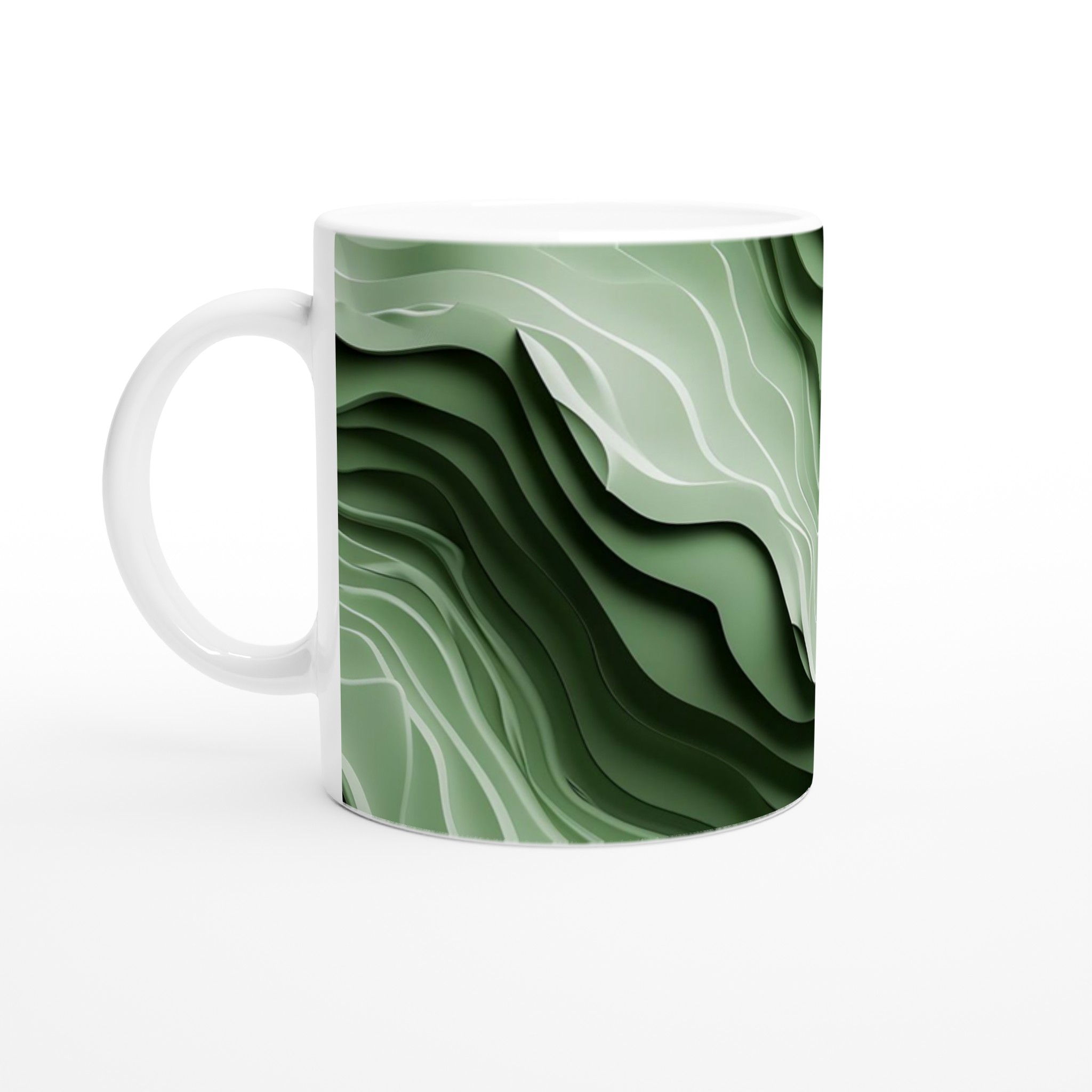 Inspirerad av naturens lugnande former och en sofistikerad grön färgpalett, ger denna mugg en touch av organisk elegans till din vardag. Den blanka vita ytan ger ett skarpt och levande tryck som verkligen sticker ut, oavsett om det är en personlig design, ett roligt citat eller en present till någon du tycker om.