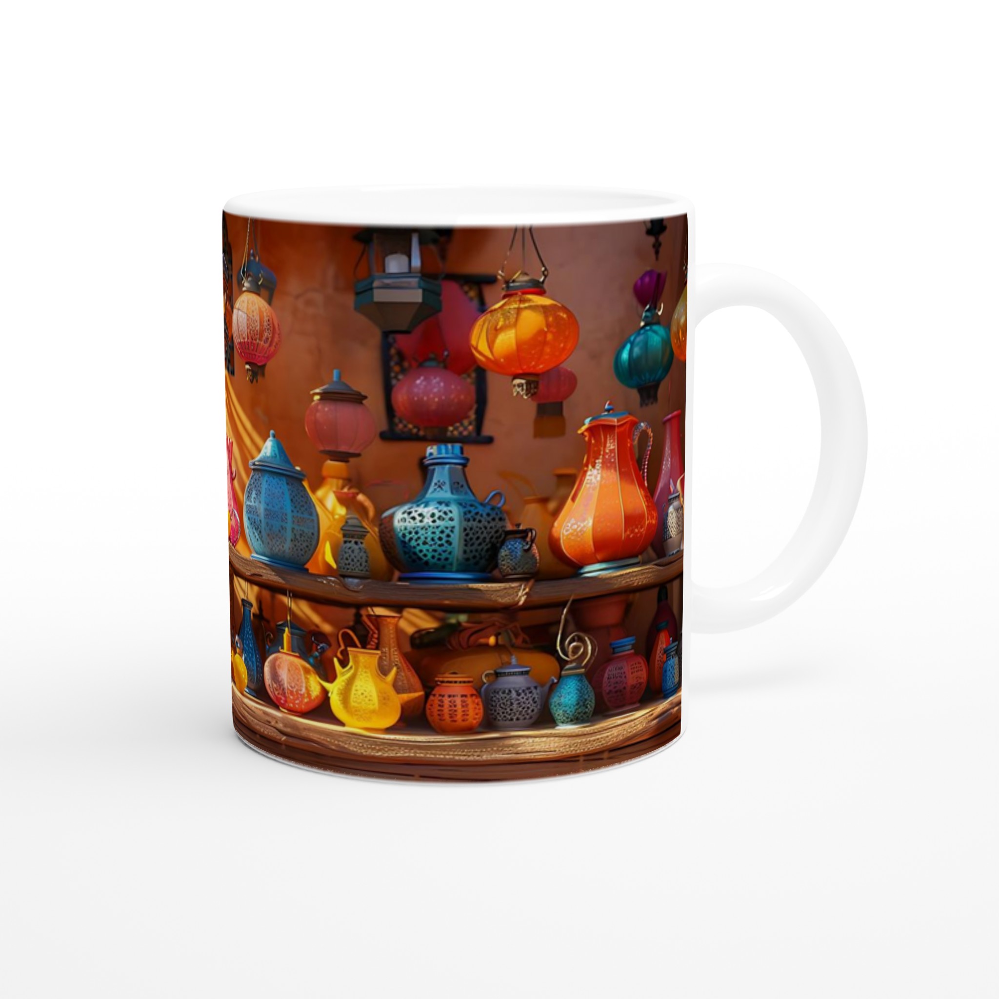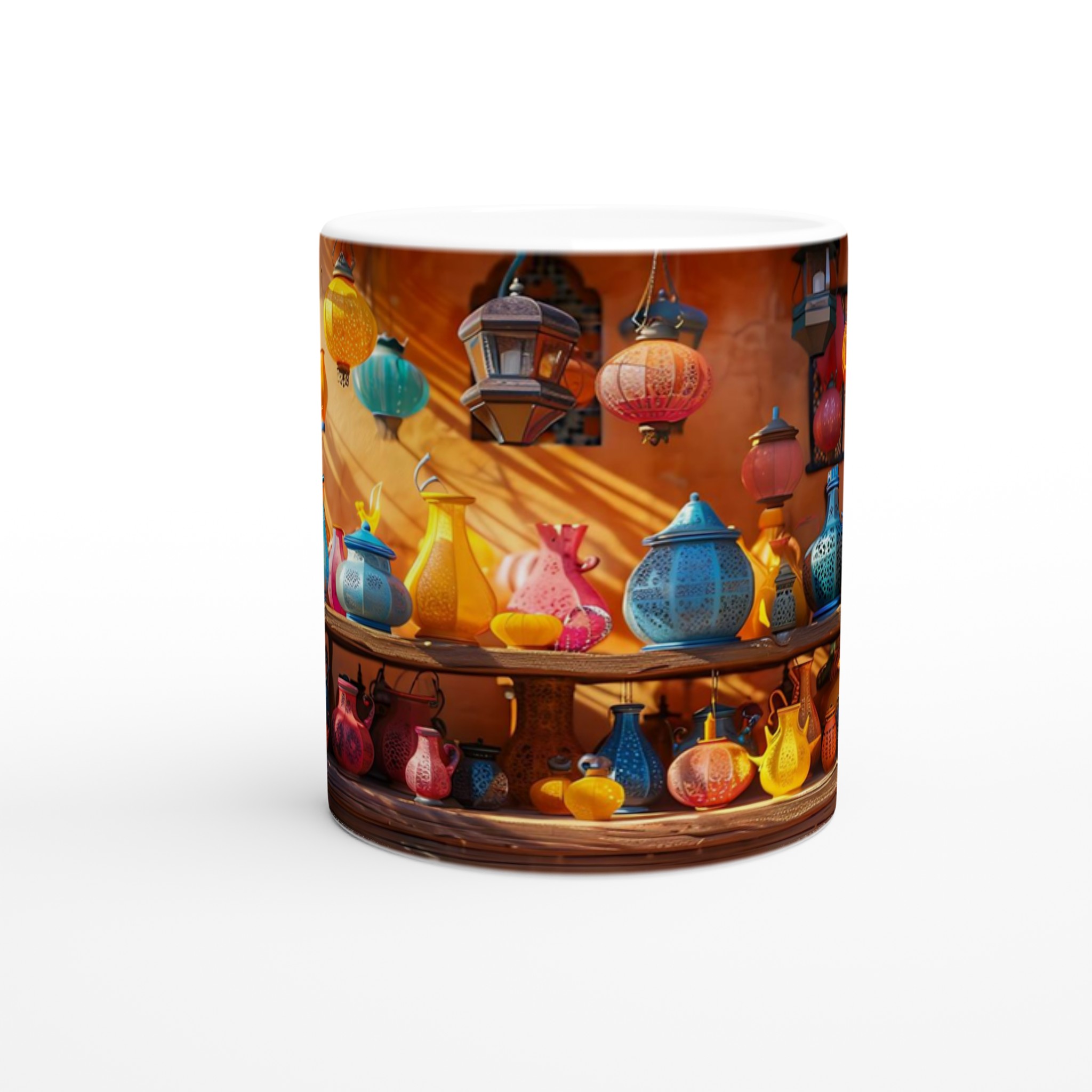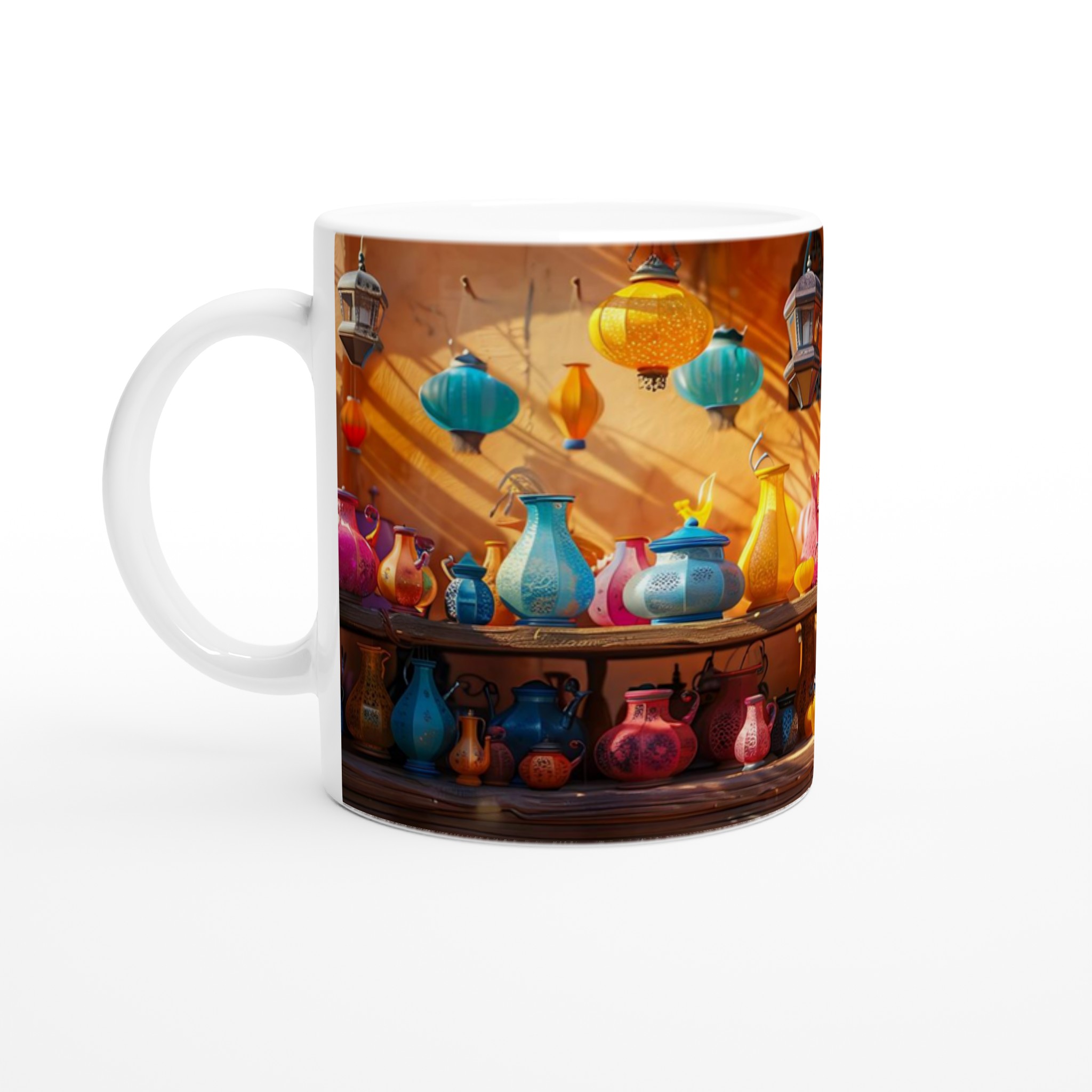 Låt dig förtrollas av den rika paletten och den inbjudande värmen från Orienten med denna charmiga keramiska mugg. Varje klunk blir en resa till avlägsna basarer och solnedgångar, perfekt för ditt morgonkaffe, en lugn stund med kvällens varma choklad, eller när du vill njuta av en kopp te med en känsla av äventyr. Den blanka ytan framhäver trycken med klara och levande färger, som förblir lika fina även efter otaliga turer i mikron och diskmaskinen, redo att sprida glädje dag efter dag.