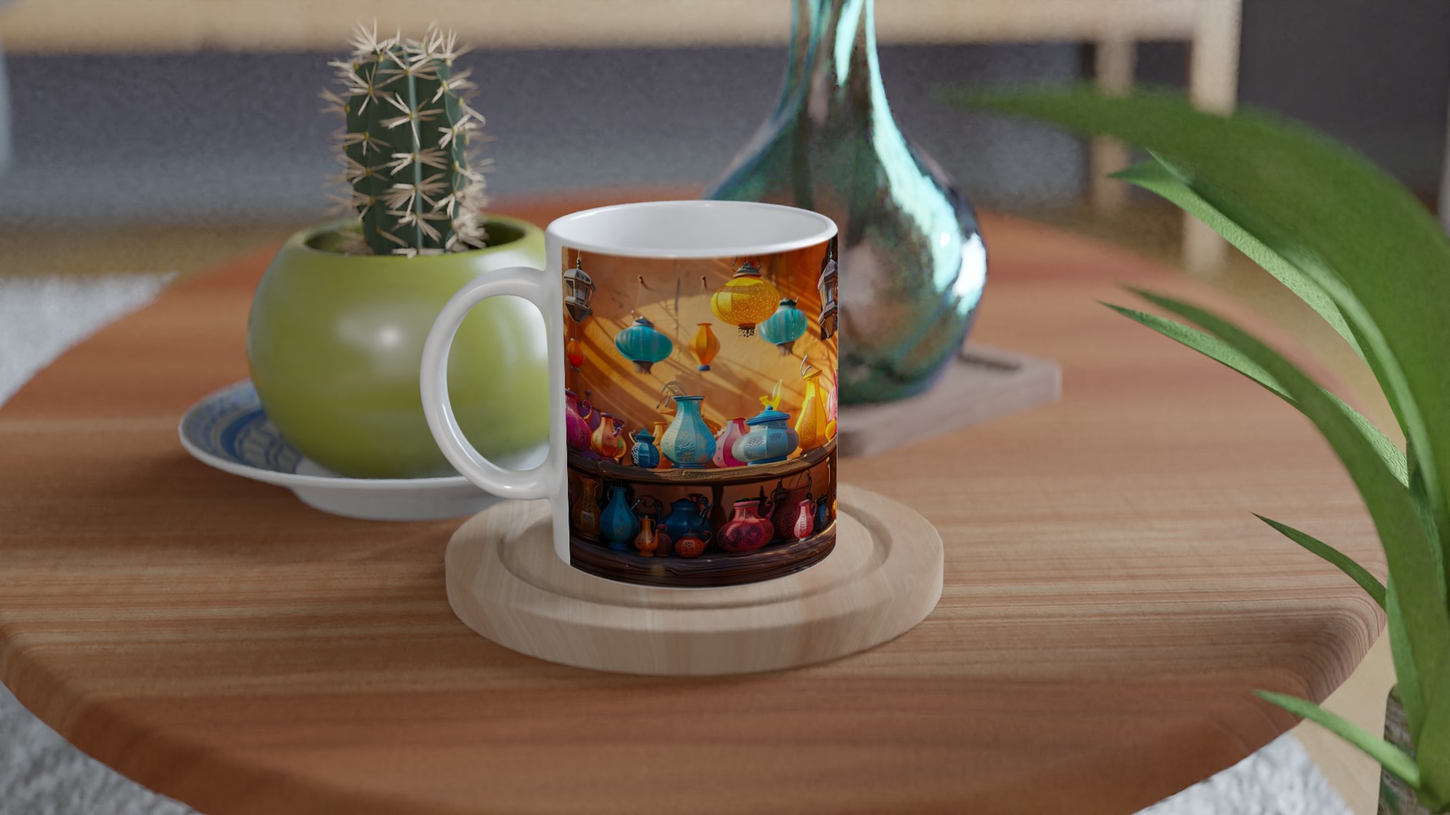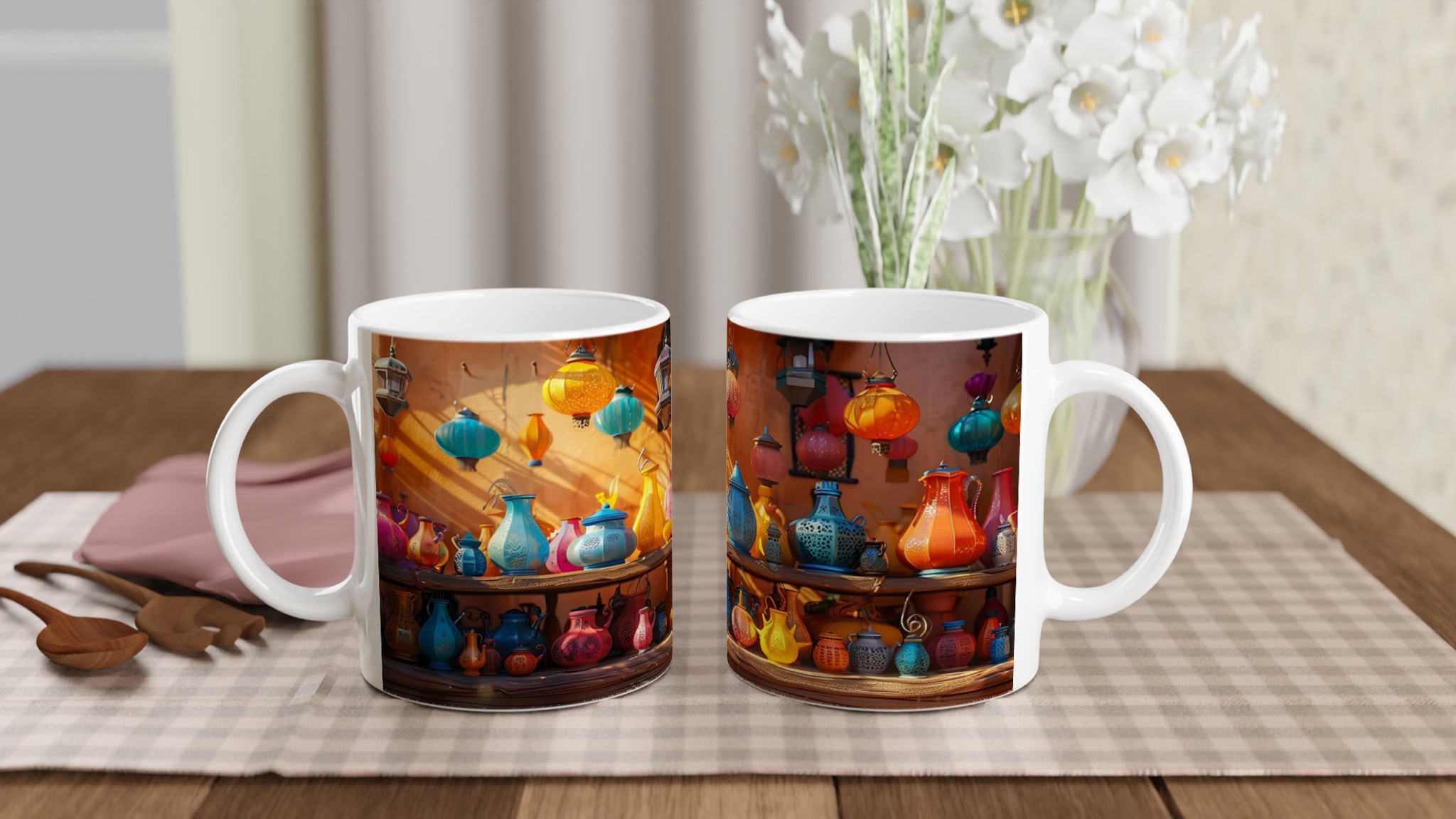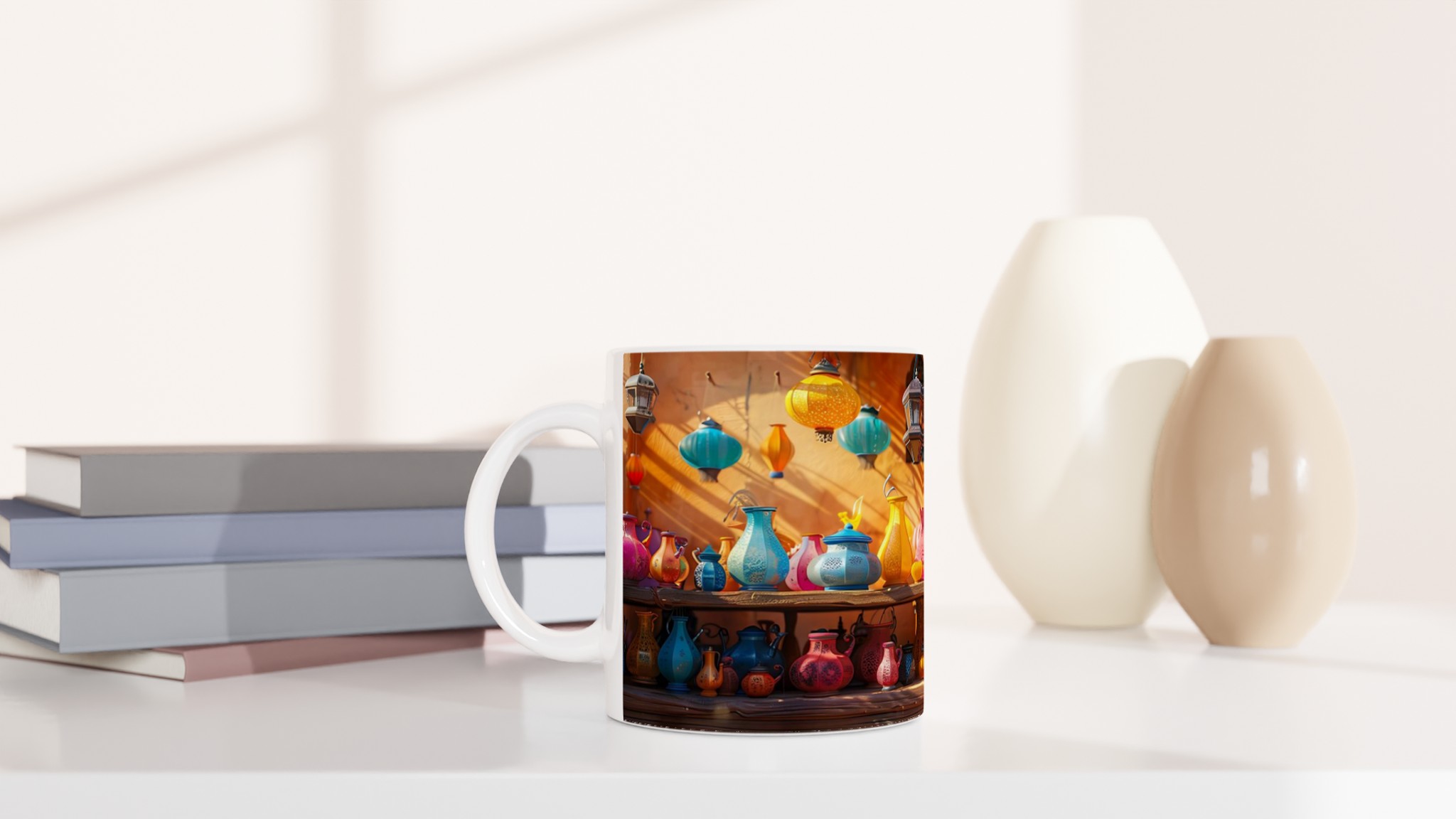 Låt dig förtrollas av den rika paletten och den inbjudande värmen från Orienten med denna charmiga keramiska mugg. Varje klunk blir en resa till avlägsna basarer och solnedgångar, perfekt för ditt morgonkaffe, en lugn stund med kvällens varma choklad, eller när du vill njuta av en kopp te med en känsla av äventyr. Den blanka ytan framhäver trycken med klara och levande färger, som förblir lika fina även efter otaliga turer i mikron och diskmaskinen, redo att sprida glädje dag efter dag.