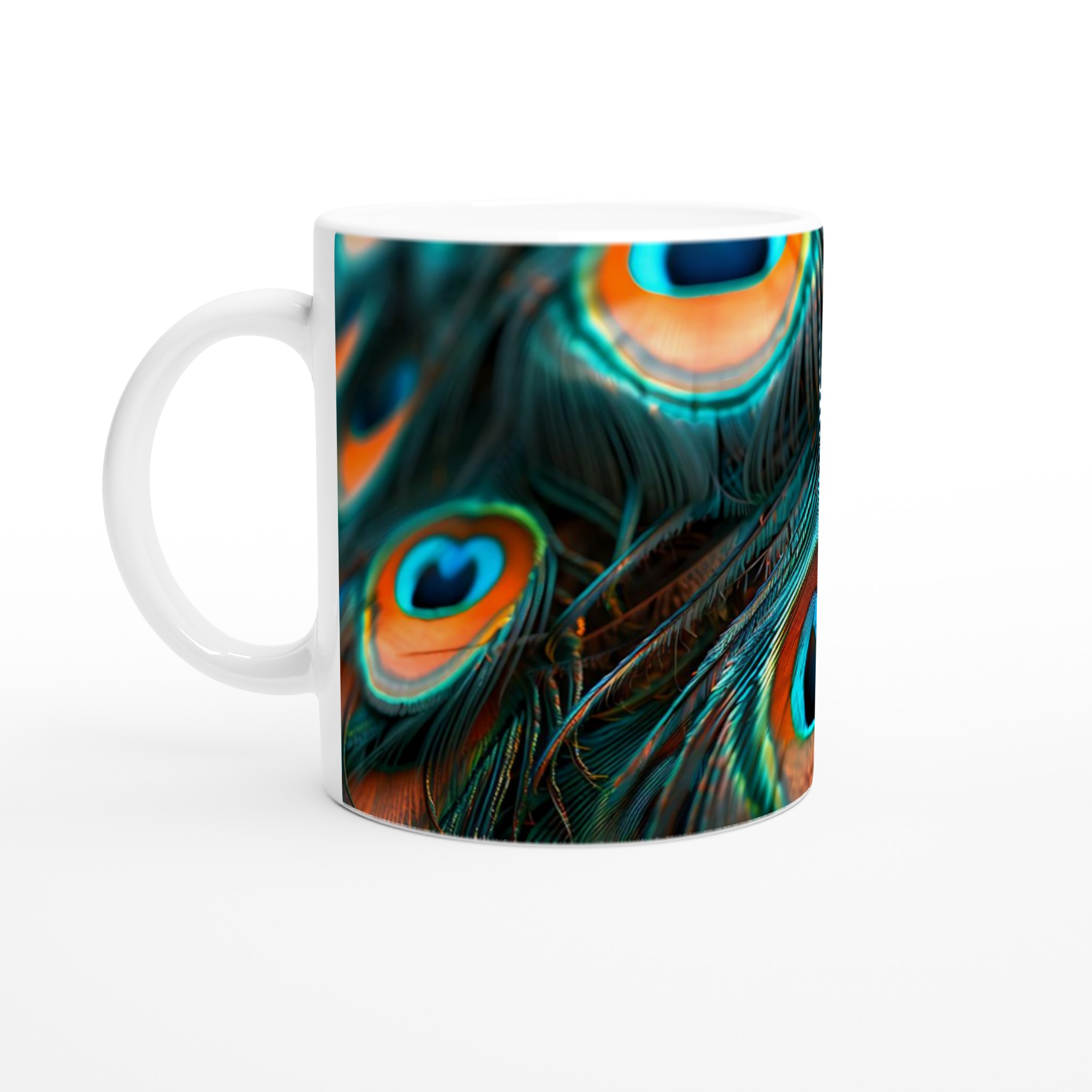 Inspirerad av påfågelns majestätiska skönhet, denna mugg förvandlar din dryckesupplevelse till en färgsprakande fest. Den blanka vita ytan ger ett skarpt och levande tryck som verkligen sticker ut, oavsett om det är en personlig design, ett roligt citat eller en present till någon du tycker om.