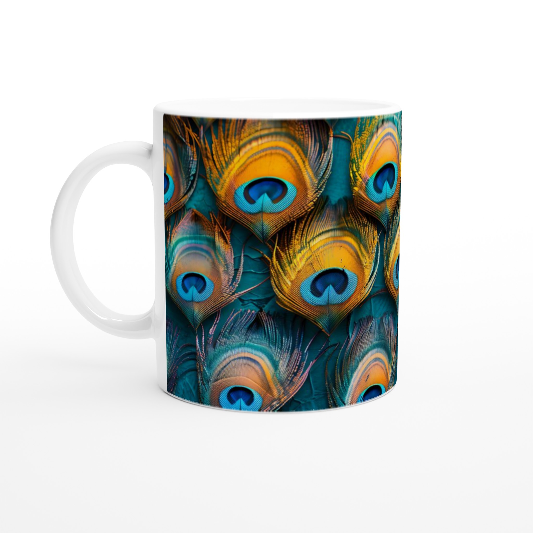 Påfågelsfjädermugg – Levande Keramisk Mugg 11oz i ditt val av 7 färger