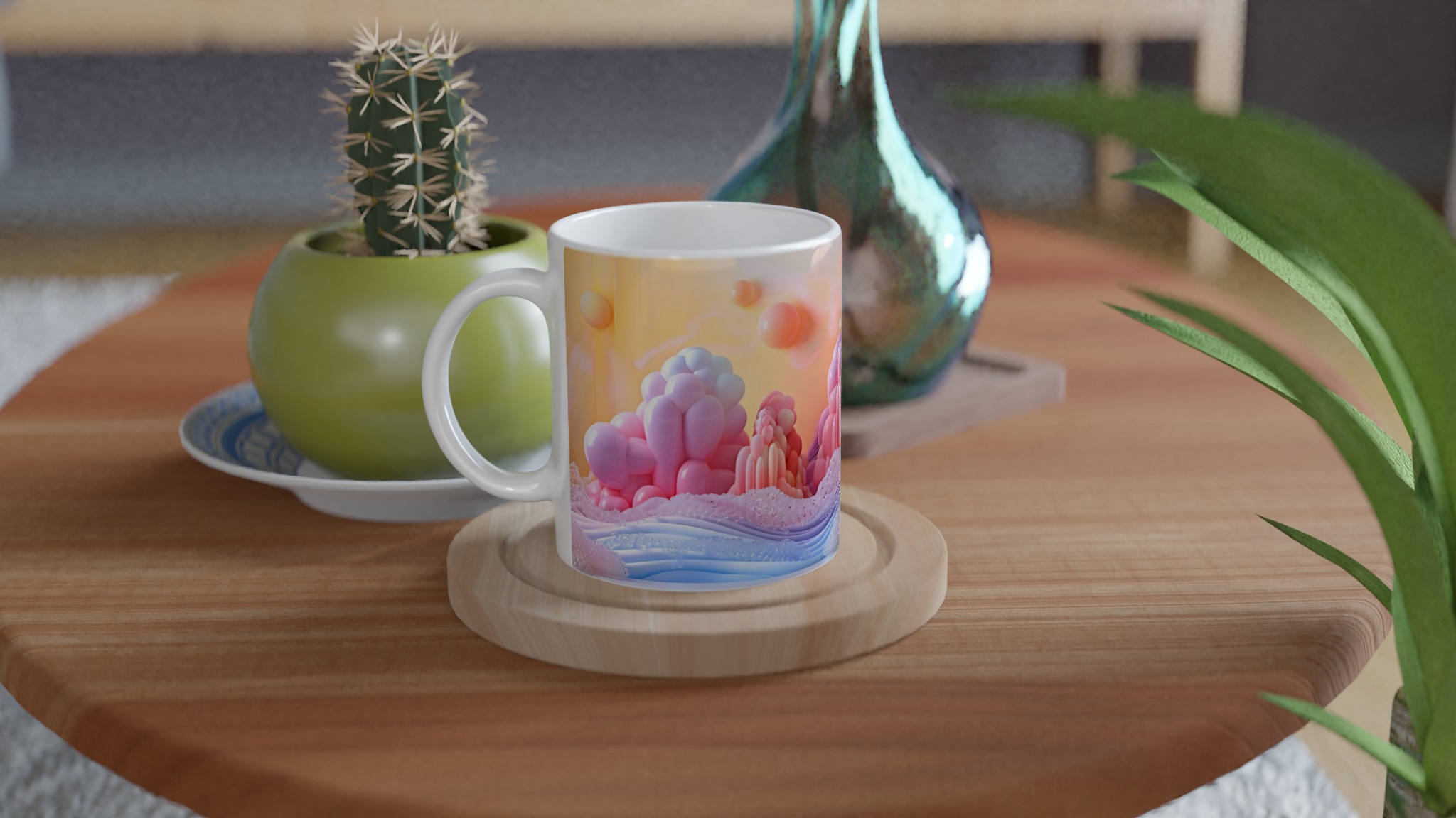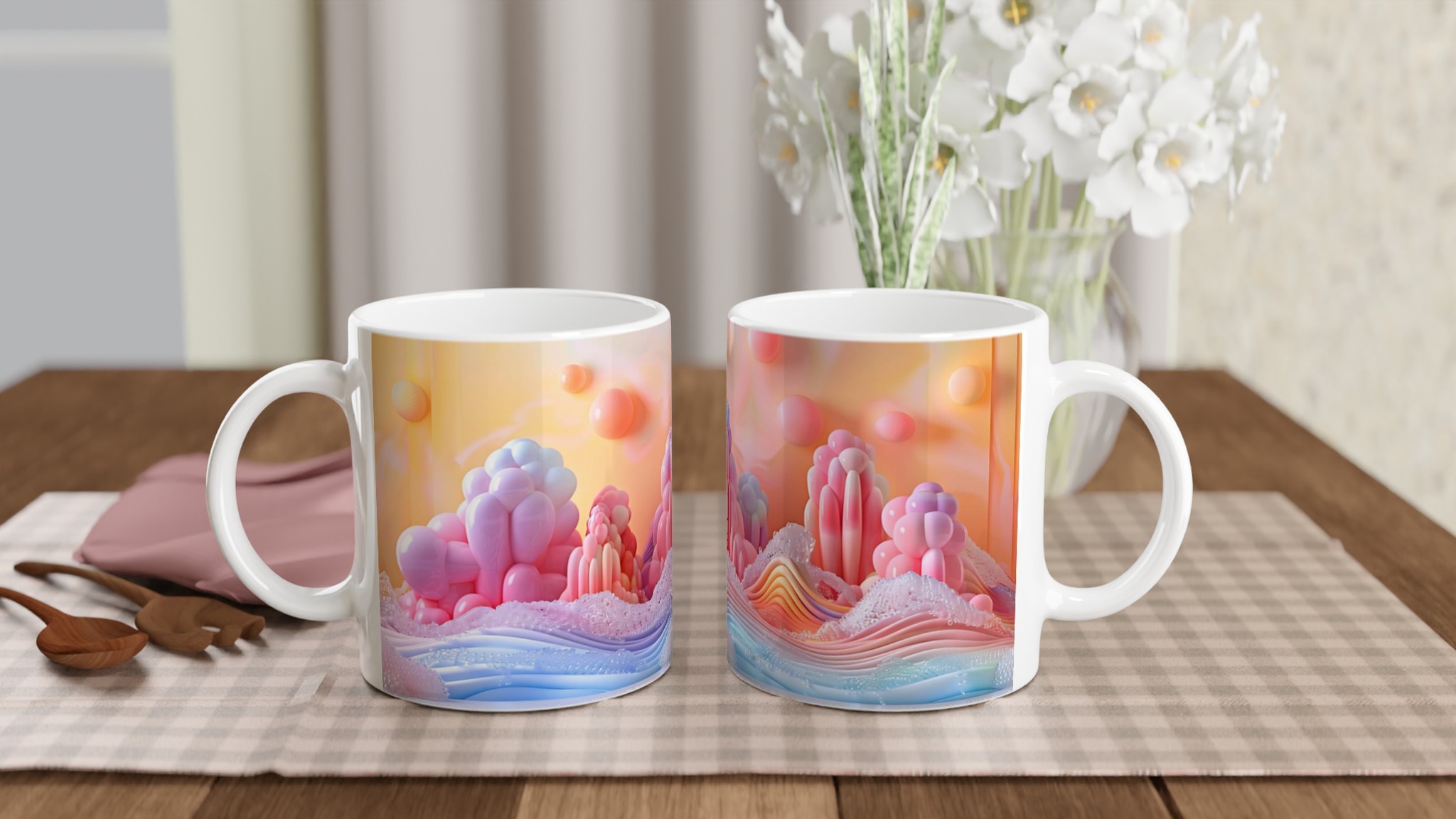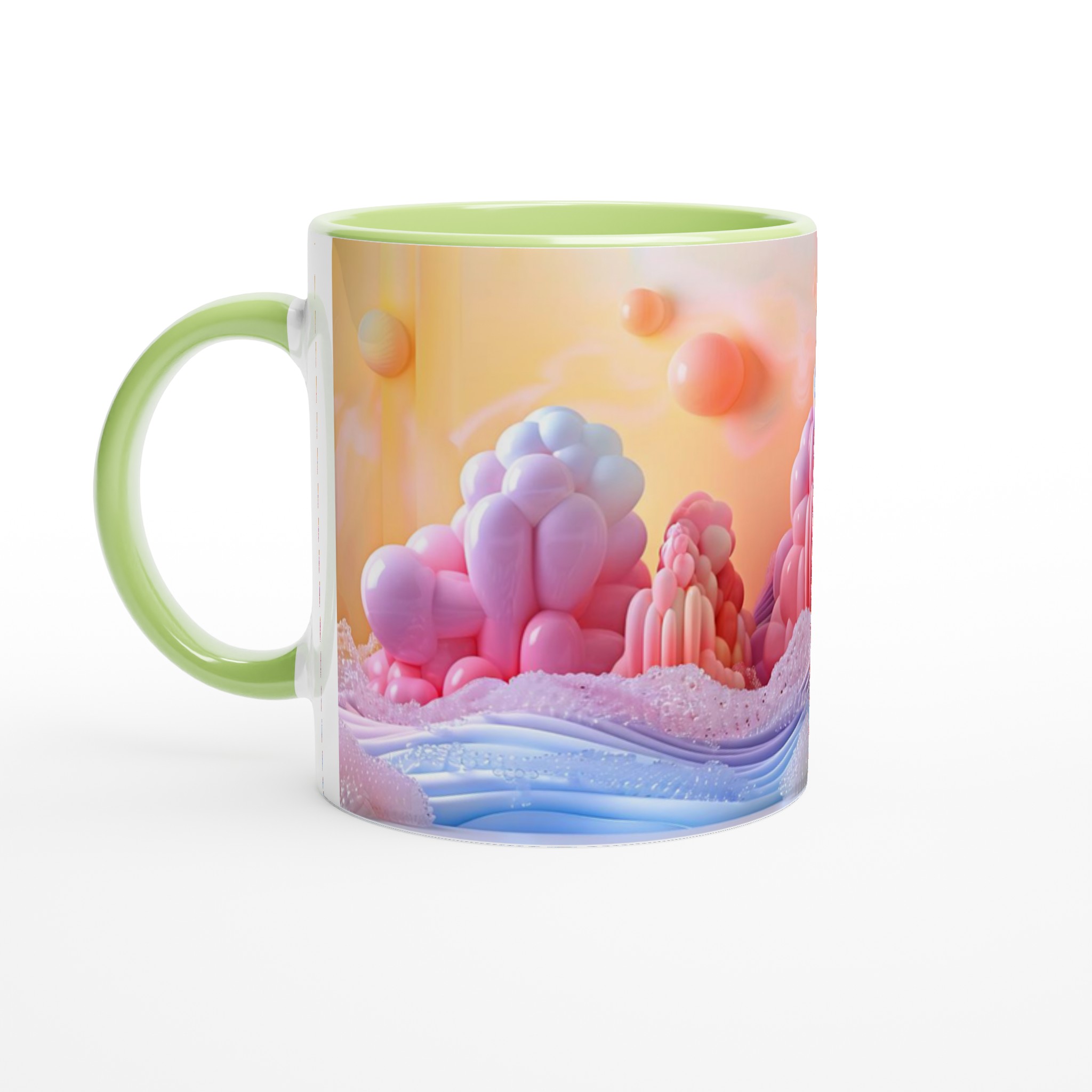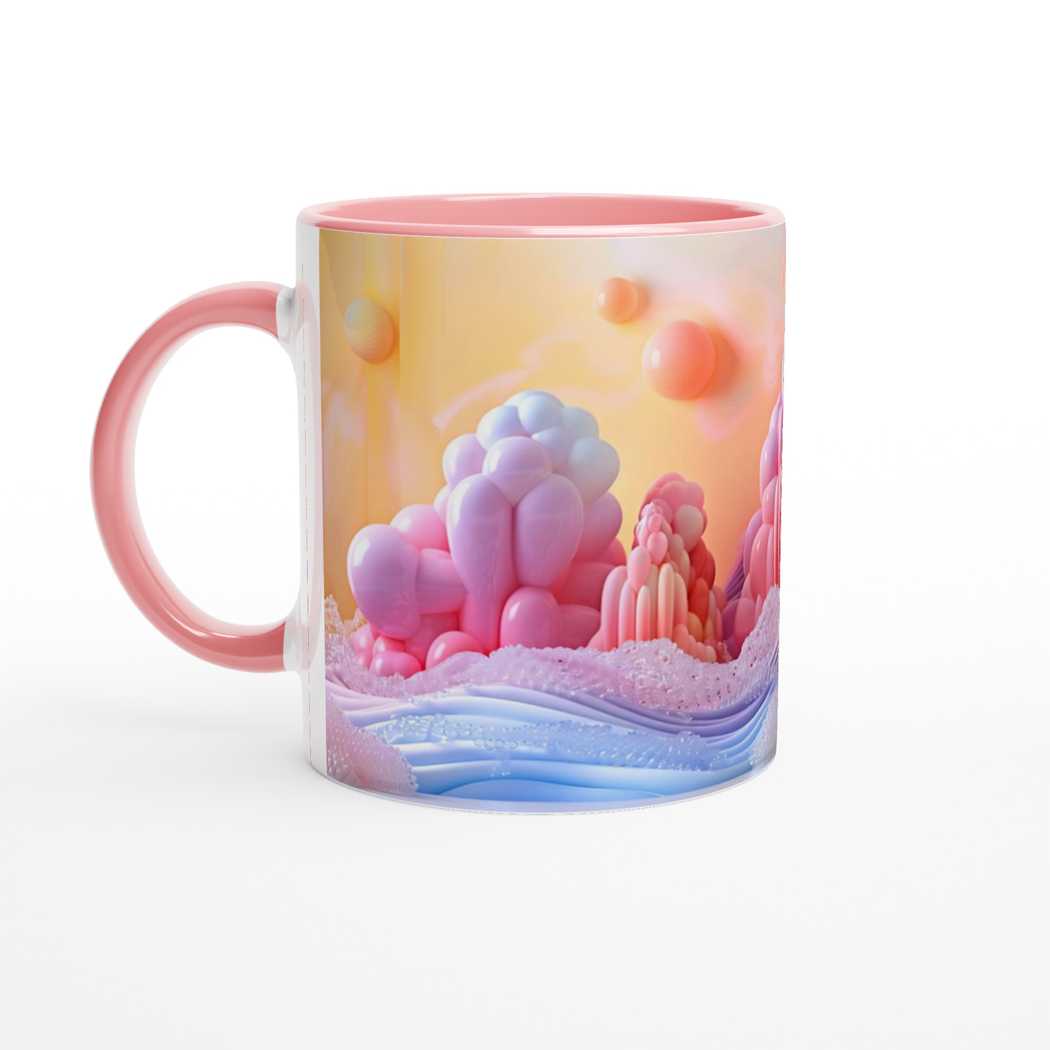 Kliv in i en värld av mjukhet och drömska nyanser med vår Pastell Keramiska Mugg. Inspirerad av bilden som för tankarna till ett lekfullt landskap av sockervadd och moln, blir denna mugg snabbt en vardagsfavorit. Perfekt för morgonkaffet, kvällens varma choklad eller när du bara vill njuta av en kopp te.
