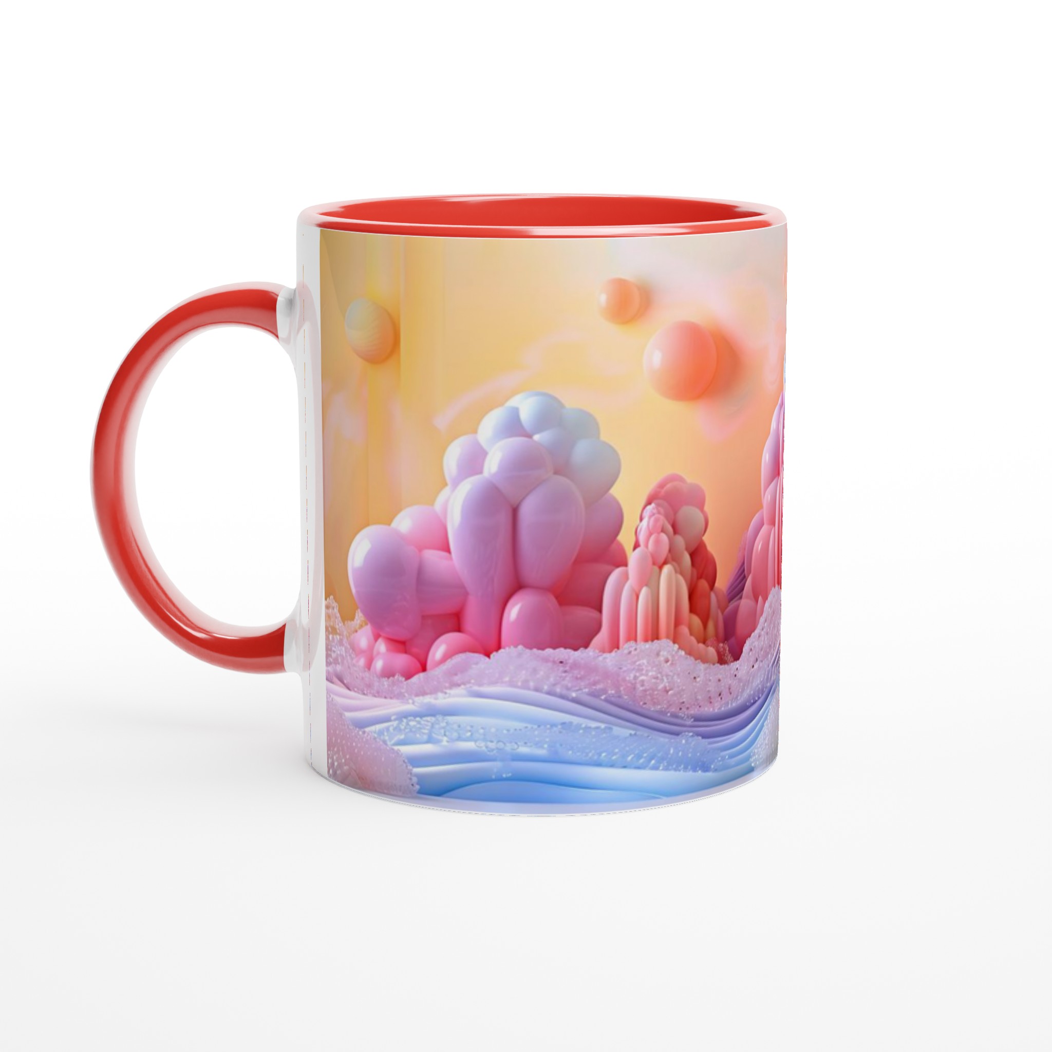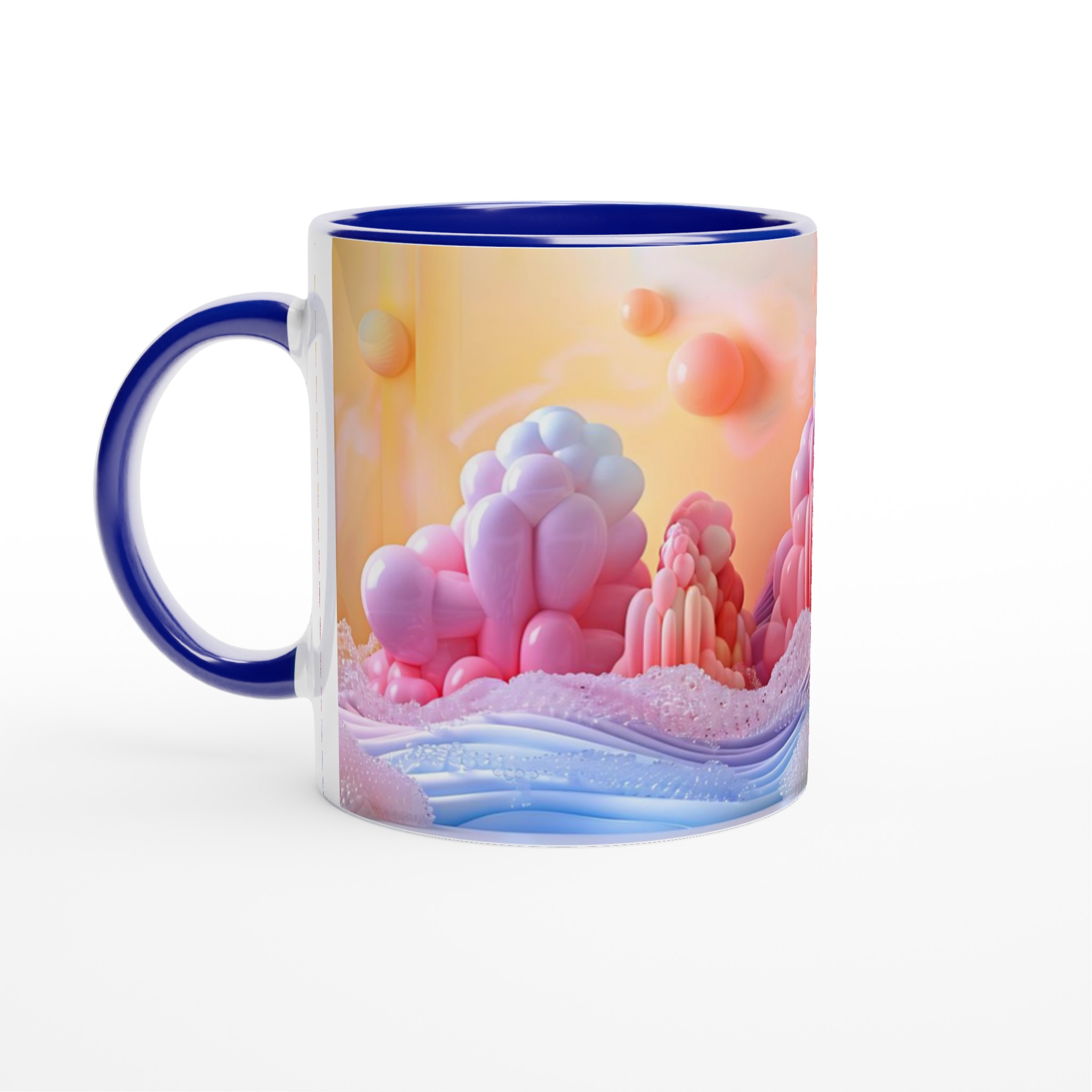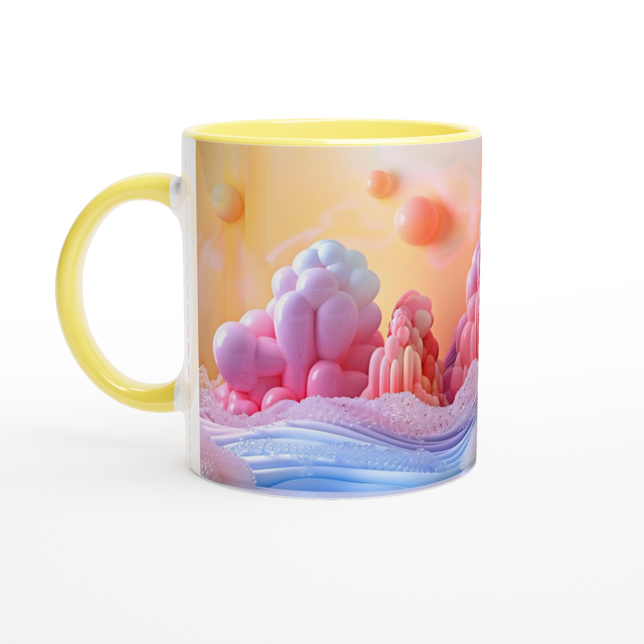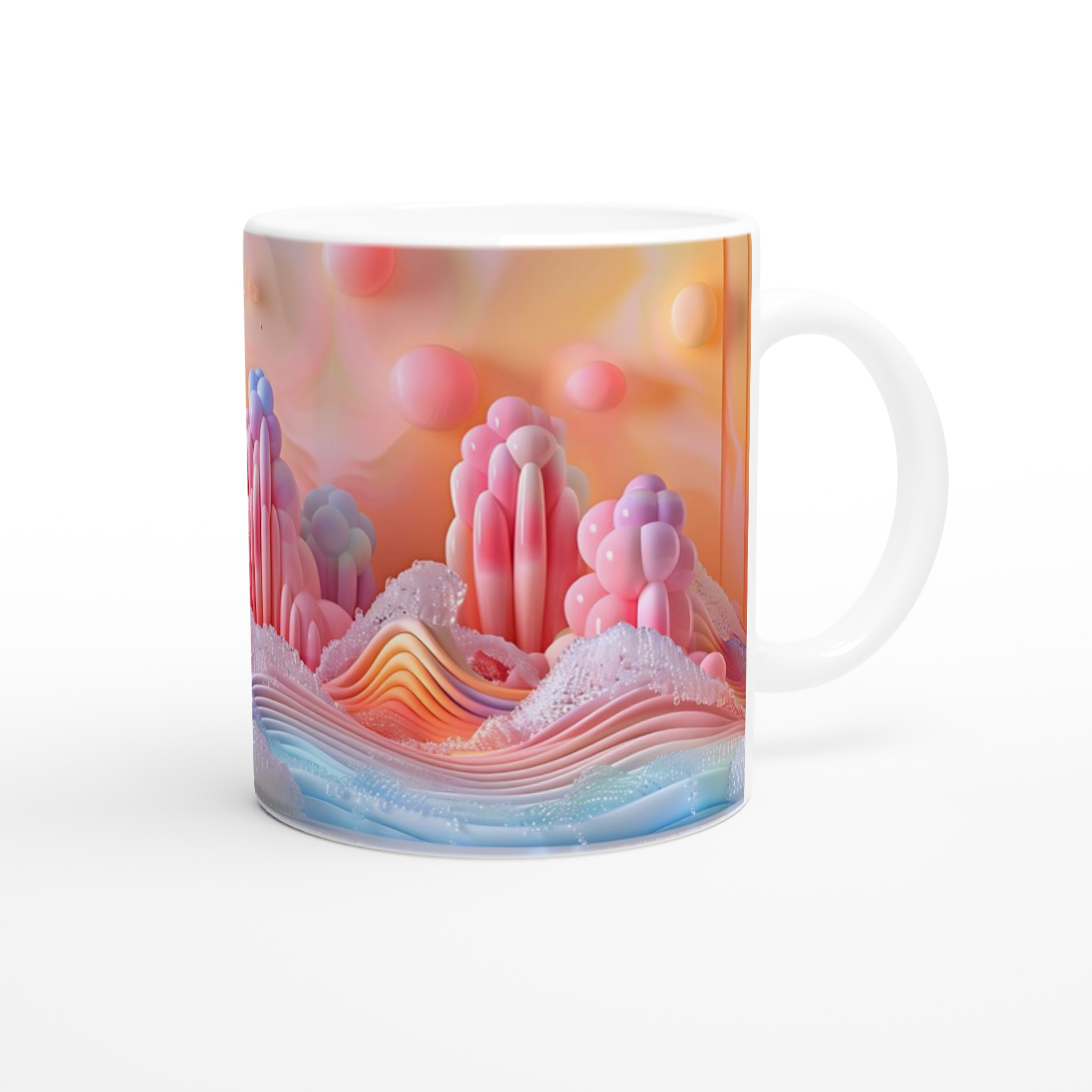 Kliv in i en värld av mjukhet och drömska nyanser med vår Pastell Keramiska Mugg. Inspirerad av bilden som för tankarna till ett lekfullt landskap av sockervadd och moln, blir denna mugg snabbt en vardagsfavorit. Perfekt för morgonkaffet, kvällens varma choklad eller när du bara vill njuta av en kopp te.