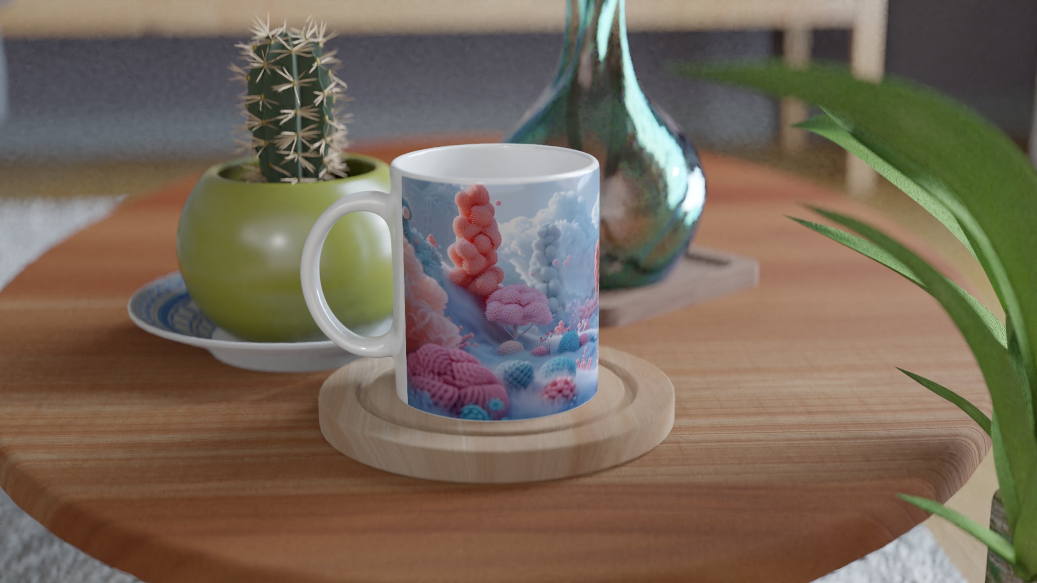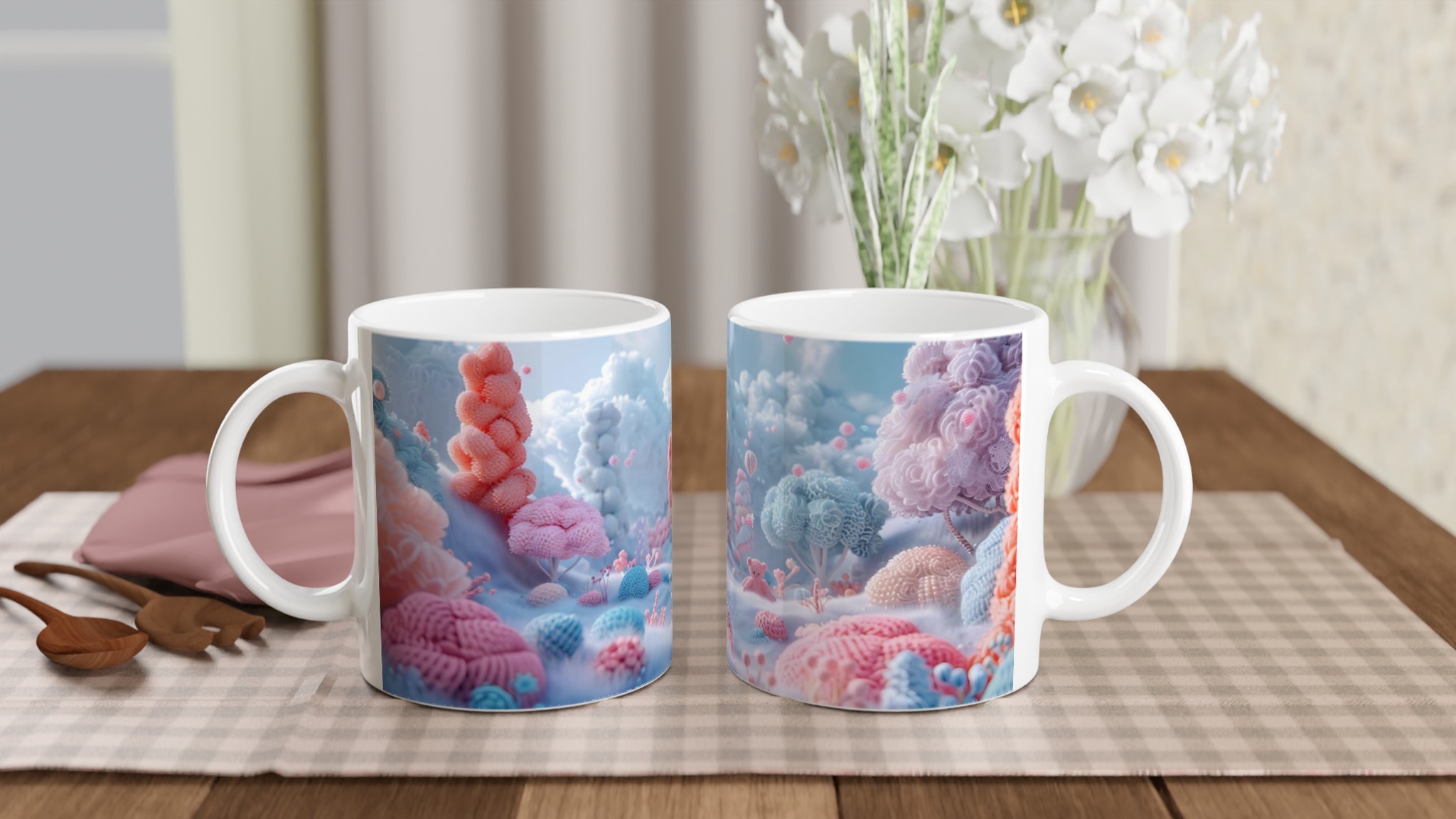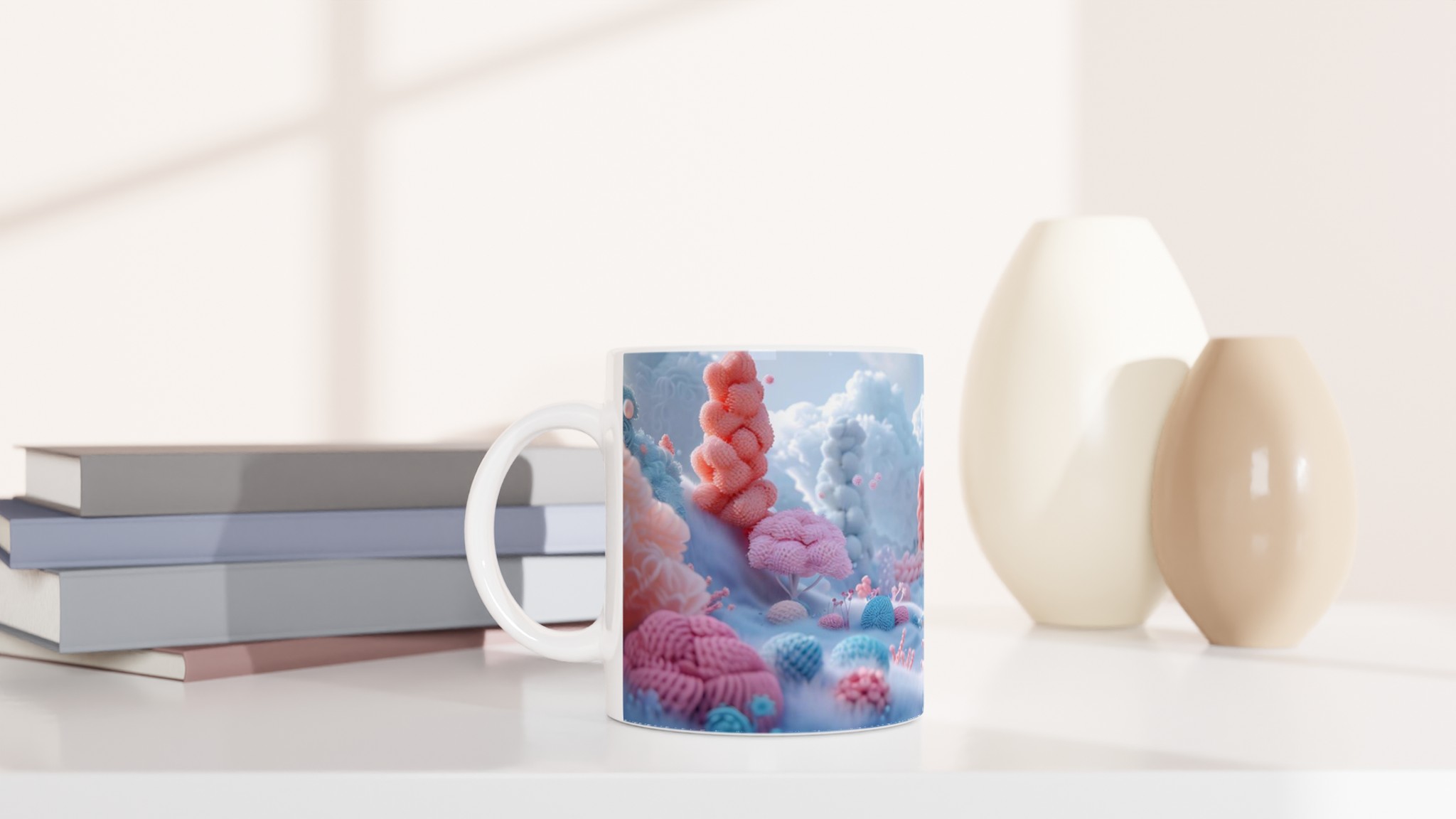 Föreställ dig en värld av mjuka pasteller och drömlik charm varje gång du tar en klunk. Denna stilrena keramiska mugg, inspirerad av fantasifulla landskap och söta drömmar, blir snabbt en vardagsfavorit. Perfekt för morgonkaffet, kvällens varma choklad eller när du bara vill njuta av en kopp te. Den blanka ytan framhäver designen med klara och levande färger, som håller sig fina även efter många turer i mikron och diskmaskinen.