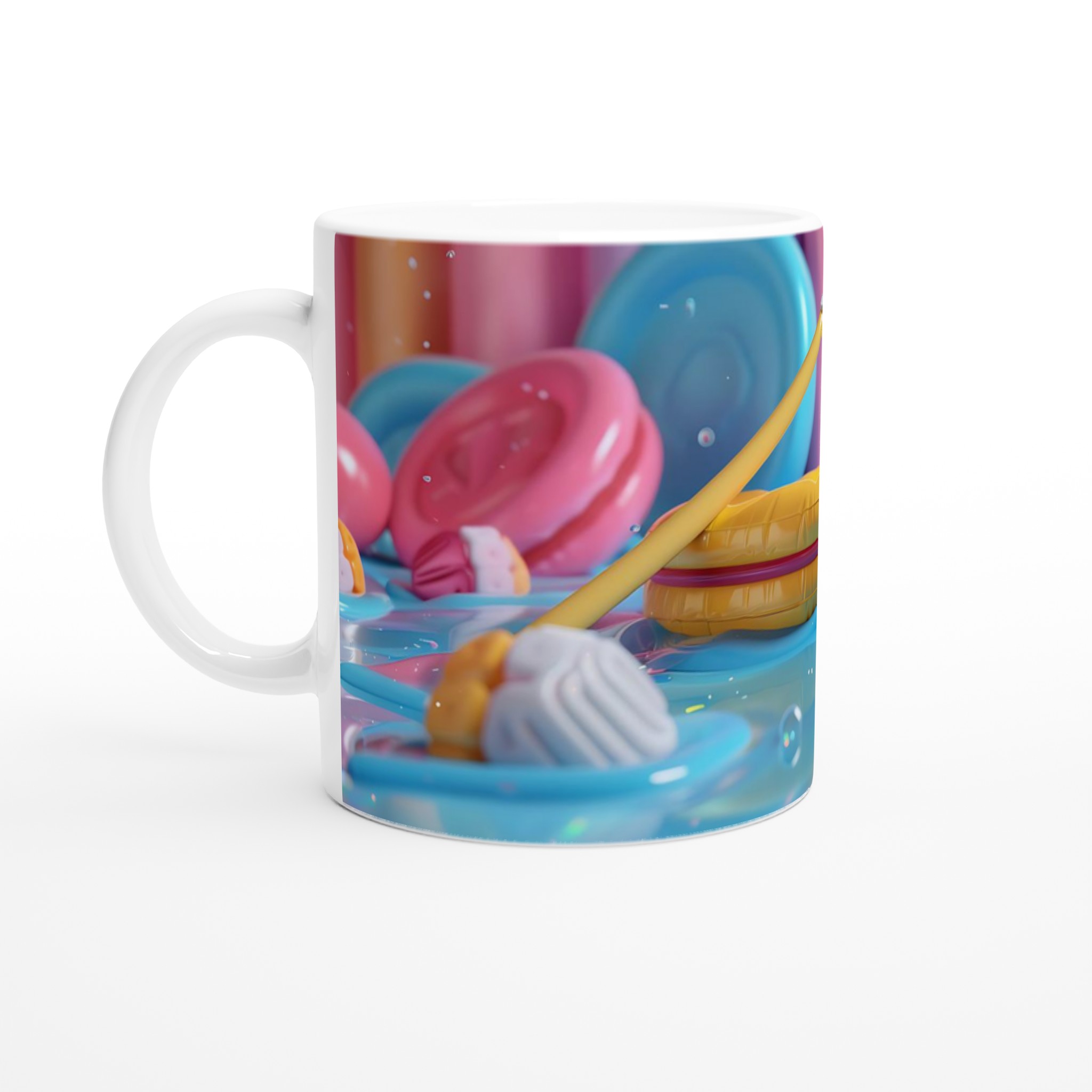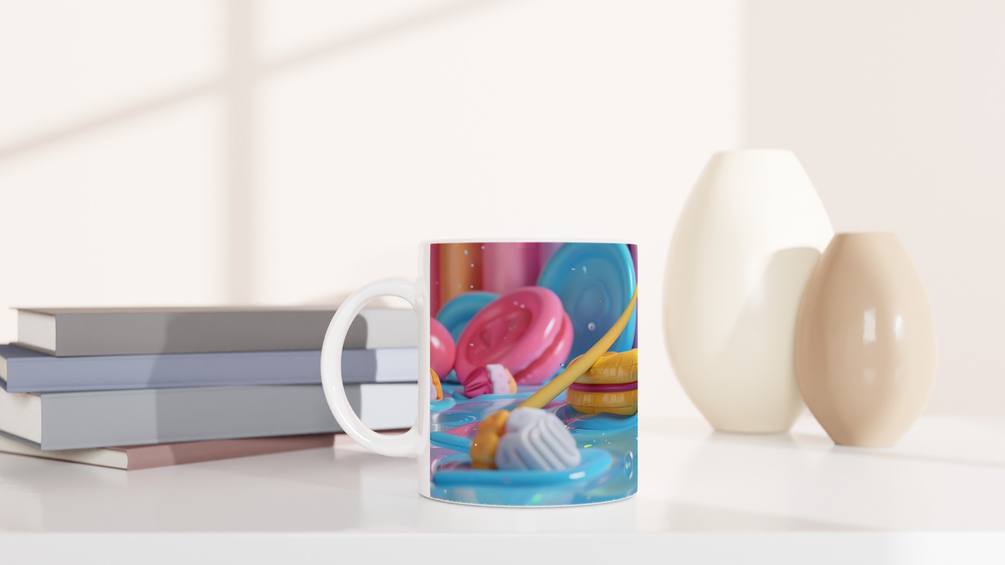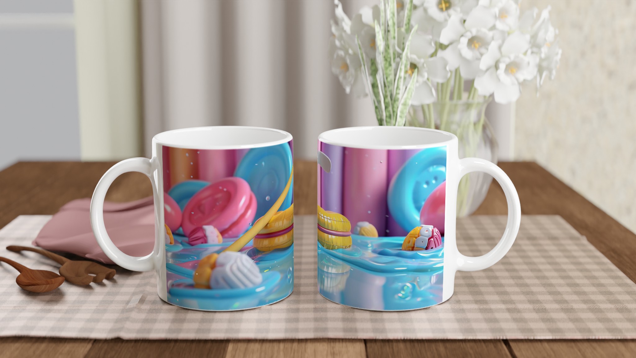 Fånga dagens glädje med vår Pastell Dröm Keramiska Mugg, en lekfull hyllning till det söta och fantastiska. Inspirerad av bilden av svävande former i glänsande pastellfärger, förvandlar denna mugg varje dryckesstund till en liten fest. Oavsett om det är morgonkaffet, en lugnande kopp te, eller en lyxig varm choklad, är denna mugg designad för att inspirera glädje och kreativitet.