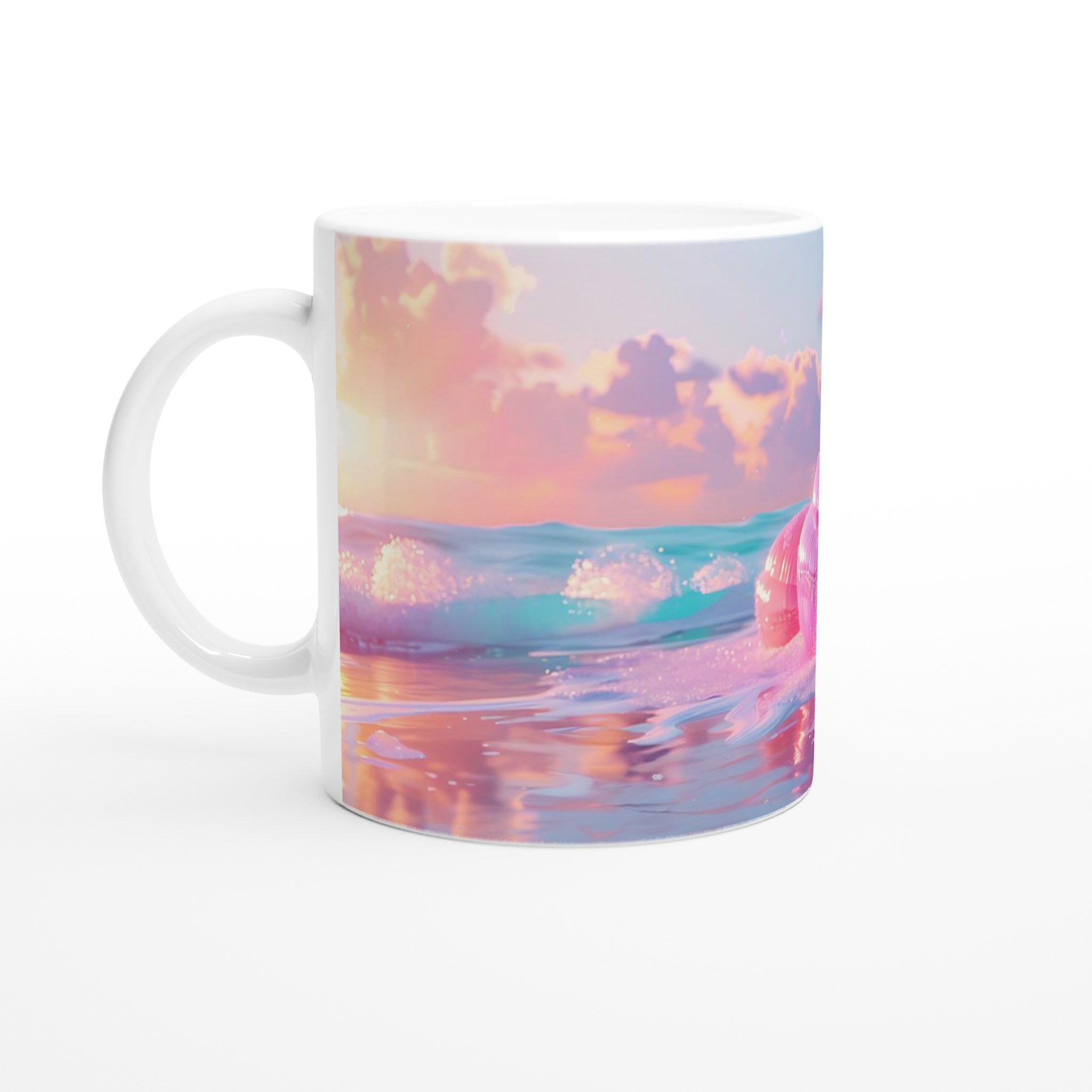 Förvandla din dagliga kafferitual till en stund av ren förtrollning med vår pastellfärgade keramikmugg, designad för att spegla en drömlik skymning. Inspirerad av den lugnande paletten från en solnedgång över havet, med mjuka rosa, varma orange och svala blå toner, ger denna mugg en lekfull och avkopplande känsla till varje dryck. Dess glansiga yta framhäver livfulla tryck, vilket gör den perfekt för att lysa upp din morgon eller som en charmig present.