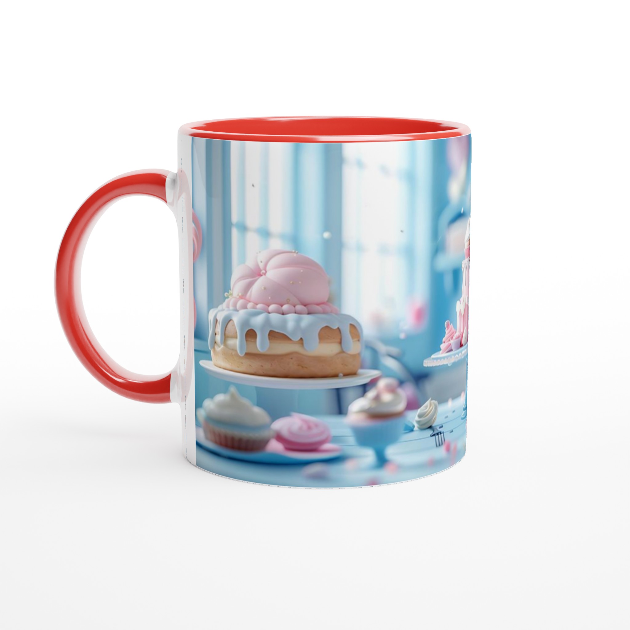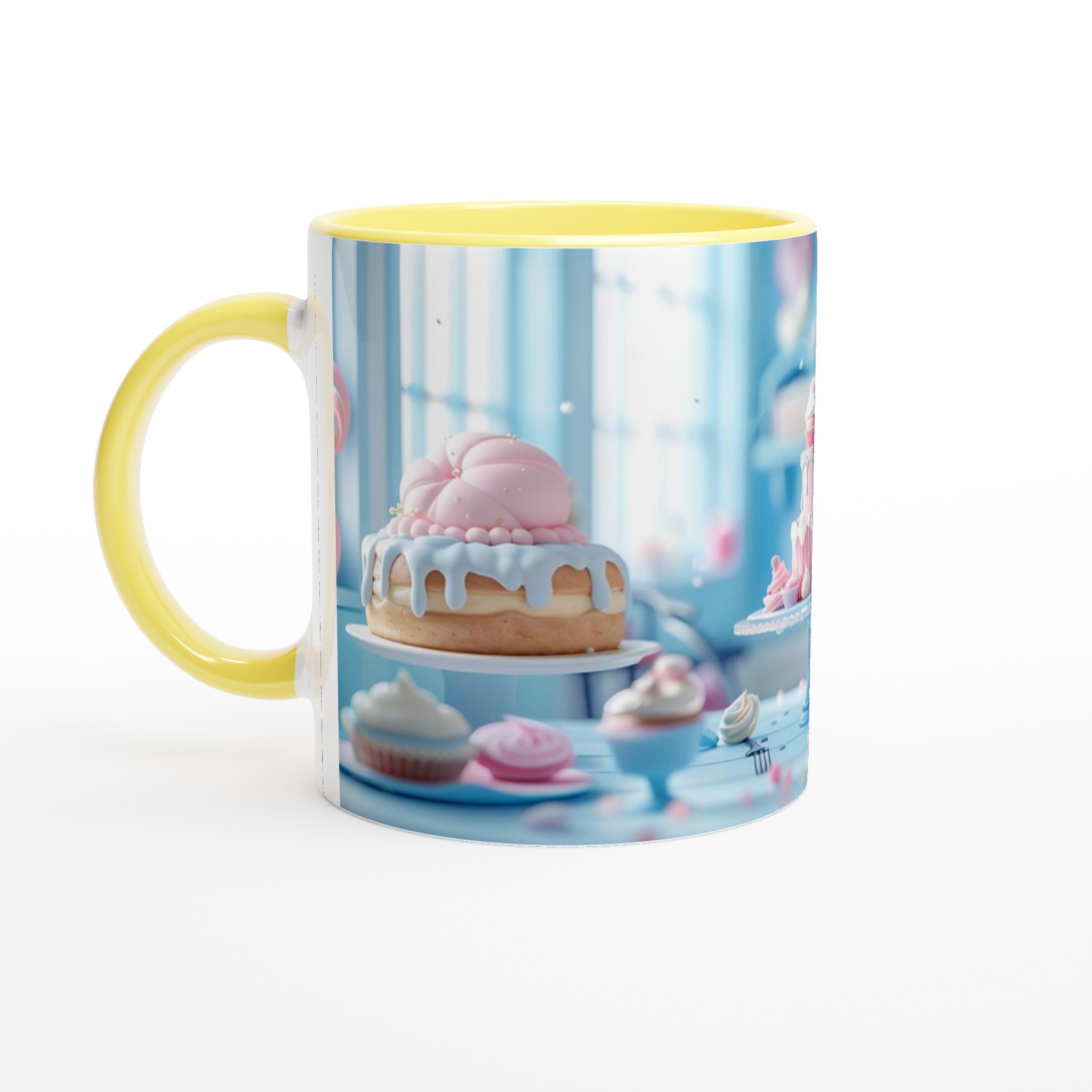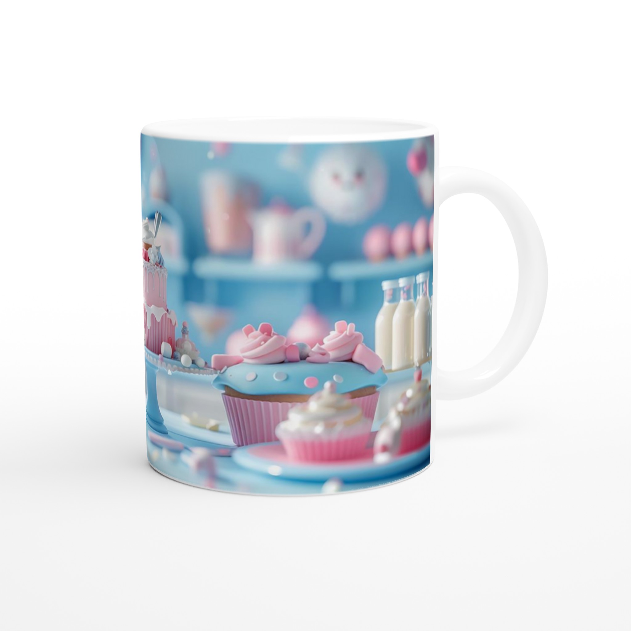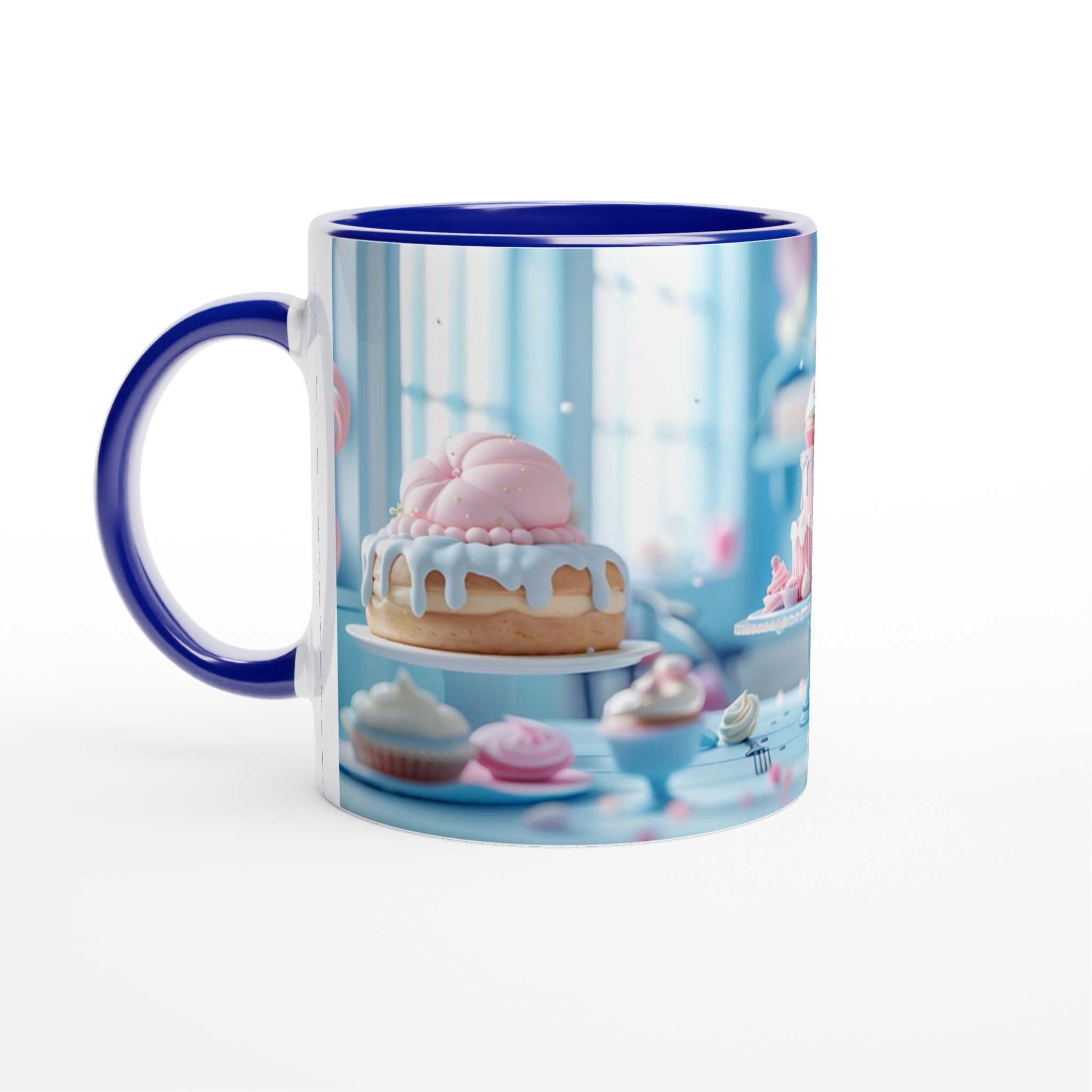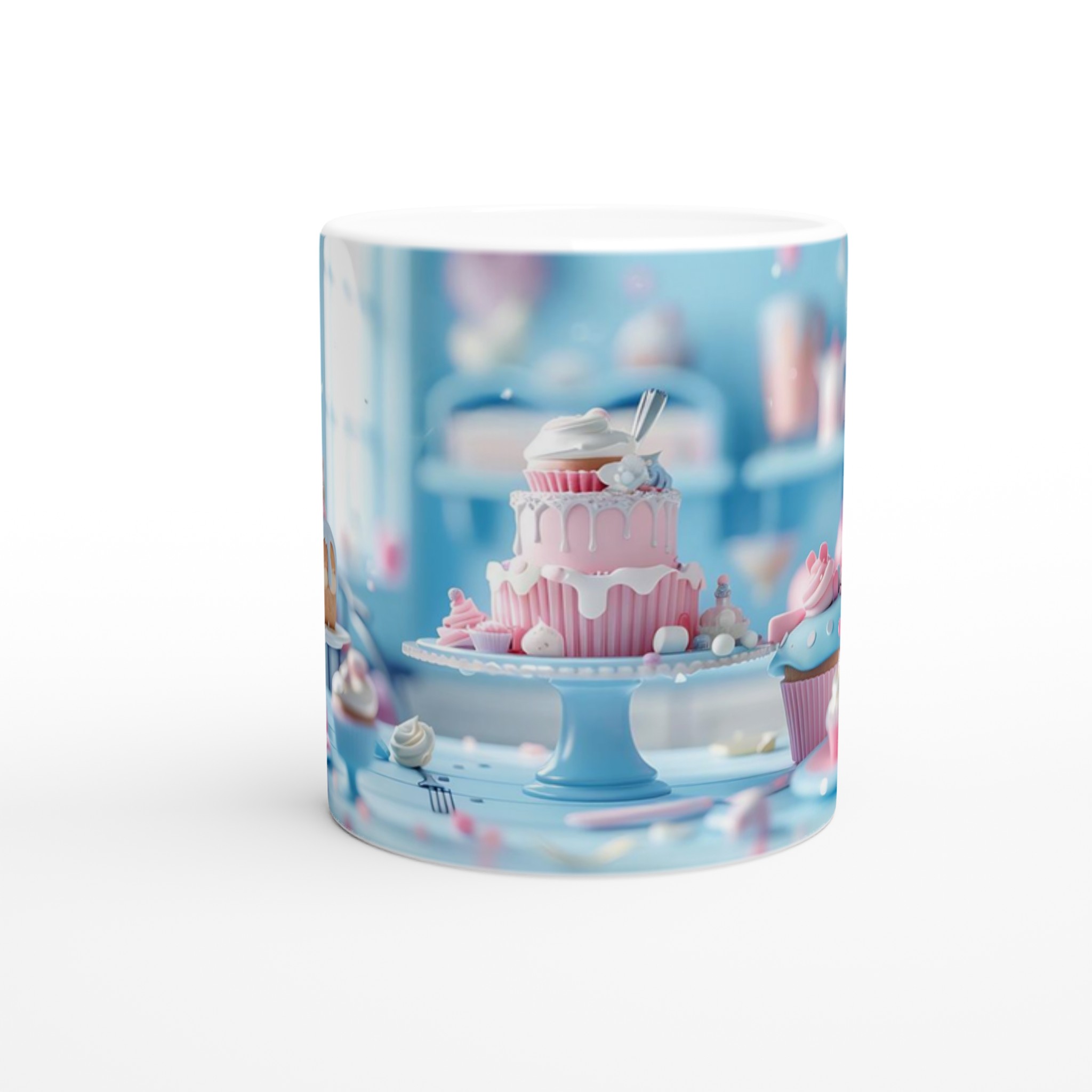 Väck din inre bakälskare med vår förtrollande pastellmugg! Den här stilrena keramiska muggen blir snabbt en vardagsfavorit. Inspirerad av ljuvliga bakverk i en drömsk palett av rosa och babyblått, tillför den en dos sötma till din fikastund. Perfekt för morgonkaffet, kvällens varma choklad eller när du bara vill njuta av en kopp te. Den blanka ytan framhäver tryck med klara och levande färger, som håller sig fina även efter många turer i mikron och diskmaskinen.