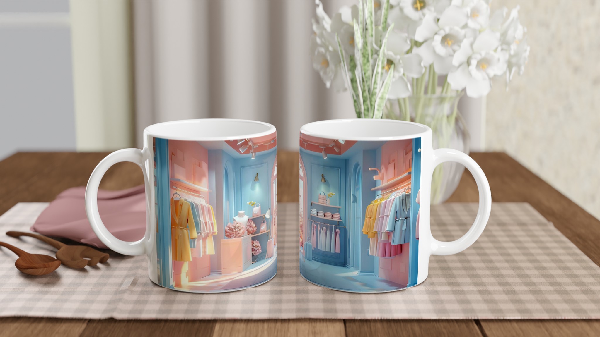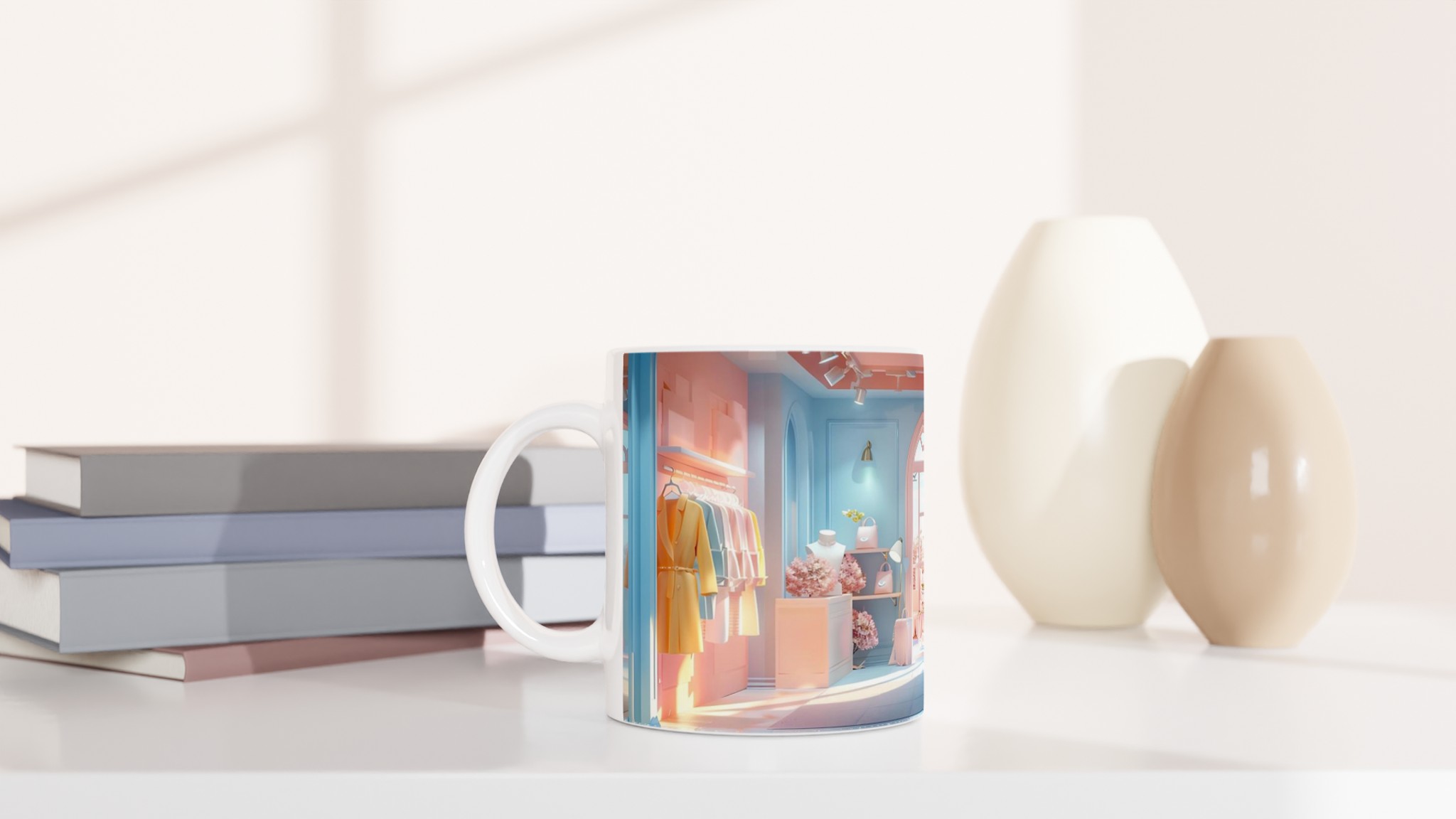 Fånga den ljuva känslan av en pastellfärgad dröm med vår Keramiska Mugg, en perfekt blandning av charm och funktionalitet. Inspirerad av de mjuka, inbjudande tonerna i en mysig butik, blir denna mugg snabbt din nya vardagsfavorit. Oavsett om du startar morgonen med en rykande kopp kaffe, njuter av en avkopplande kvällschoklad eller bara vill ha ditt favoritte nära till hands, är den här muggen designad för att förhöja din stund. Den blanka ytan framhäver varje tryck med klara och levande färger, som behåller sin lyster även efter otaliga turer i mikron och diskmaskinen.