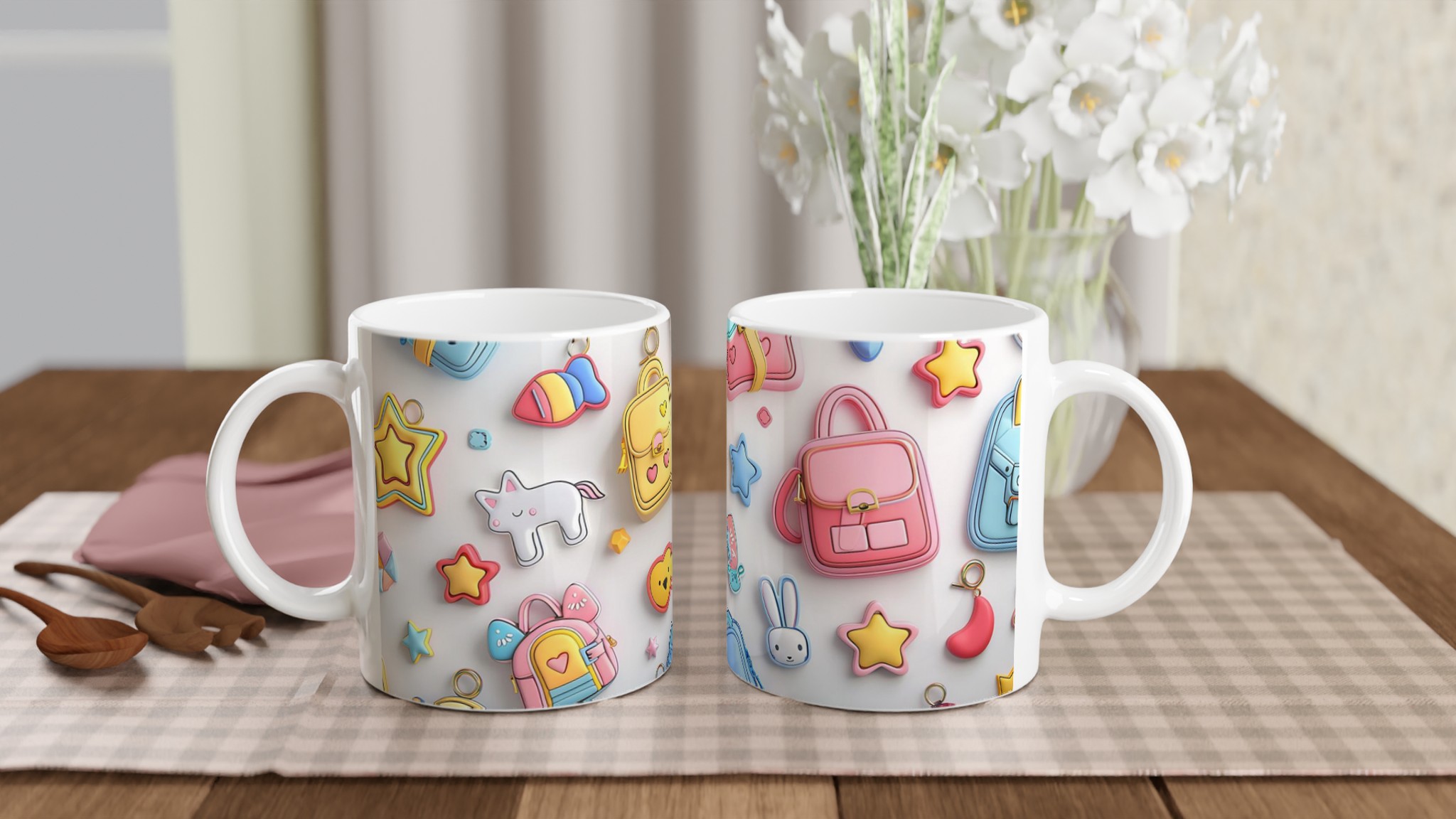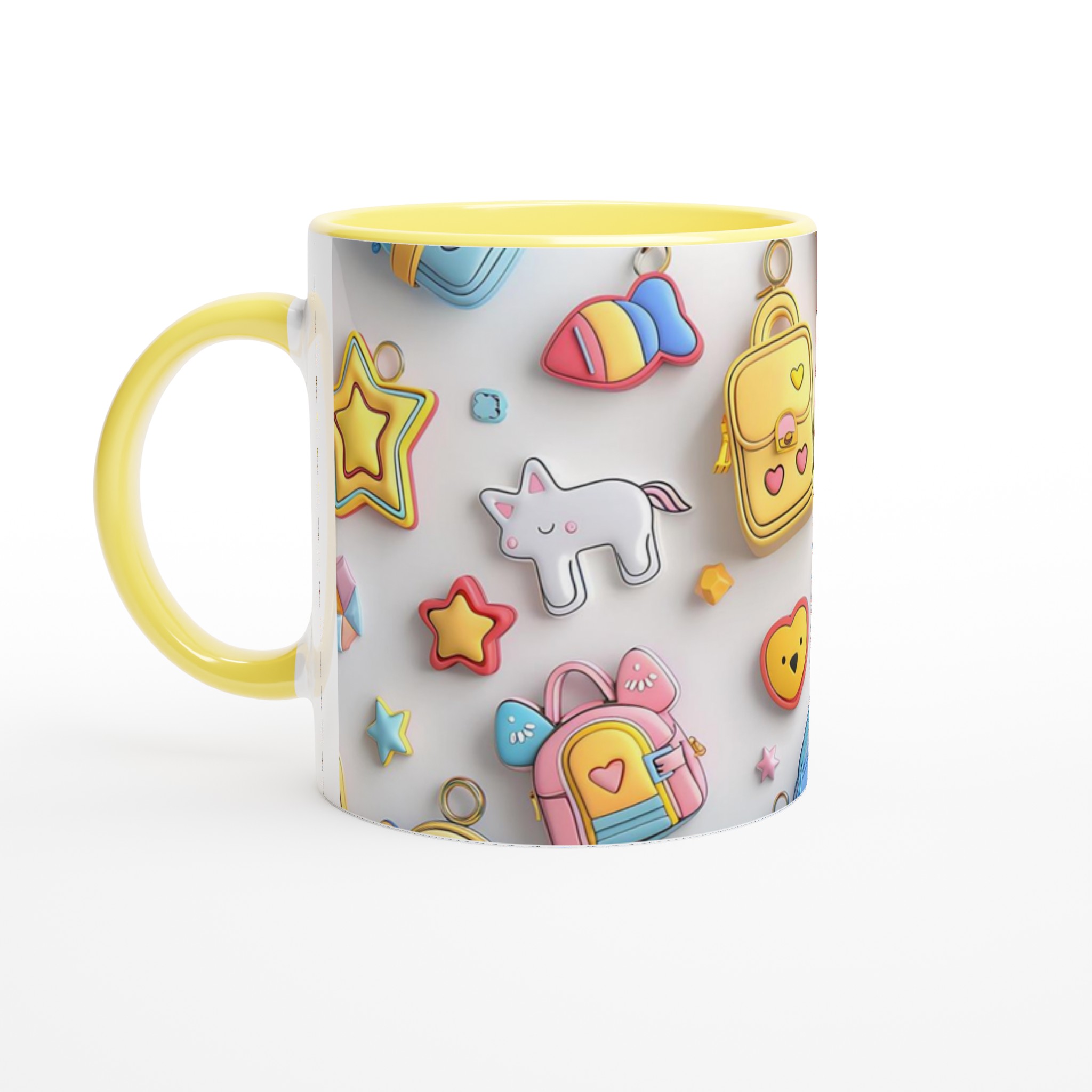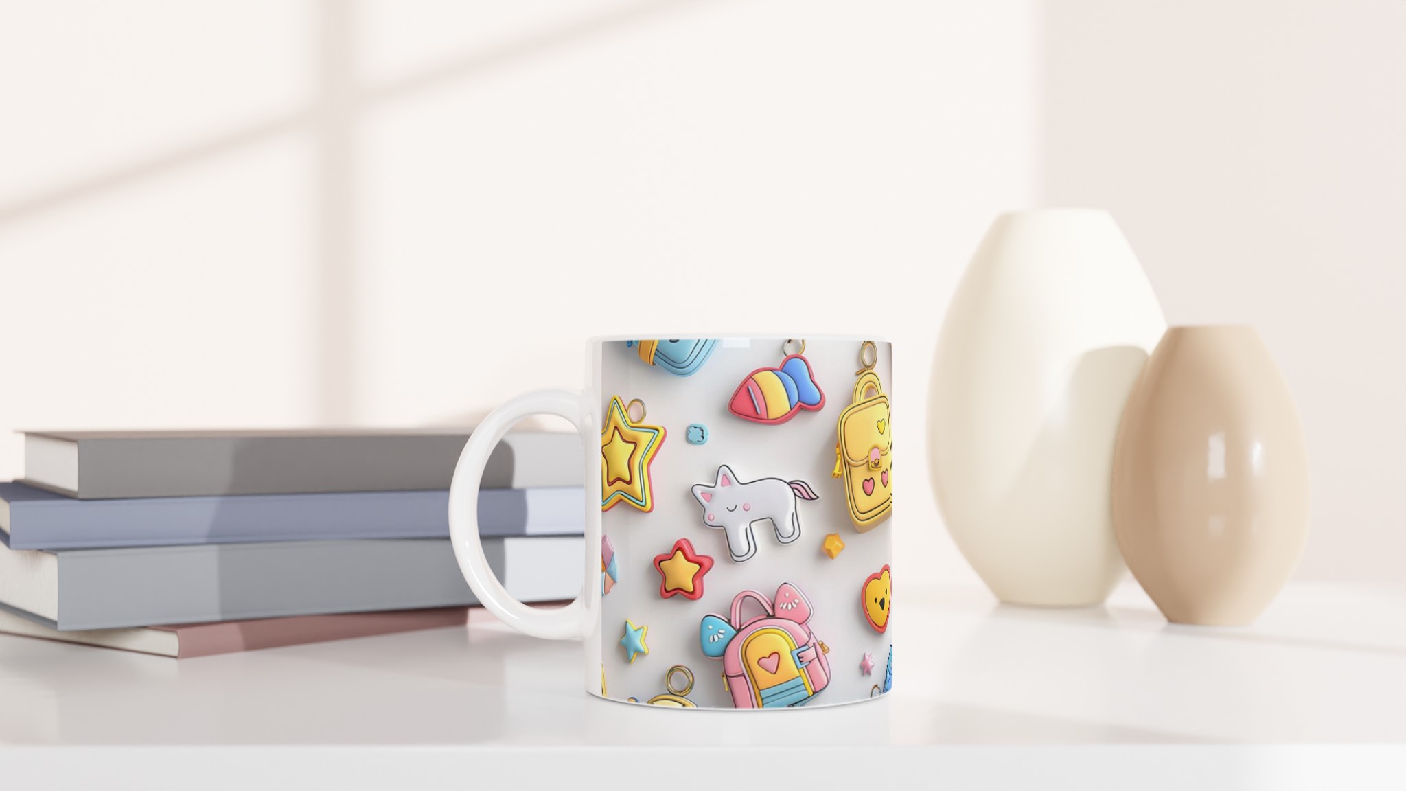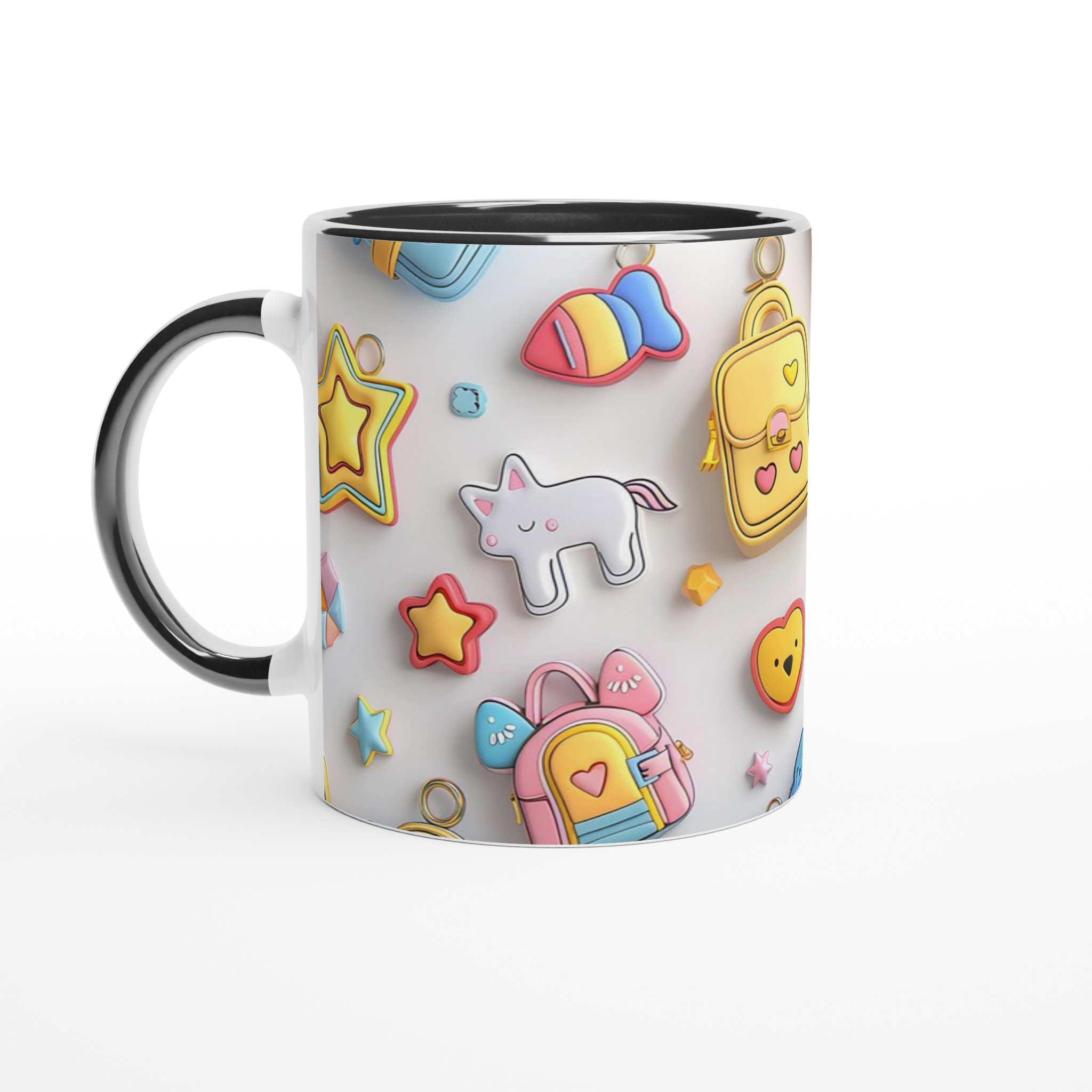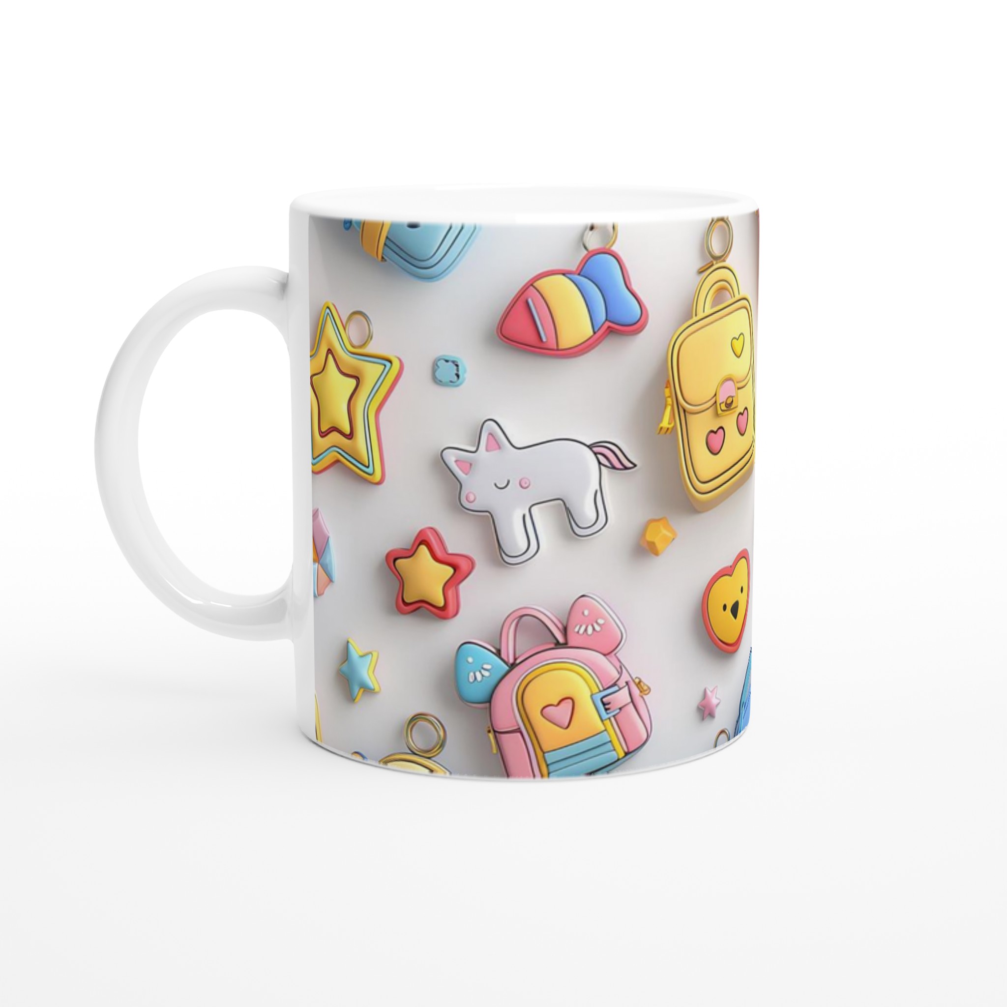 Väck din inre glädje med vår Pastell-Dröm Keramiska Mugg! Inspirerad av de bedårande, lekfulla formerna och de mjuka pastellfärgerna i bilden, blir denna mugg snabbt en vardagsfavorit som sprider leenden. Perfekt för morgonkaffet, kvällens varma choklad eller när du bara vill njuta av en kopp te. Den blanka ytan framhäver trycken med klara och levande färger, som håller sig fina även efter många turer i mikron och diskmaskinen.